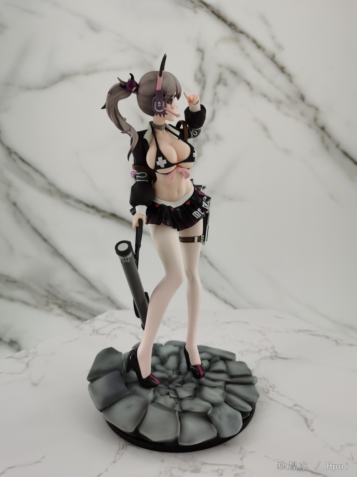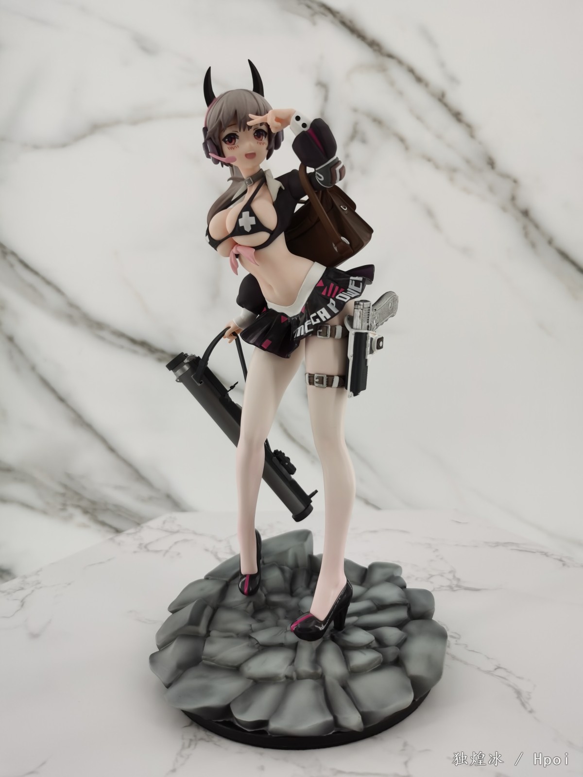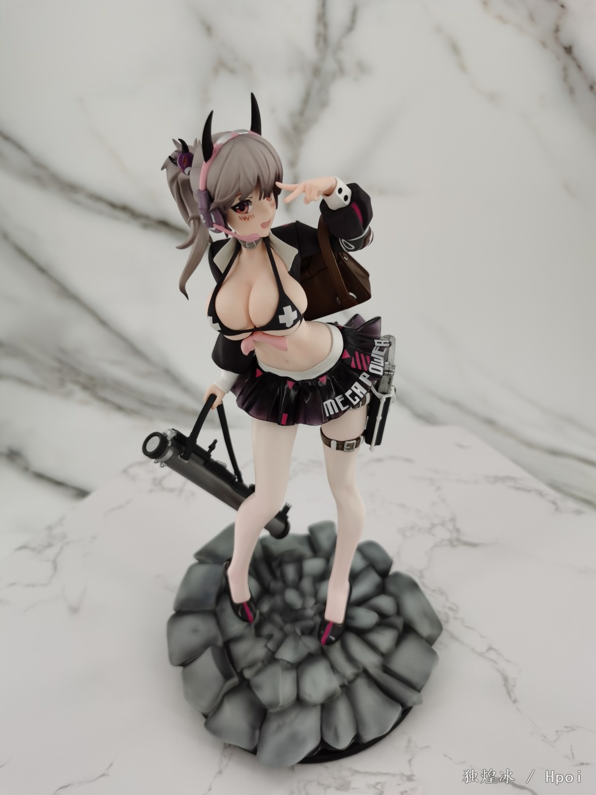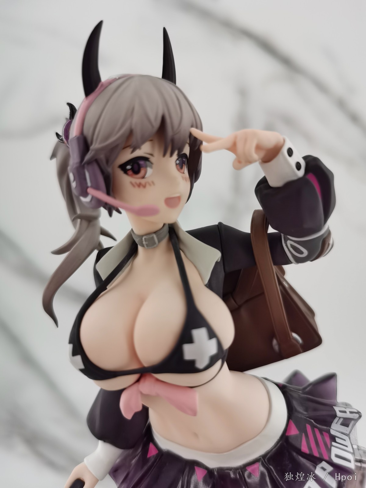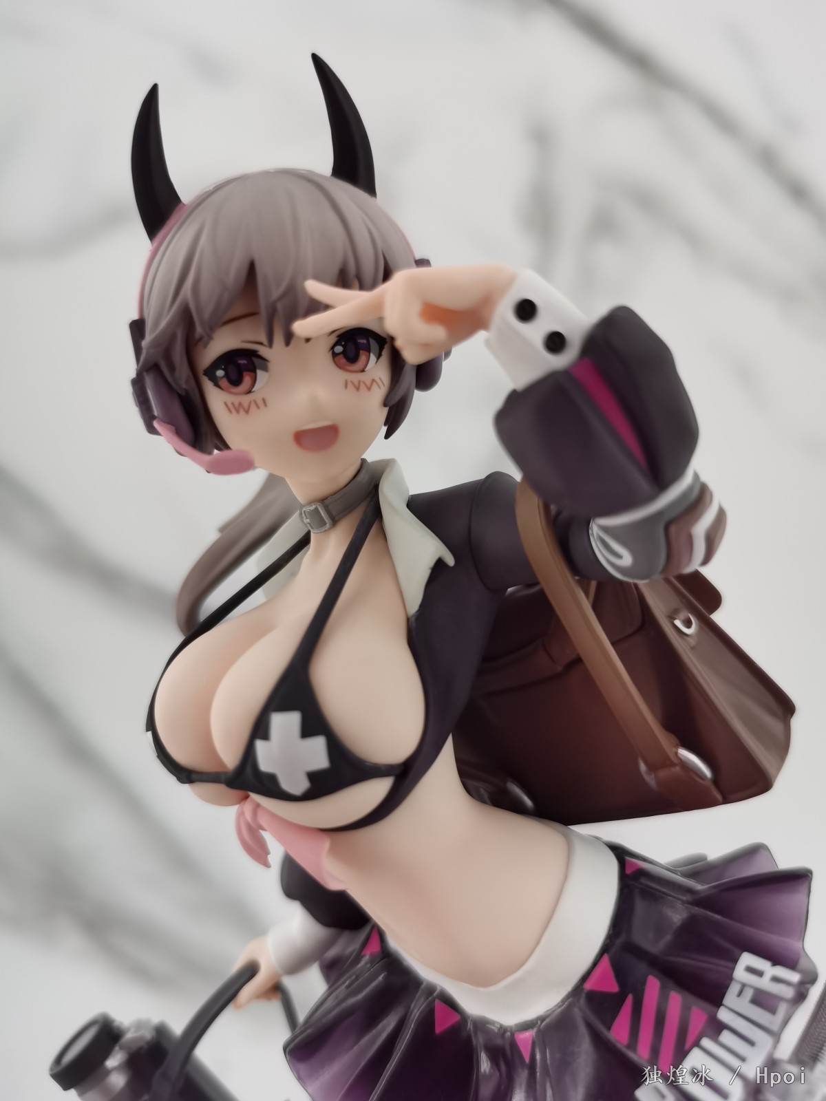 简评:色彩与造型设计一如既往地上乘。精致度也是一如既往地有所欠缺。这个系列的还原度无法评价,所以只能从手办本身来判定,角色的脸部塑造表情丰富B 真。在拍摄过程中安装拆卸也非常顺利,没有蹭色的问题。黑色短裙的软胶质感很棒,加上白丝爆ru的设定,头上调皮的恶魔角都是加分项。从性价比上来说即便入齐一整套也是可以的,笔者比较推荐这款不错的景品。