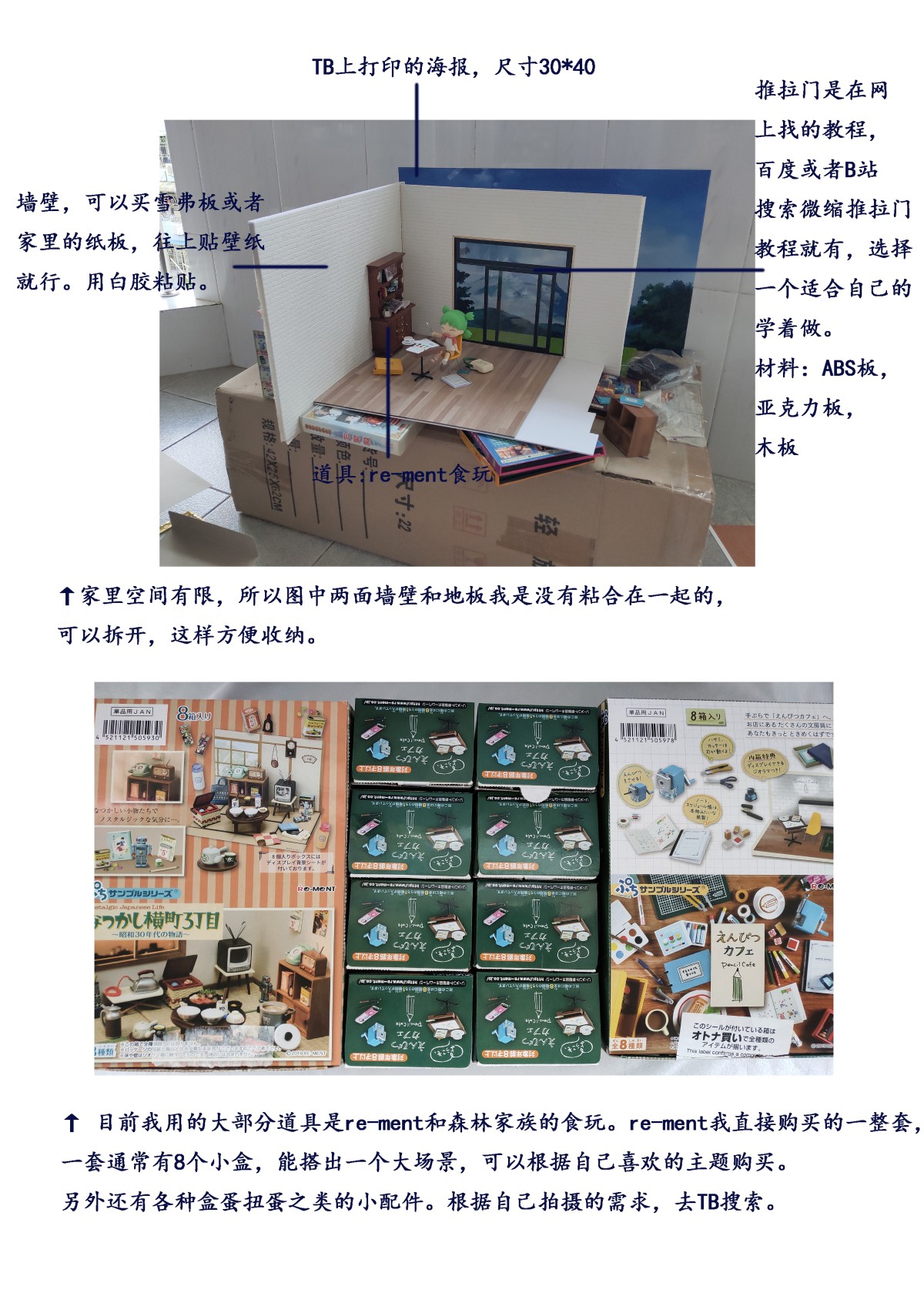 因为网上卖的娃屋太贵了,所以房子是自己买材料搭建的。相对来说便宜很多,做起来不难,就是费时间。如果经济允许的话,可以直接买娃屋,省去这一步。(话说现在国产的有很多佩奇玩具房,过家家玩具房这种,价格便宜,也挺适合当娃屋的。)