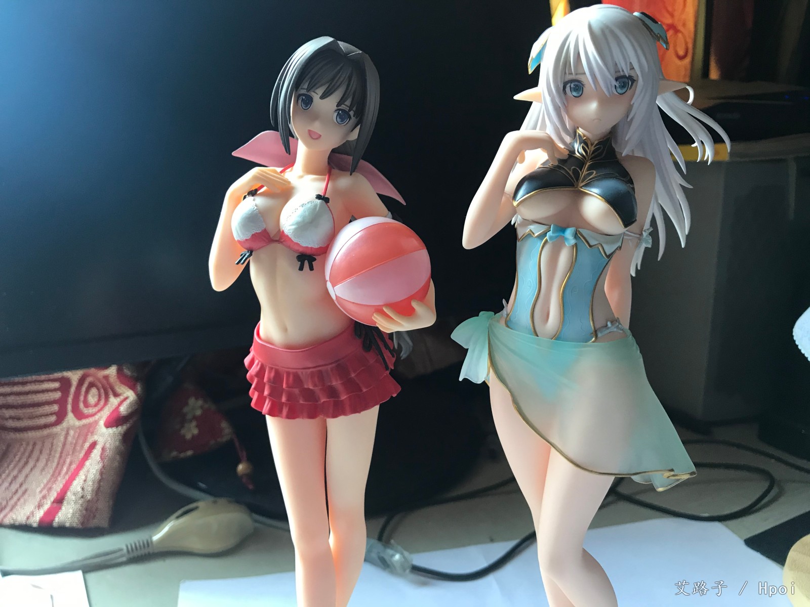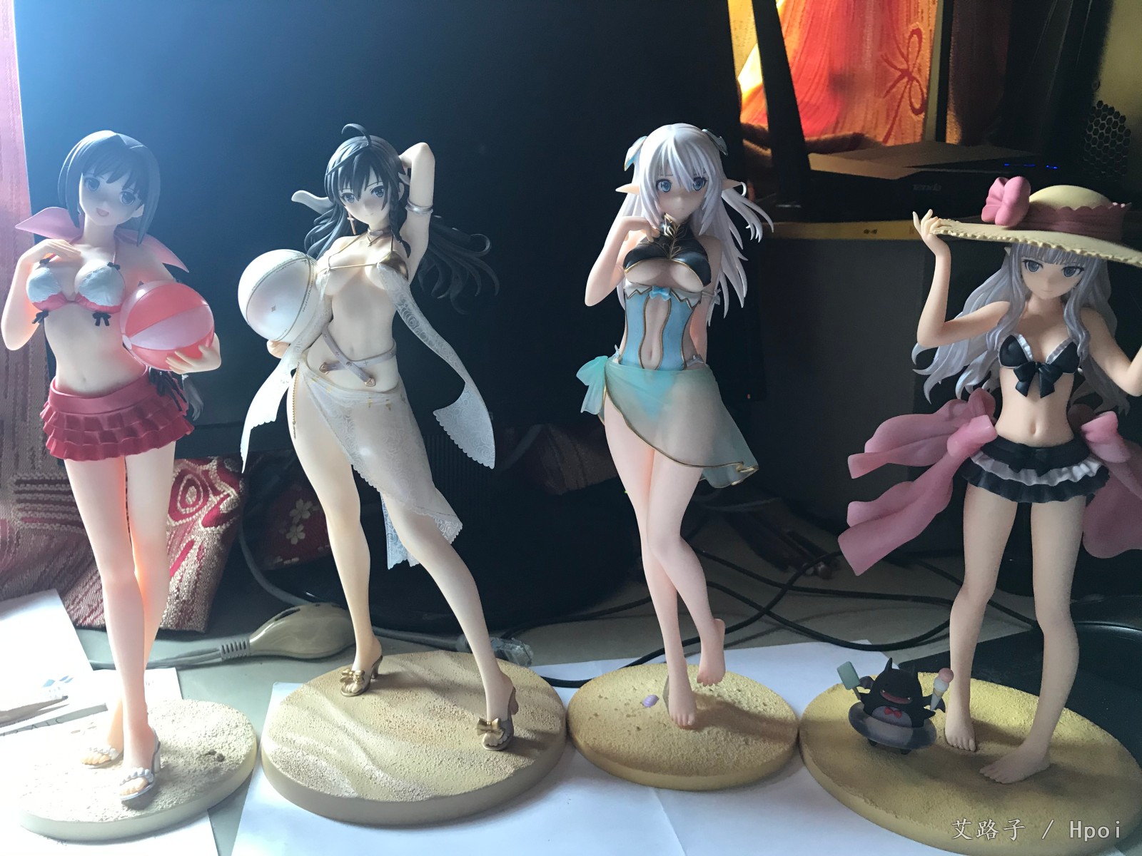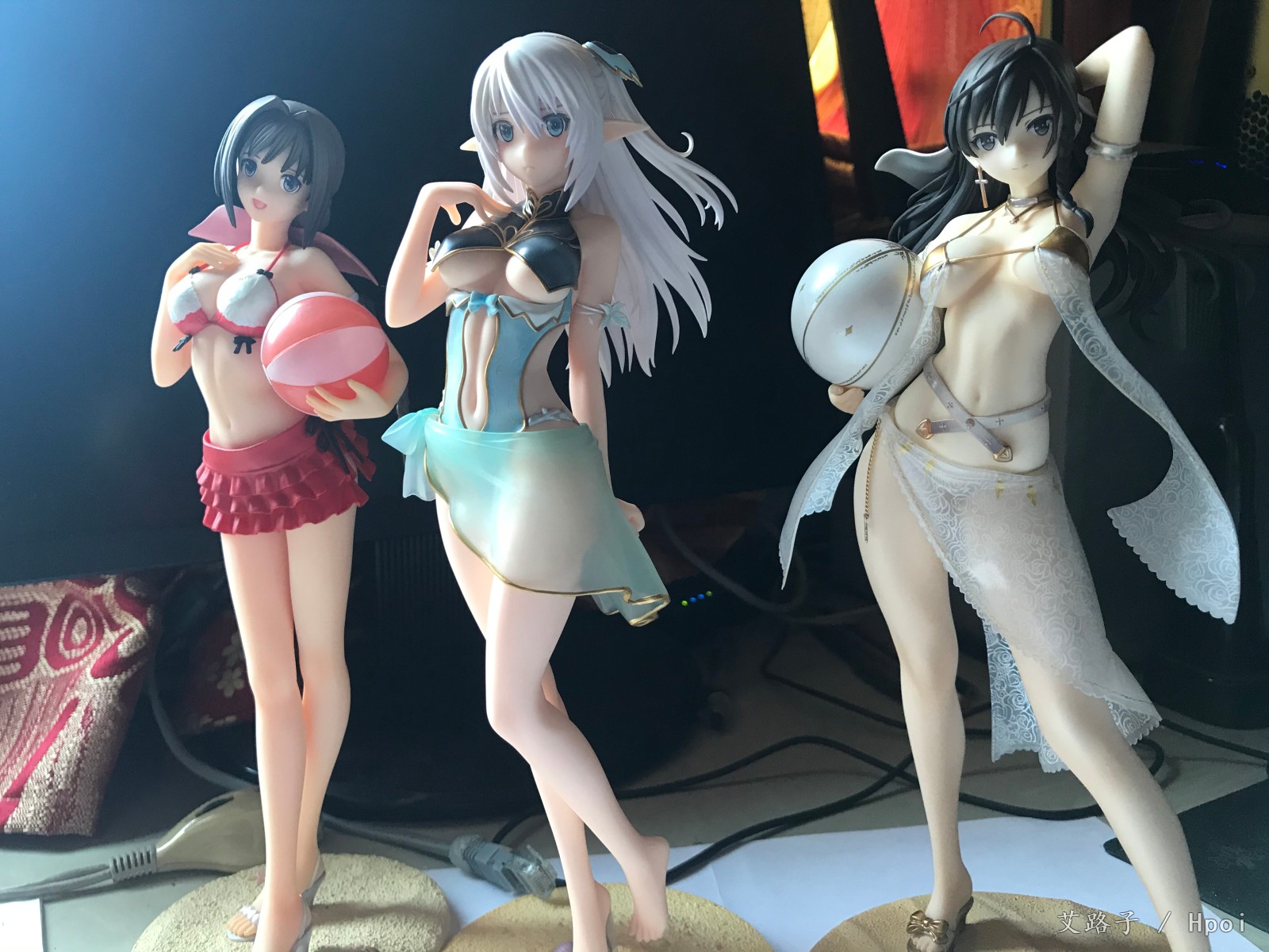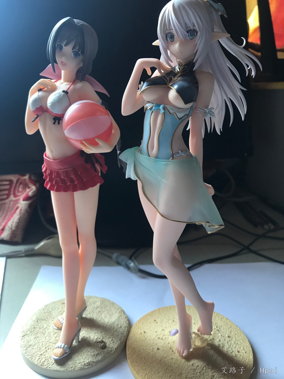 看日本那边的评测觉得肤色偏白了,但其实放阳光下更官图差不多,还有脸比最初的官图也少了些血色,这次的涂色还是广濑裕之,想不到大师这次也翻车了。最后和其他几个厂的泳装对比一下,还是flare的最好,其次是mf的,不过年代久远,有些发黄了。寿屋的比较差,摸起来比较粗糙。