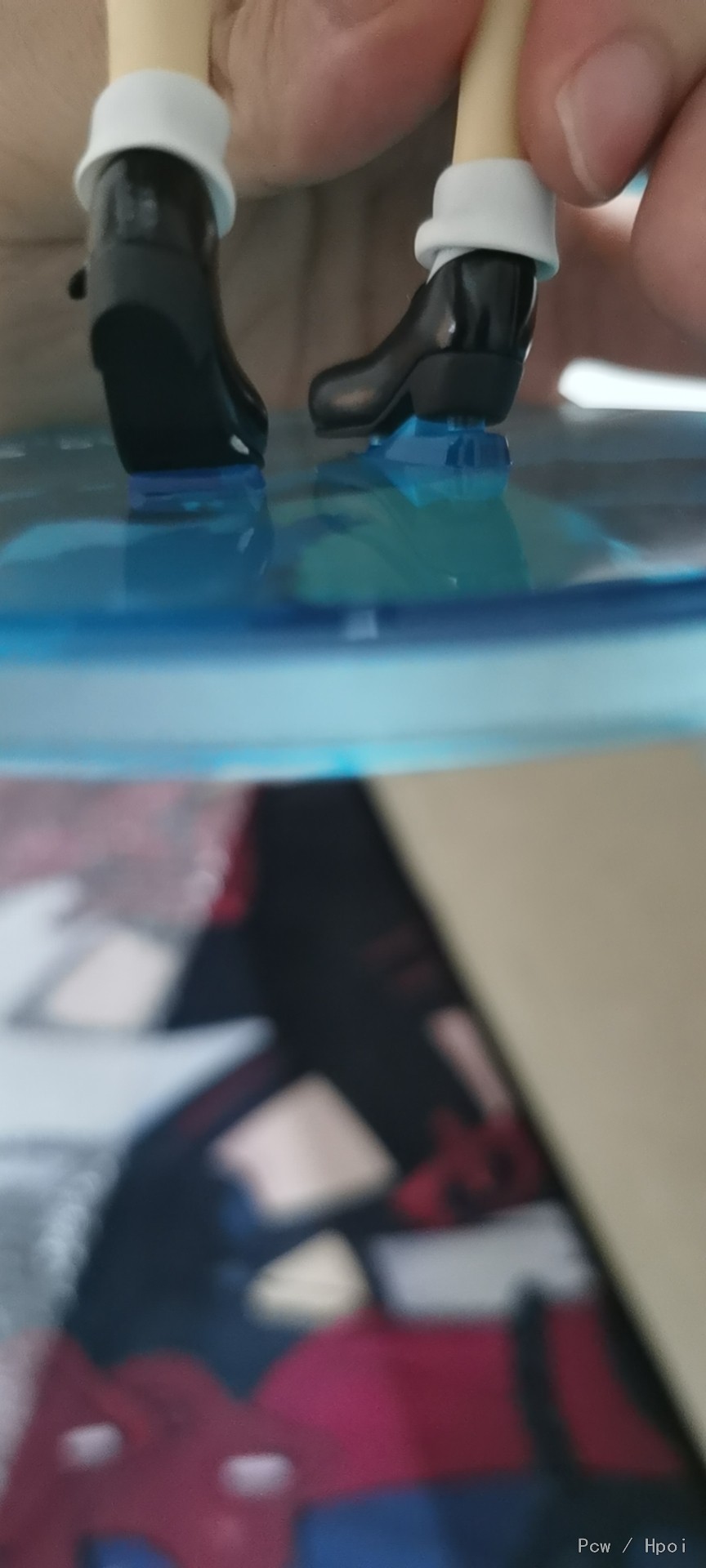 收到二手无暇,到手发现脚底踮起脚的地方居然掉漆了,从背面还能看得到,本体多处黑色东西脏脏的,于是拿克林擦擦弄干净,买了支郡士的水性马克笔涂了下。