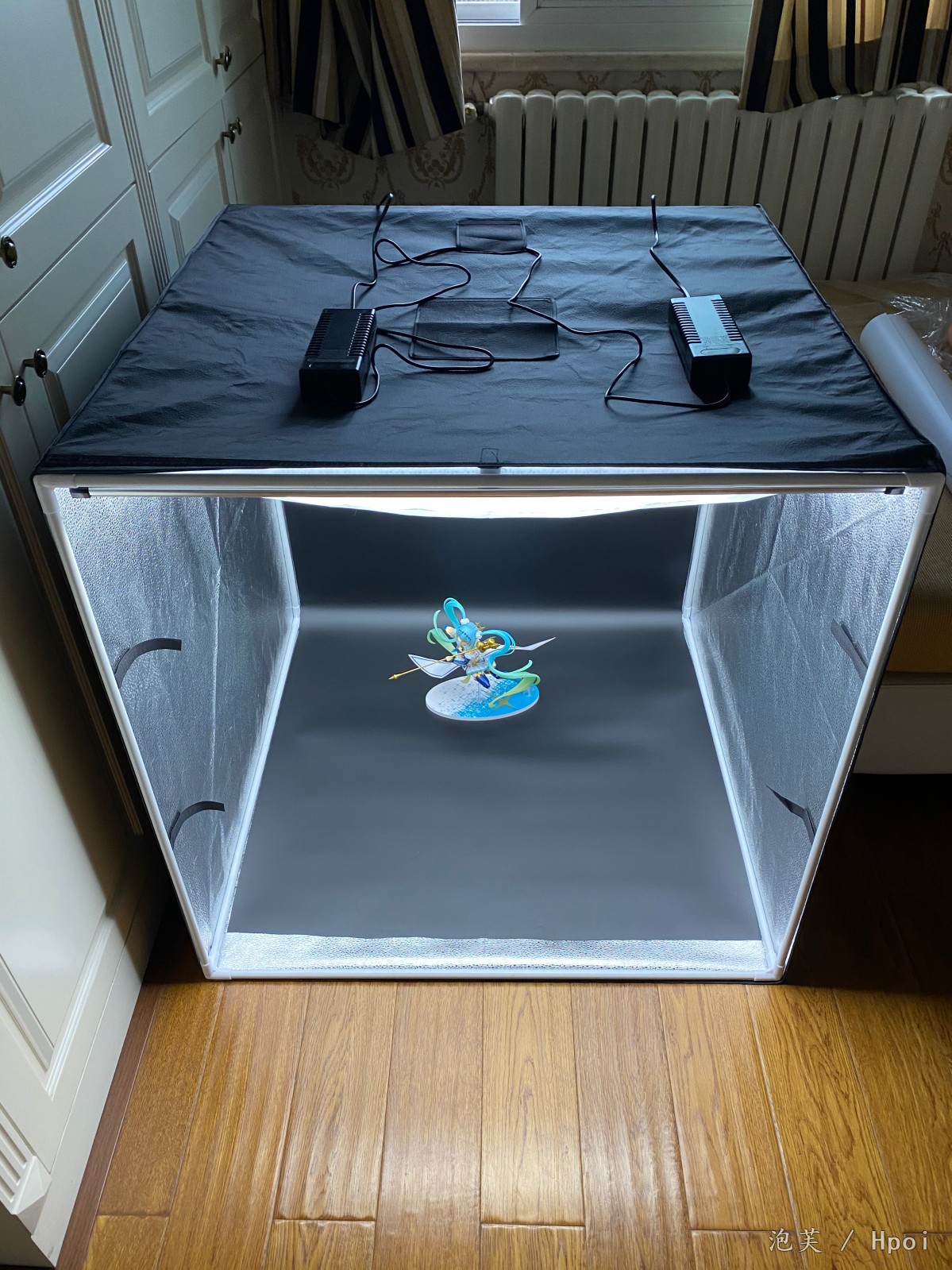 今年年中开始入手办坑的,买了想着就在那干放着也怪可惜,所以就想好好拍一下。 某b买的便携式摄影棚,安装部分有些费劲,主要是在骨架拼接的时候有些卡壳,导致套罩子的时候怎么也套不进去艹。四盏灯,80cmx80cm的骨架(想着除了手办还能拍些其他的),等是冷暖可替换,亮度可自调,还有三种颜色的pvc板。 最后随手拍了几张racing miku,设备是iPhone11pro max,后期软件是lr,新手上路还请多关照,今后加紧学习