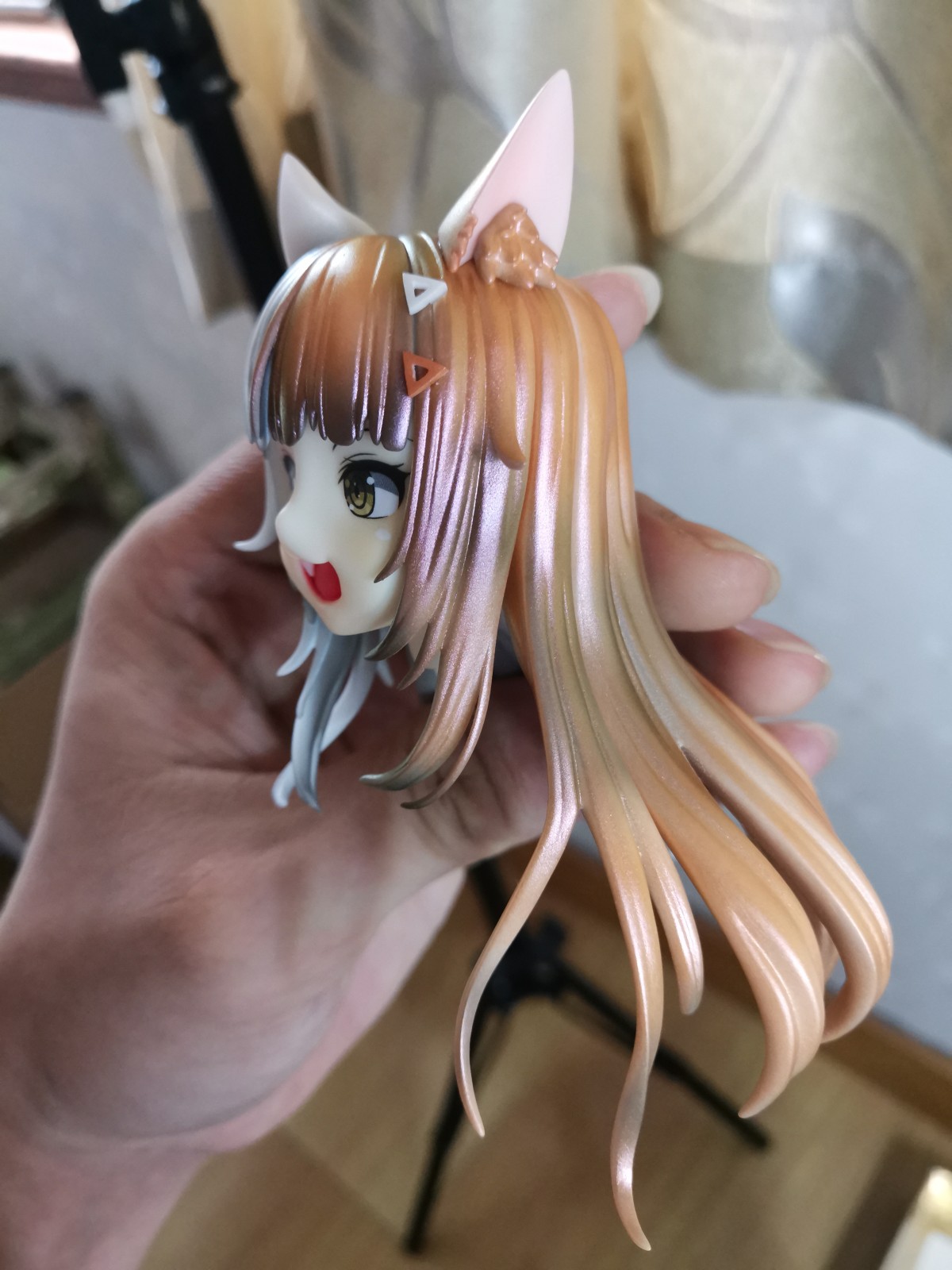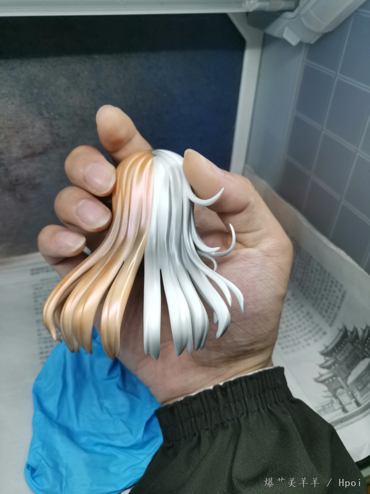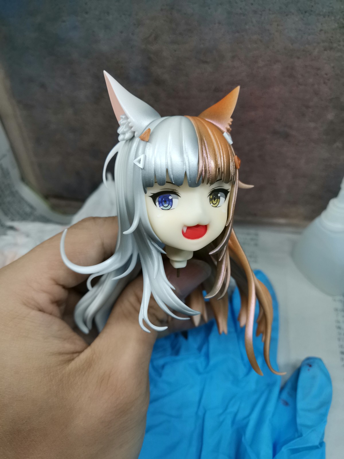 先把脑袋组装起来,眼睛用的水贴,封完消光才发现右眼眉毛下方有两个小气泡印子。。。可惜了,本来其实感觉做的挺完美的。。。