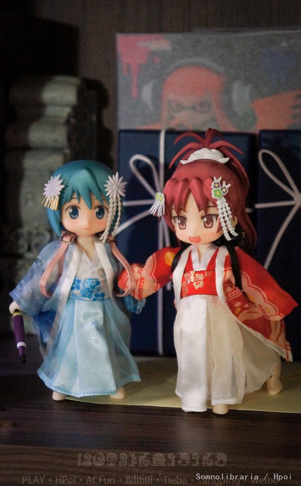 自组bjd人马体汉服美树沙耶加和佐仓杏子,对,你没看错,我把红蓝改成了马(汉服真的挺合适人马的hhh;然后这里杏子的背包是LV的(雾