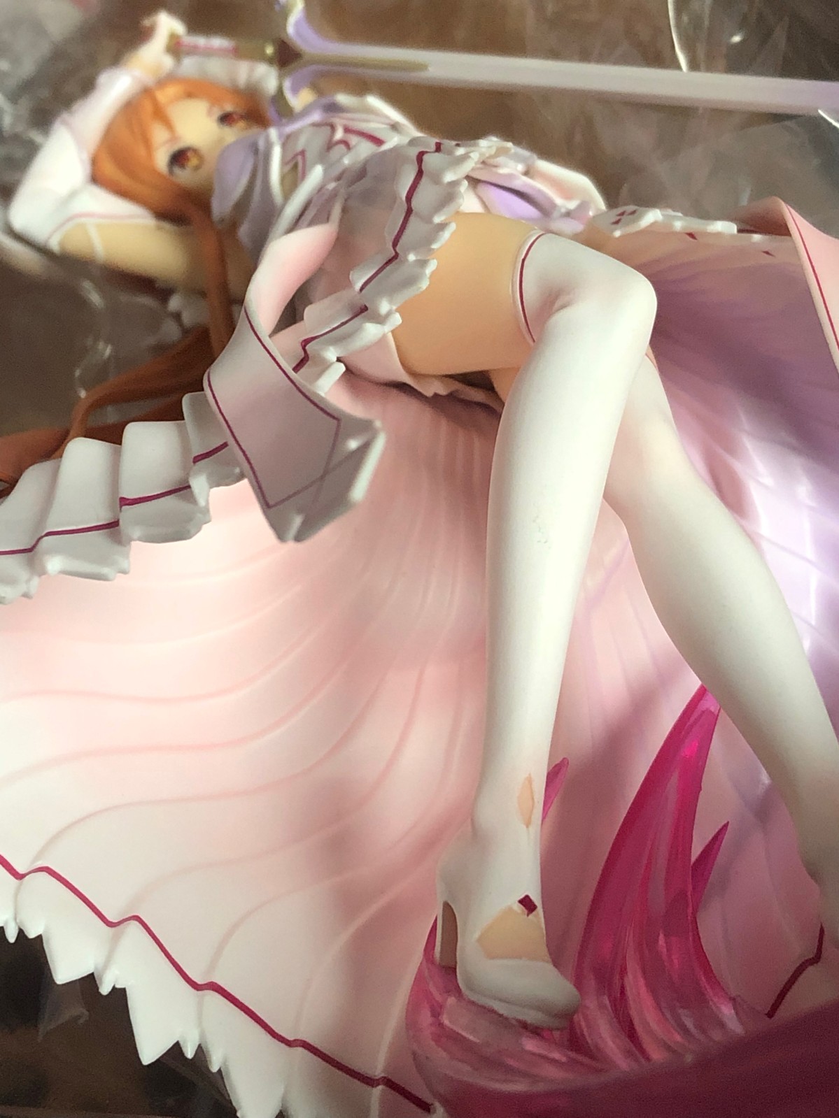 1、阴影涂装,有,今天上海阴天,我也没用任何器材,iphone8p渣拍,肉眼可见衣服上的粉色阴影涂装,头发也有渐变涂装,甚至裙子里侧也是有粉色阴影涂装。脸上有红晕,尤其背面的发带涂的非常好,手部,衣服各个部分有其他颜色分色,确实是有好几层涂装的。说景品压价的请退散。