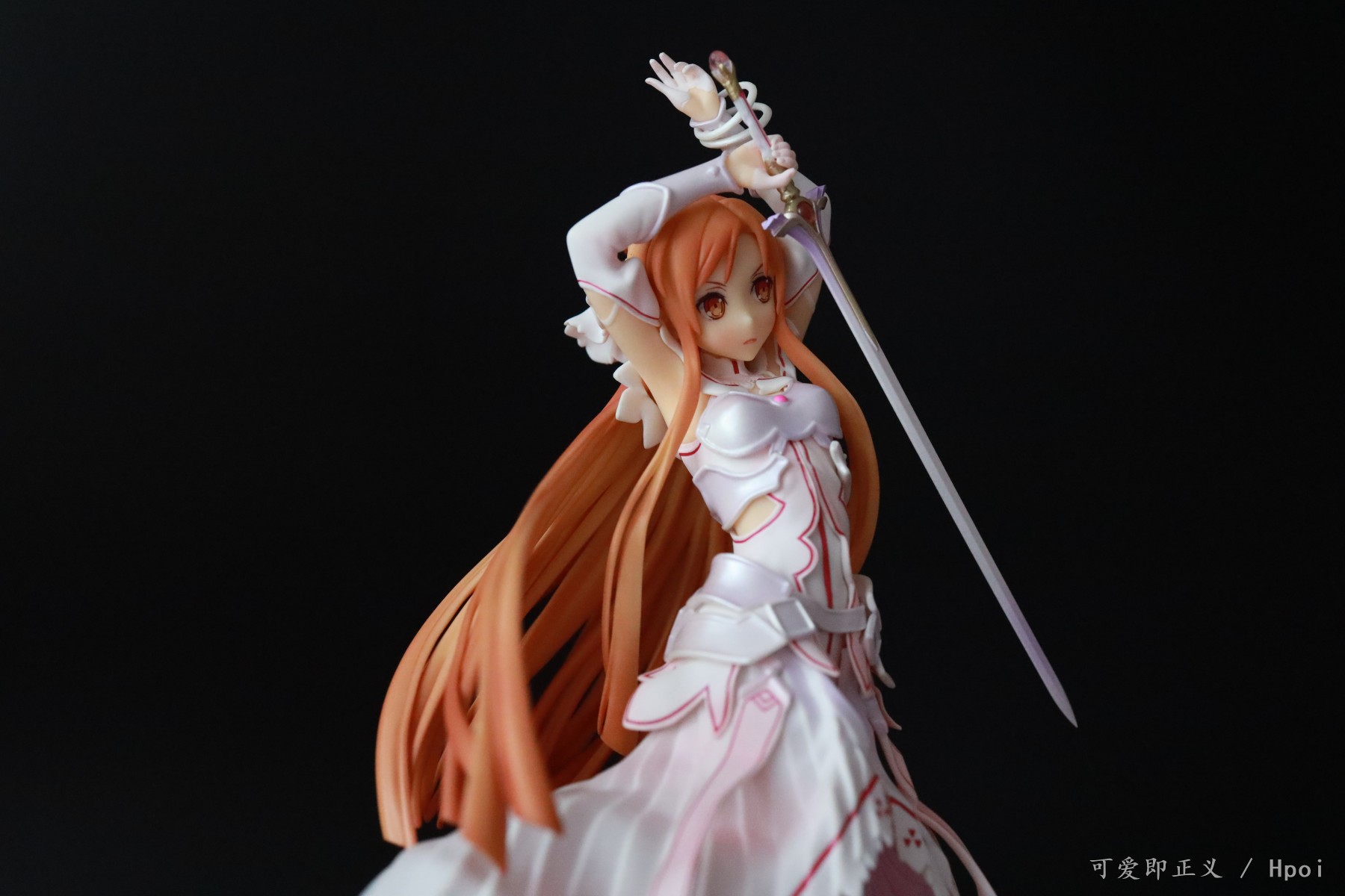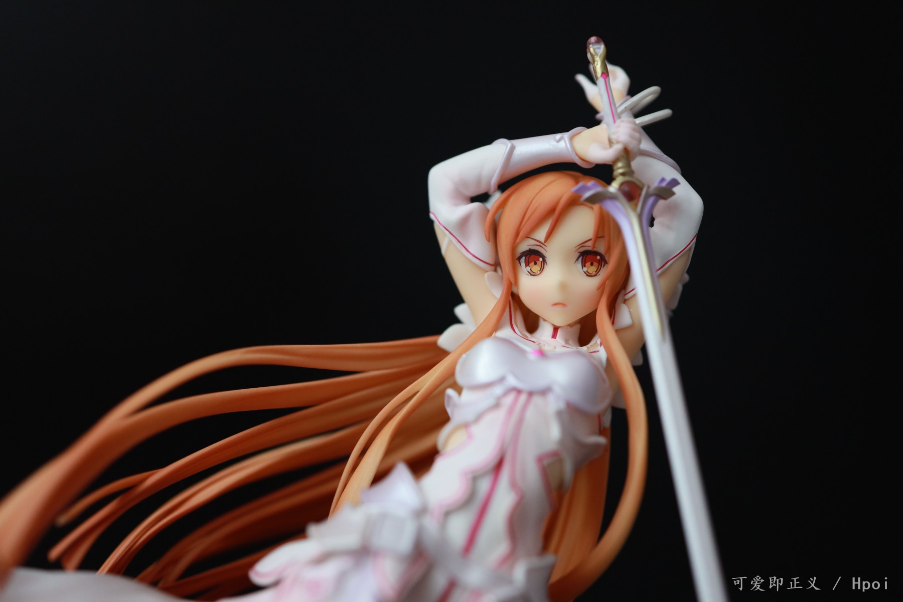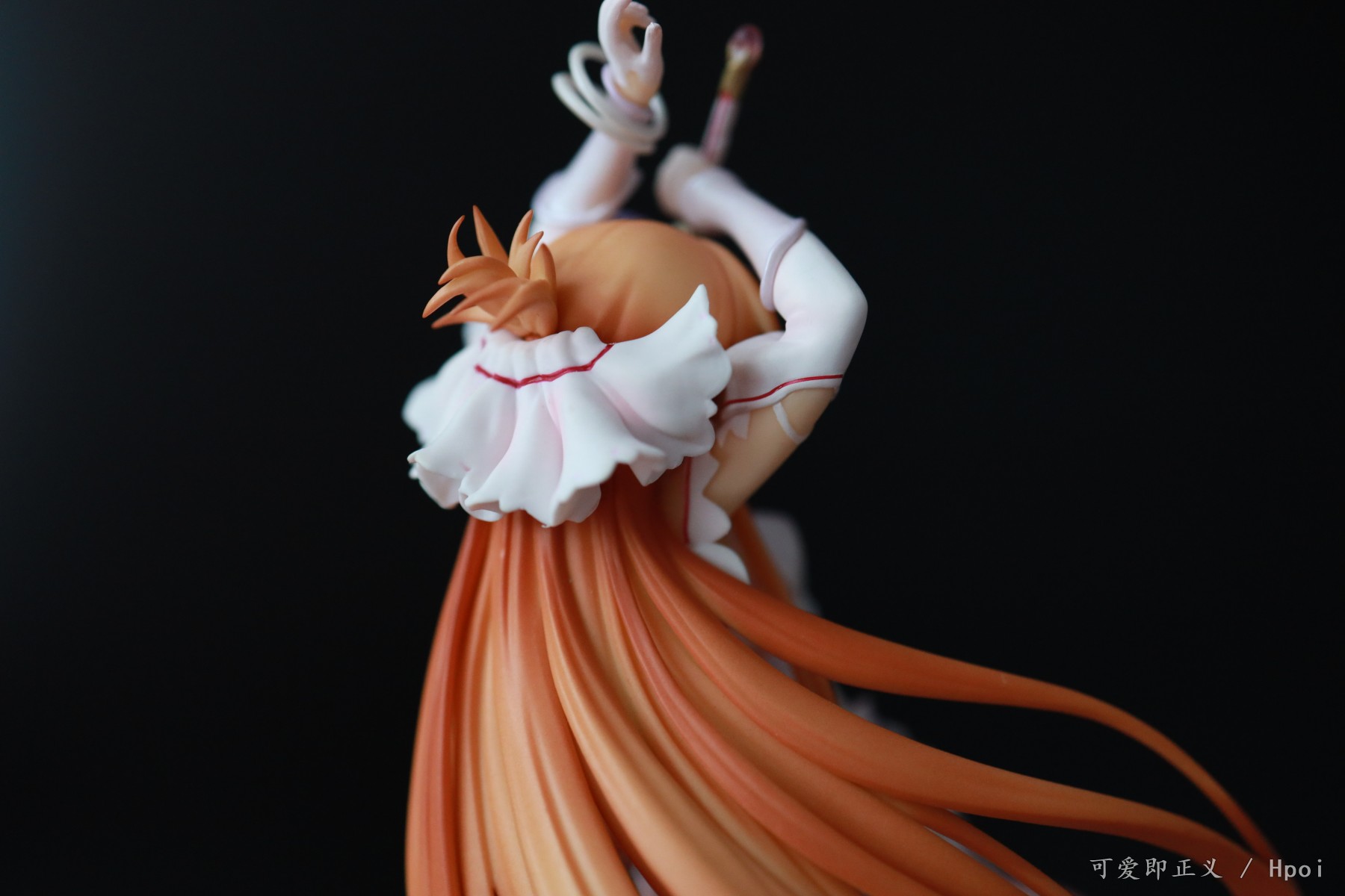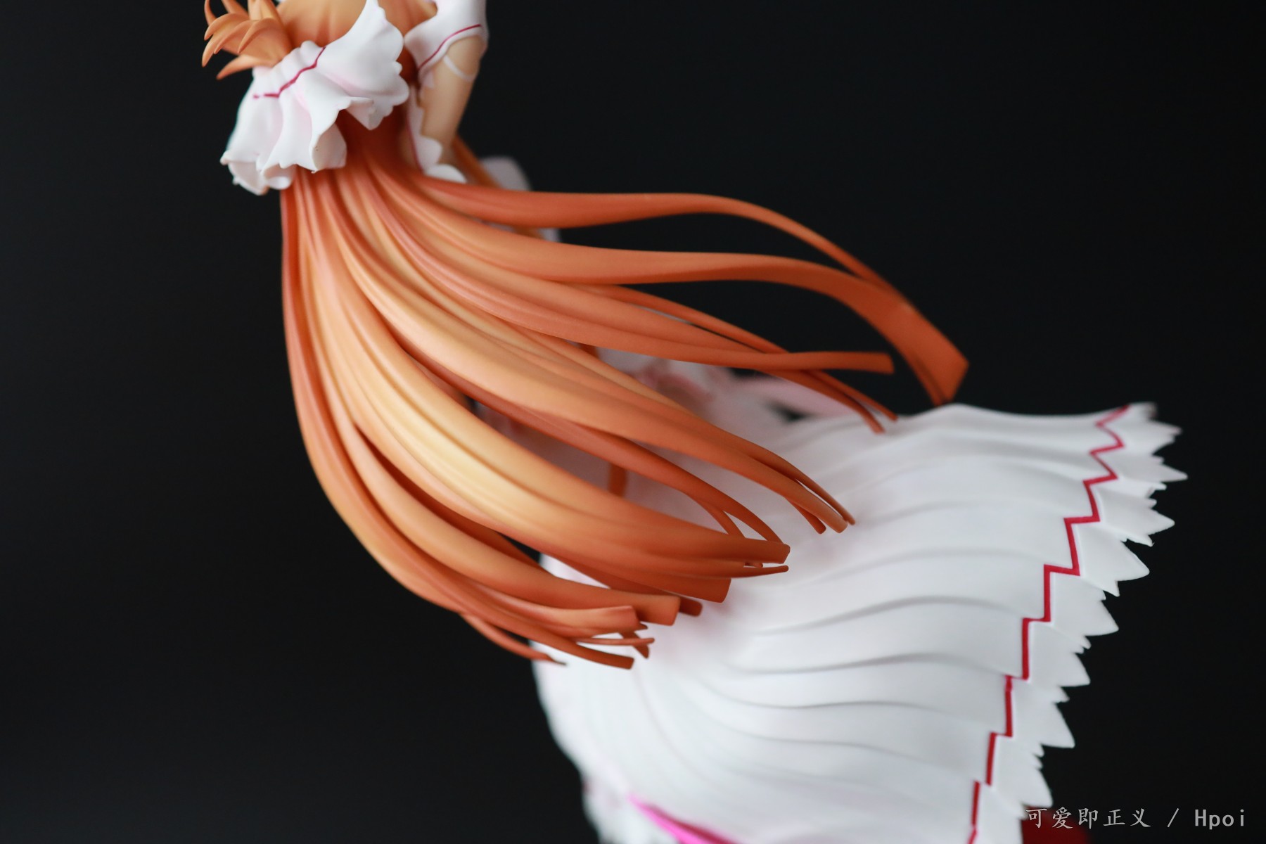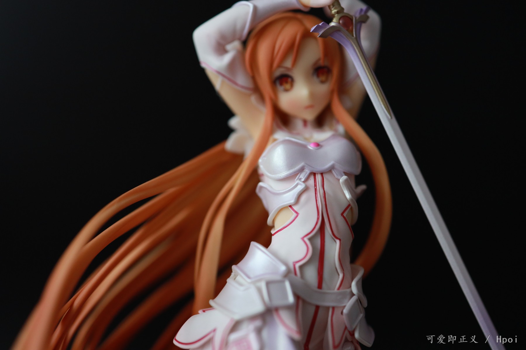 关于头发,塌的很多,不对比不知道一对比吓一跳,然后细节上可以明显的看出装涂小瑕疵很多,特别不走心,裙边装涂里里外外的,背后头发盖住的里面还掺杂着颗粒,阴影色的大范围缩水,比寿屋的血盟(图里是我300块收的是散货,正不正不知道)都是很拉胯的,还有嘴巴,涂的那么大,颜色还是死亡芭比粉,这点有点不能忍。然后手里的剑,握不到官图的位置,总是往下滑,要卡在下面粗一点的地方才行。人物整体我觉得往后倾斜的太多了,正面平视看像往后仰过去了一样,不知道都这样还是我中奖了?