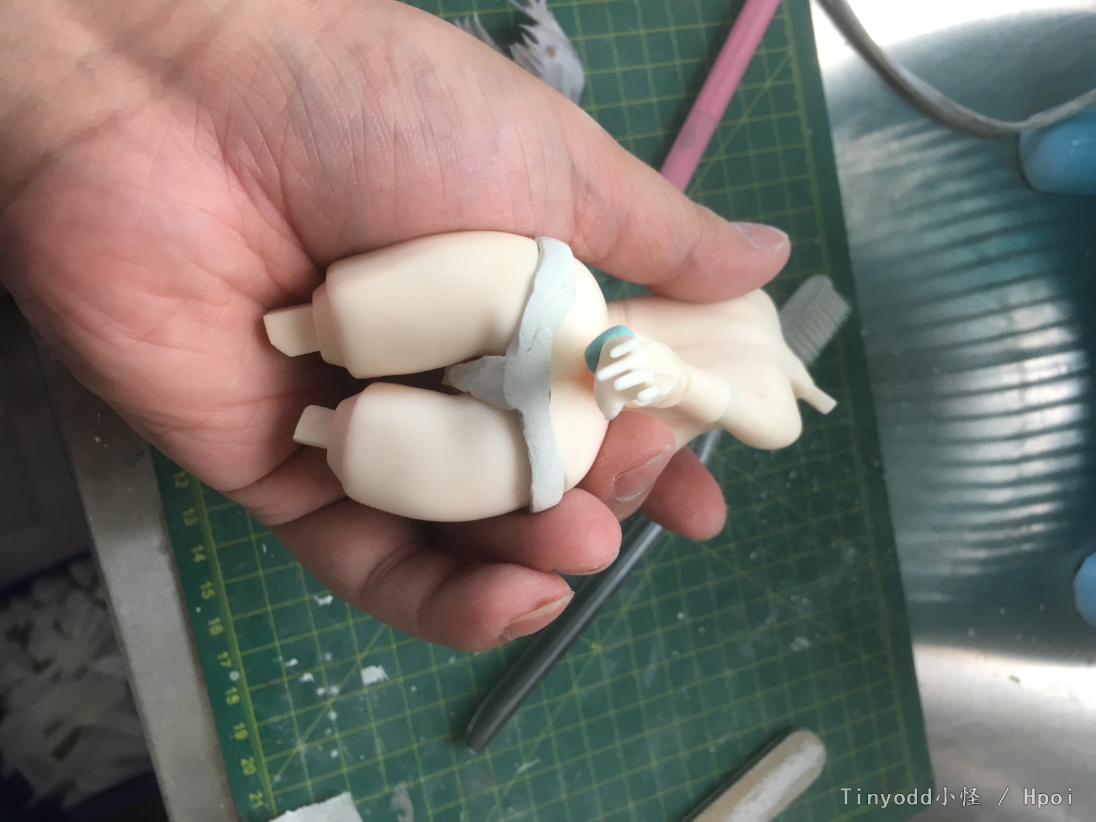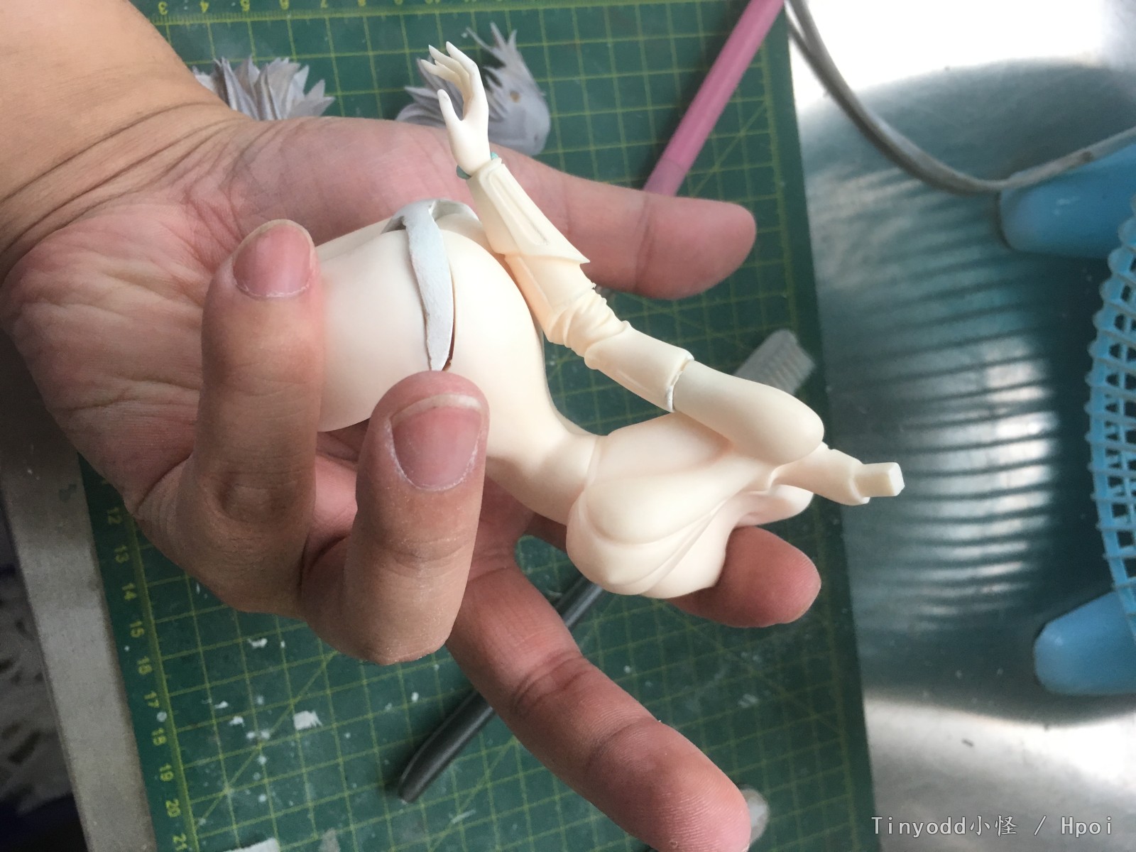 具体过程请看相册中制作部分,主要就是丢了裤衩部分的连接件,所以顺势就改造了右手动作并增配了零件以符合夏日主题。