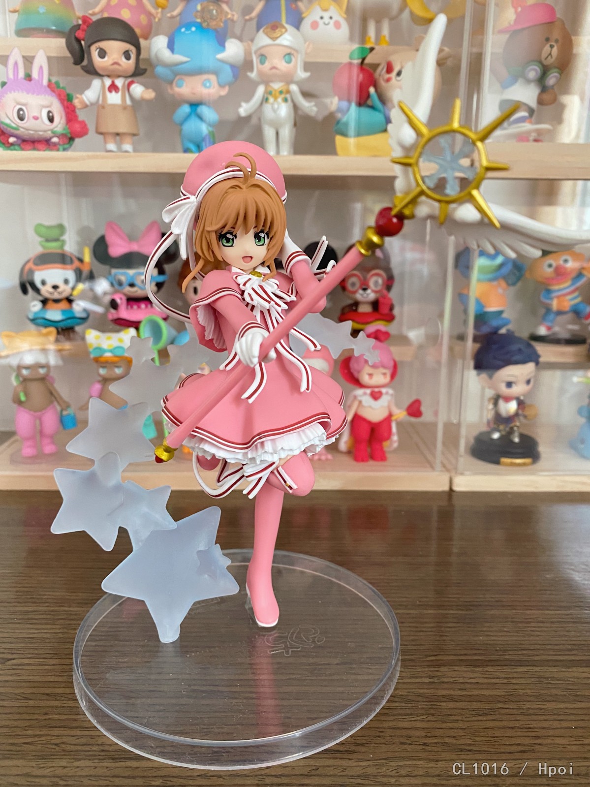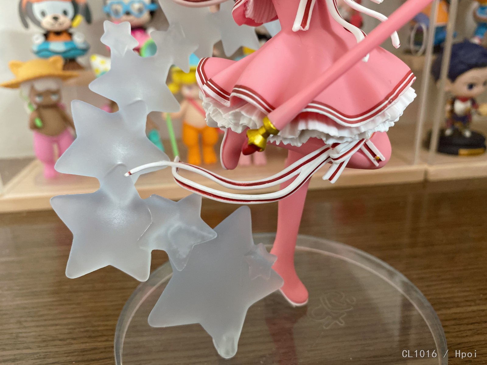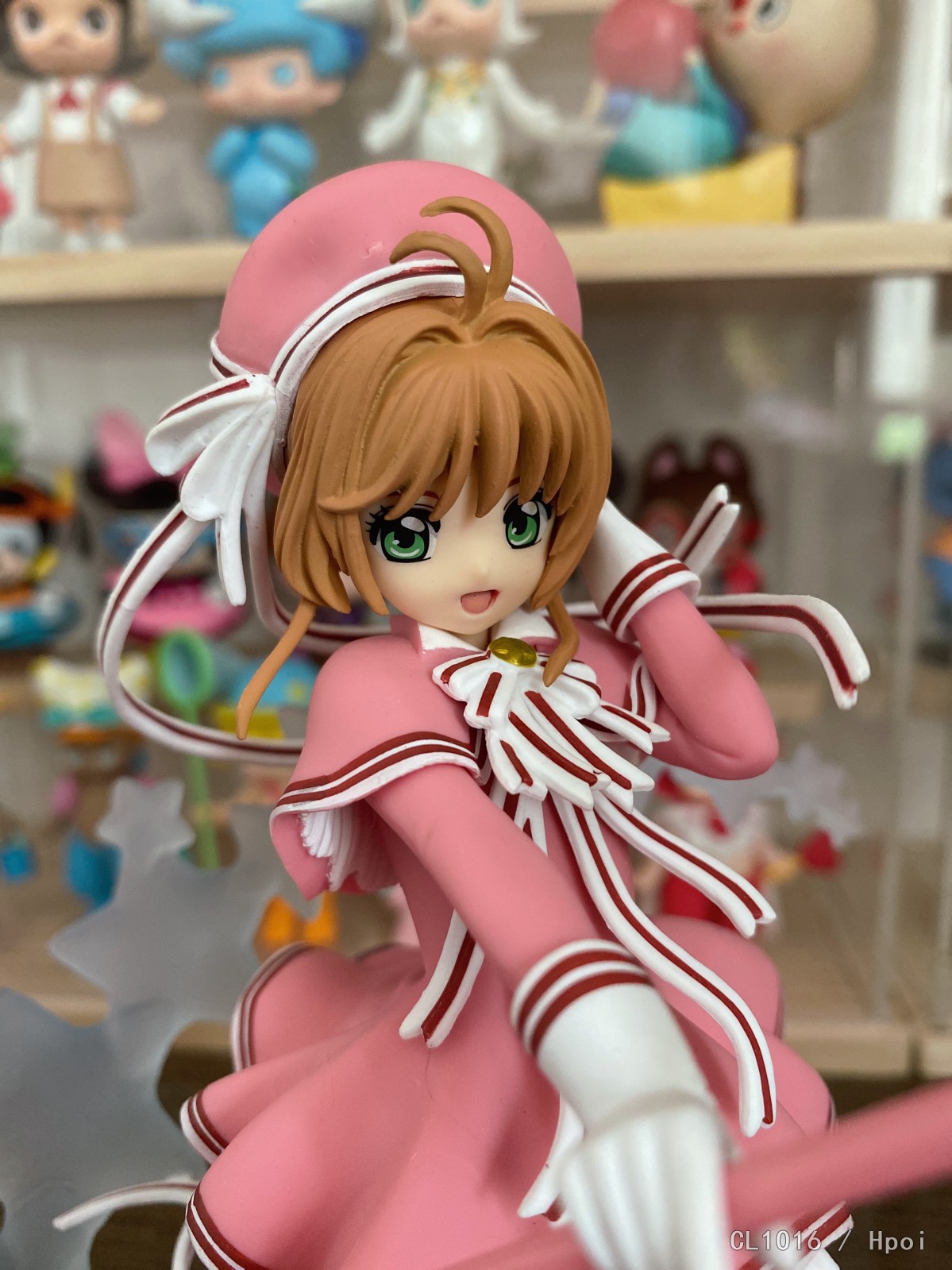 疯狂闪退终于能上传的Taito木之本樱,Taito的质量好一言难尽啊,作为景品这个涂装也很马虎了。星星透明件气泡和瑕疵都很多,丝带很难卡在星星上。确实存在角度限定的问题,好在造型讨喜,远官可可爱爱,近看比较劝退吧。
