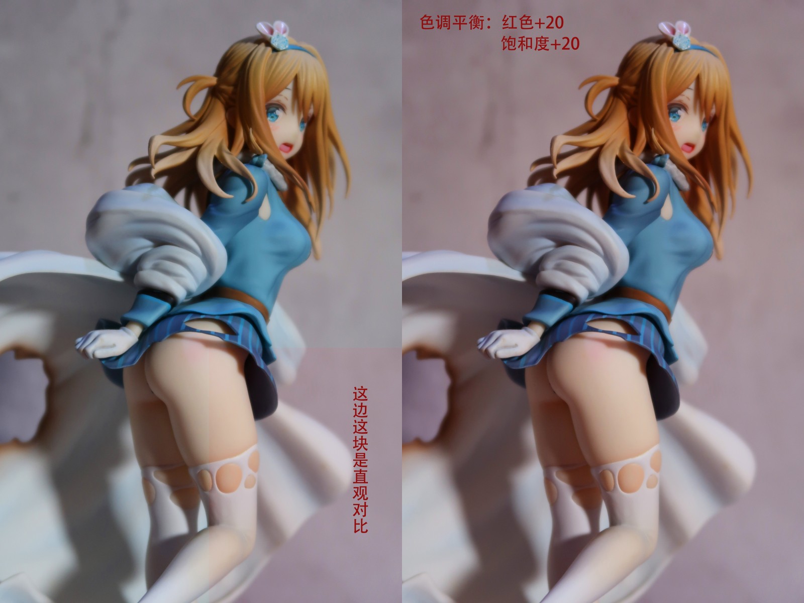 2、我感觉自己手上这款肤色偏白,根本没有官图那种粉红肌肤的效果。(色调红色+20、饱和+20情况下肤色才勉强跟官图差不多)
