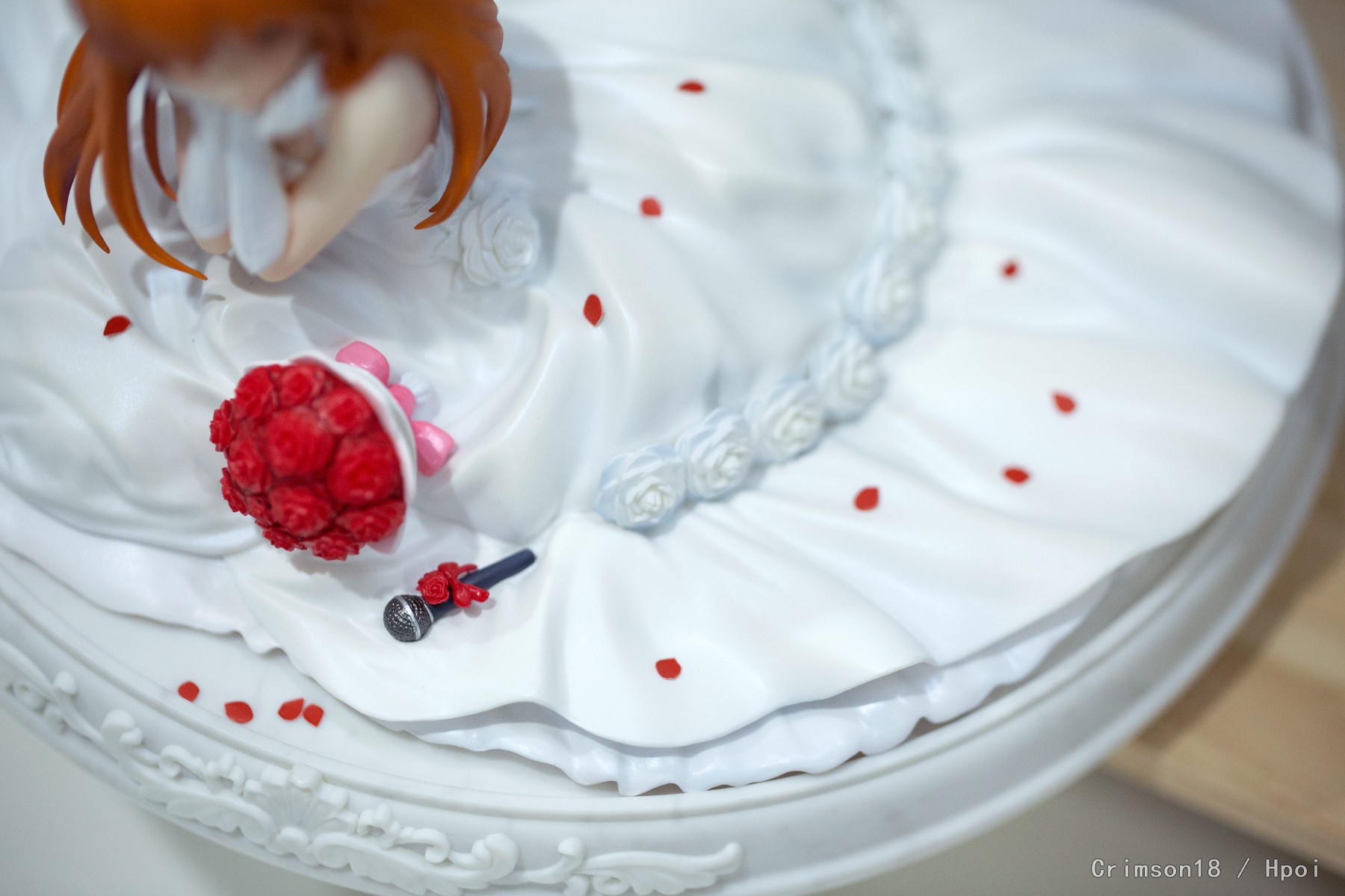 雪菜的花瓣摆起来有点麻烦,不过拍照效果还可以。不知道是不是个体差异,裙子的阴影没有冬马的明显,一圈玫瑰花的阴影也有点不自然。镜叔冬马党实锤了!重点是裙下,有腿且有细节!怕被和谐就拍了一部分,具体的大家可以自己看实物。