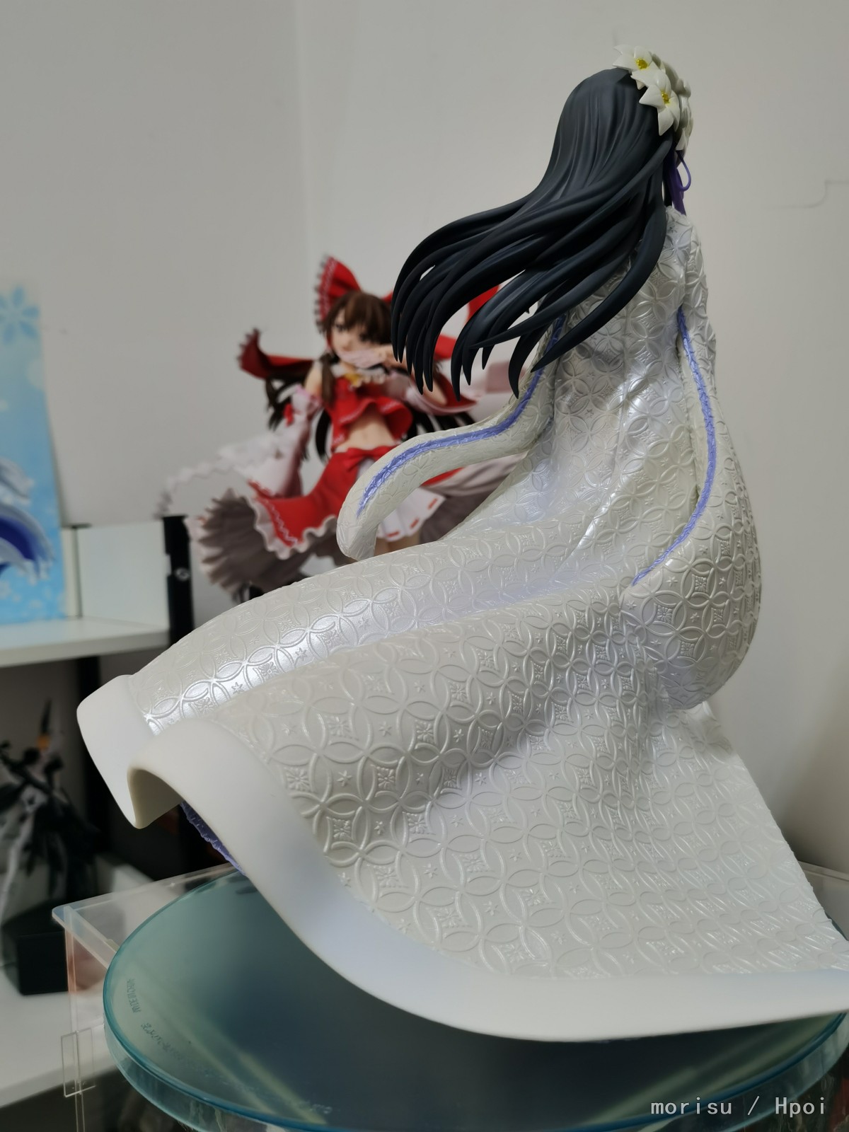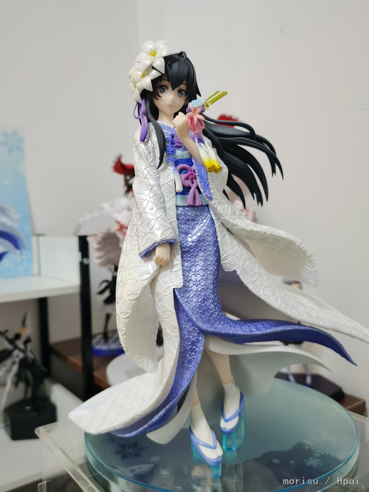 雪乃白无垢 本来已经做好被妇幼辣眼睛的打算了,这波我是没想到的。 到手没看出瑕疵,没发现跟官图差很多的点,底座插拔顺滑孔位很准,硬要说缺点的话就是底座确实有点low。 衣服可能是由于花纹的原因,不管哪个角度看过去都是一部分明一部分暗,拍起来就有点灰,光照好的话应该挺明亮的。 衣服装饰上的渐变色看起来还挺舒服的。 整体做工配这个价格我还是蛮香的,团子和一色无脑补款了,等下个月战队齐了再来传一组图。