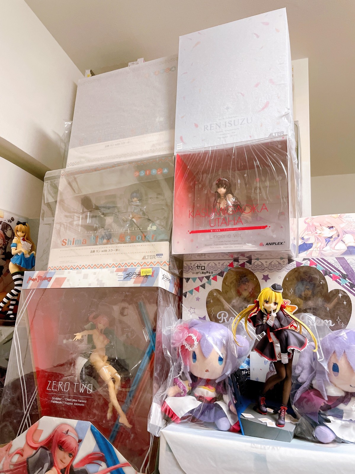 开订那时候还没入坑 对萌豚番不屑一顾 秉承着自己不随波逐流不当萌豚的信念坚决没有预定(其实是点兎难民当出了PTSD)时过境迁 随着它的延延延期 我也加入了晚买哭着求的行列 发售当天在秋叶原跑断了腿_(:_」∠)_ 只买到了一个 不过hobbysearch发售当天在库也复活了几分钟 跟着群友们练出来的手速派上了用场 在网上又抢了一单 过些天大概就能到了 掐着点起床跑去秋叶原还是有所回报的 甚至头天晚上太激动没怎么睡好觉 已经很多年没有过这种买手办很兴奋的感觉了 说实话有点意外 这次大A没趁第二季再版这只我没怎么想到 难道说因为摩托的缘故不方便再版也说不定?总之发挥的还是很稳定 但小也是真的小…跟北斋泡面压的脸差不多大了