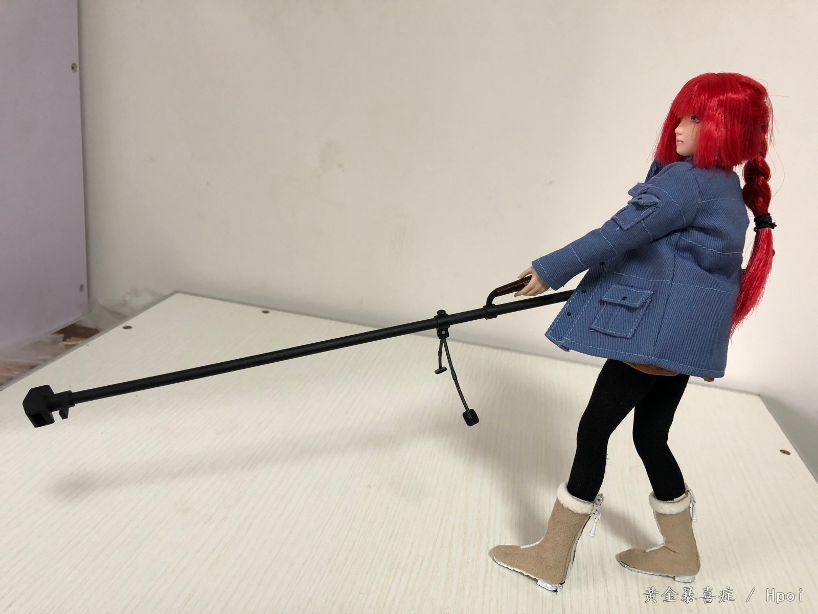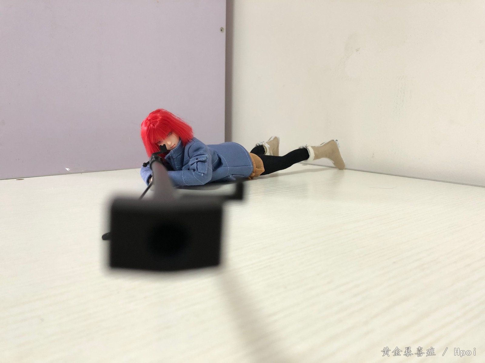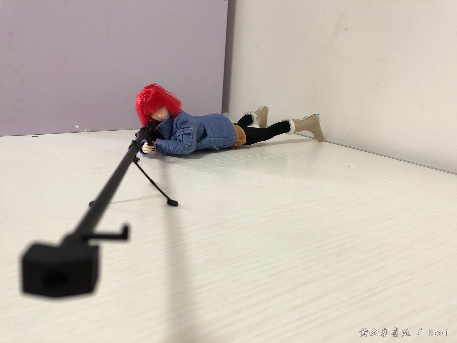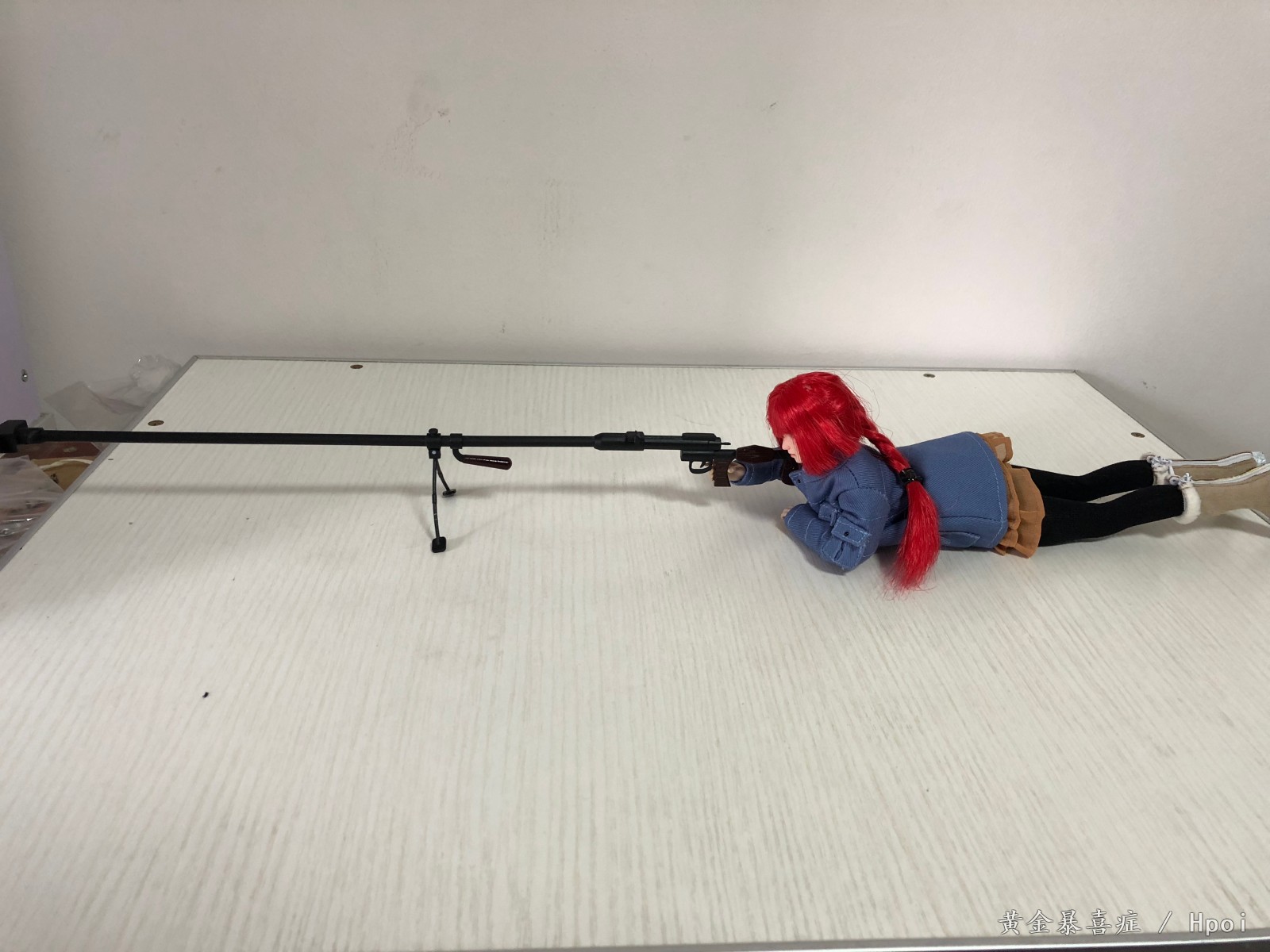 相比于配衣服,做头雕,最难受的问题就是她的武器PTRD-41居然在兵人圈找不到1/6的,唯一早期的威龙出过一款,不过也已经可遇不可求了,而且大小貌似也不是严格1/6的。被逼无奈只能自己去找了3D打印和喷涂,最终做出来的效果幸好还可以,不愧是毛子武器,就是结构简单。原作中的瞄准镜貌似是动画组自己加装的,我也不知道是什么款式的,只能放弃了。最后1/6的鎗全场30CM以上,和小女孩配合在一起果然不错,反差效果爆棚!