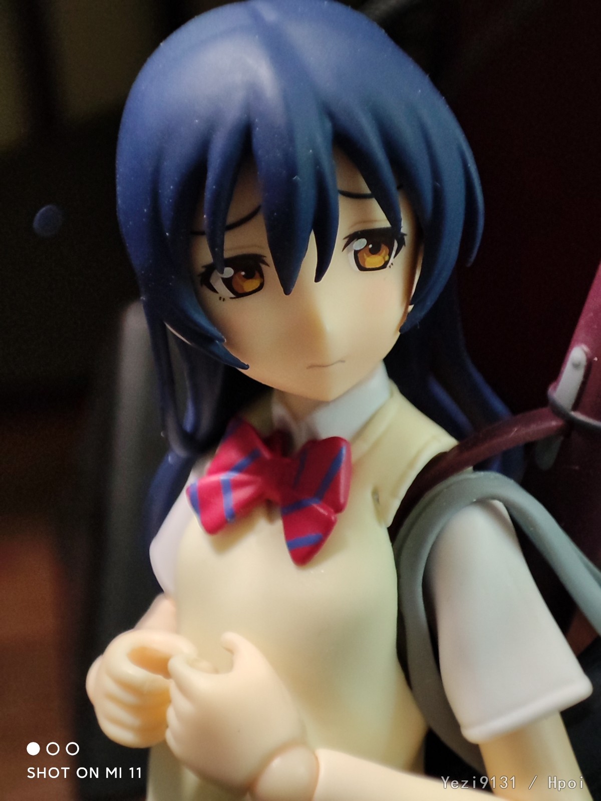 掰造型的时候,怎么掰也没法让头不前倾,直到我翻过来看后背才发现上半身的弯腰关节从身子里出来了(老人地铁手机.JPG)