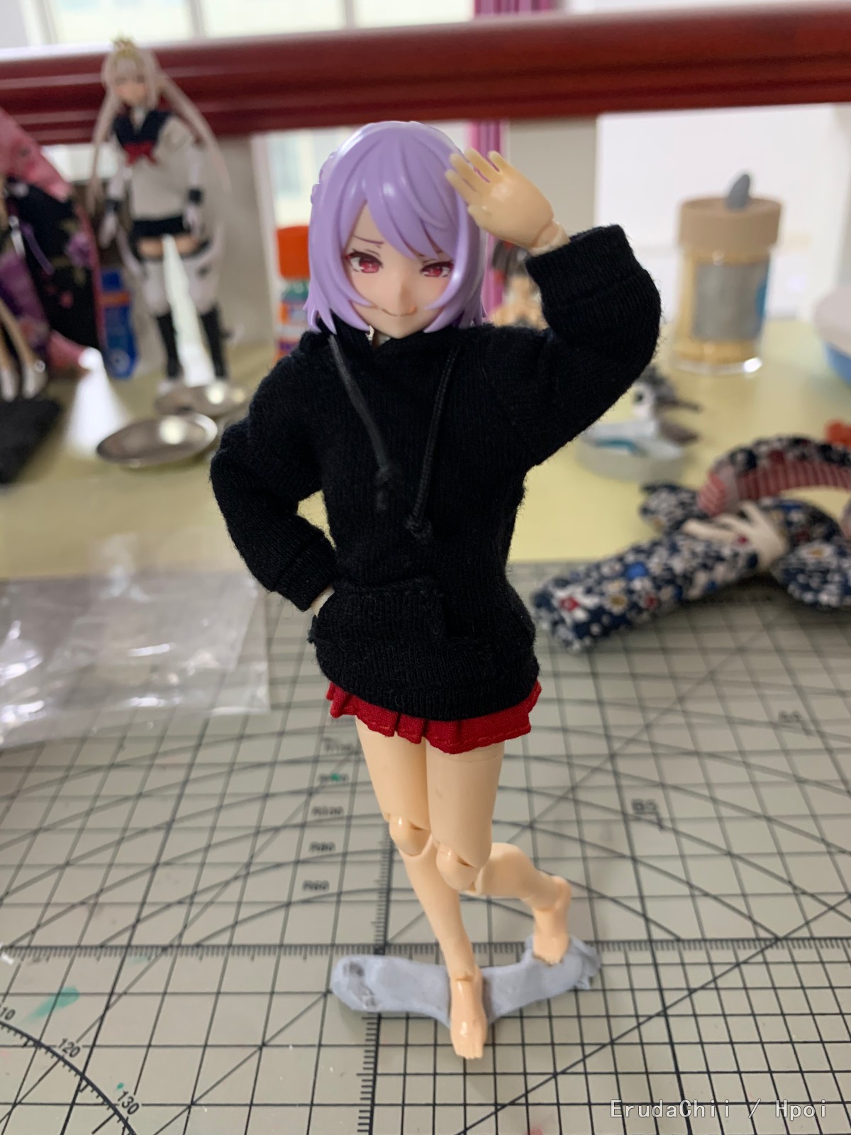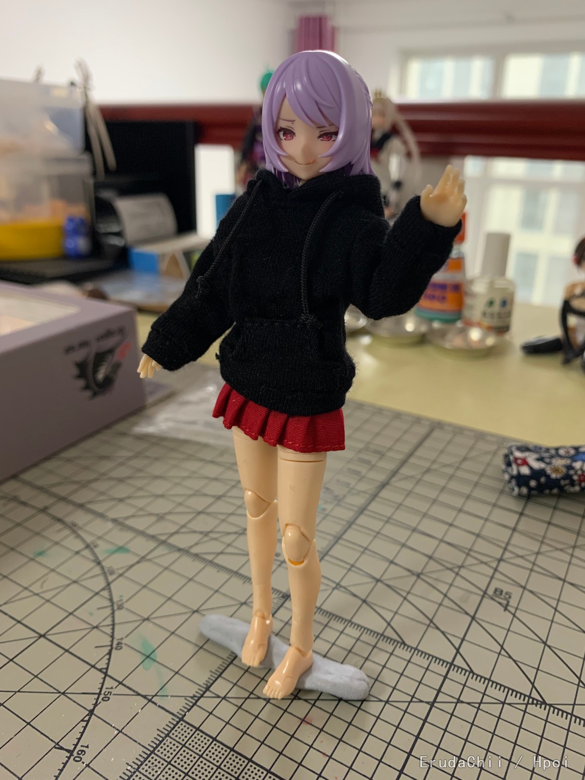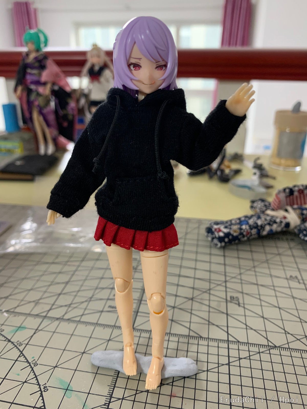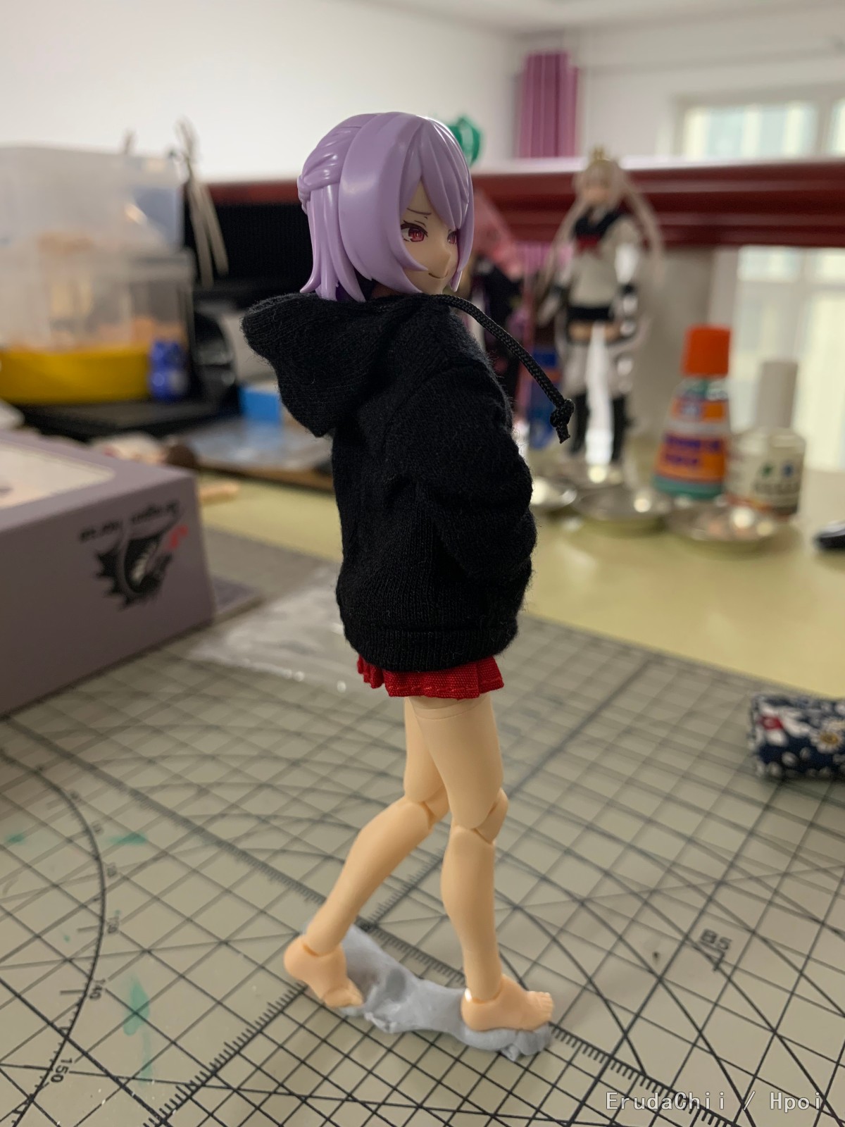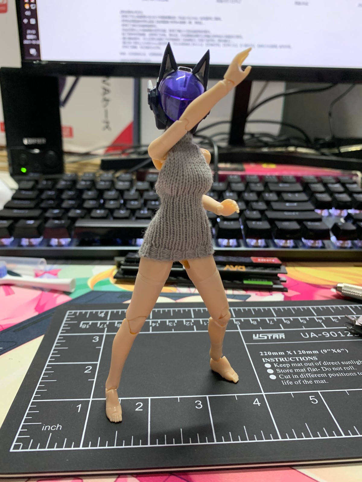 用的魔法少女的胳膊和腿,忍者的肚子,以及msg的垮.脚.肩膀.胸,最后头部用了驱魔人。总体感觉就是一代比一代强吧,魔法少女的组合度不太好,msg零件的组合度最佳,另外就是色差,msg全用的肤色A,与忍者的肚子基本无色差,与魔法少女的胳膊腿色差就比较大了,最后驱魔人的脸与所有肤色都不搭,偏红一些,也有肤色B的零件,但是那个就更红了,与手脚的区别更大,更影响美观。打算过几天给素体来个整体上色,统一下色差ˊ_>ˋ