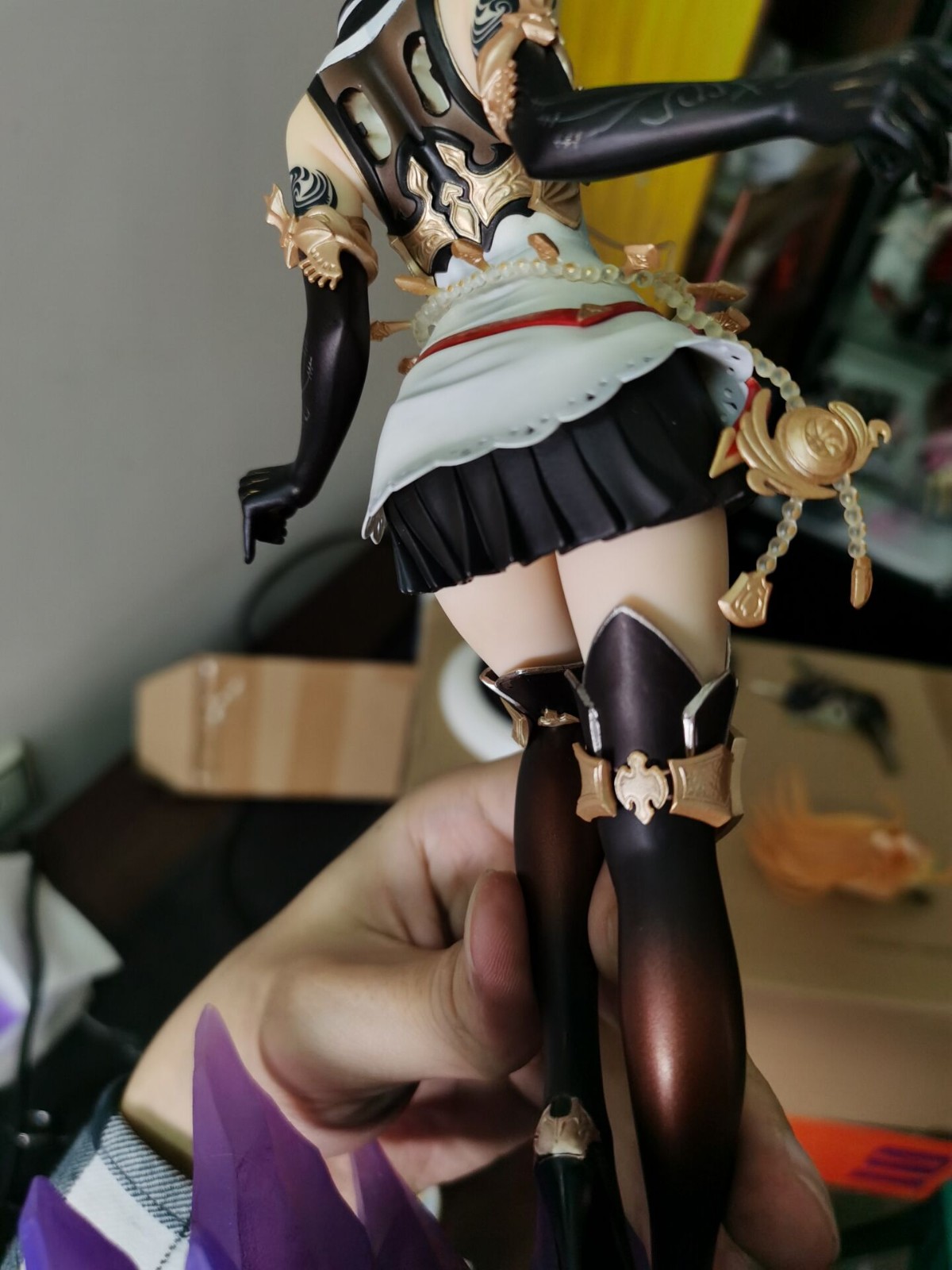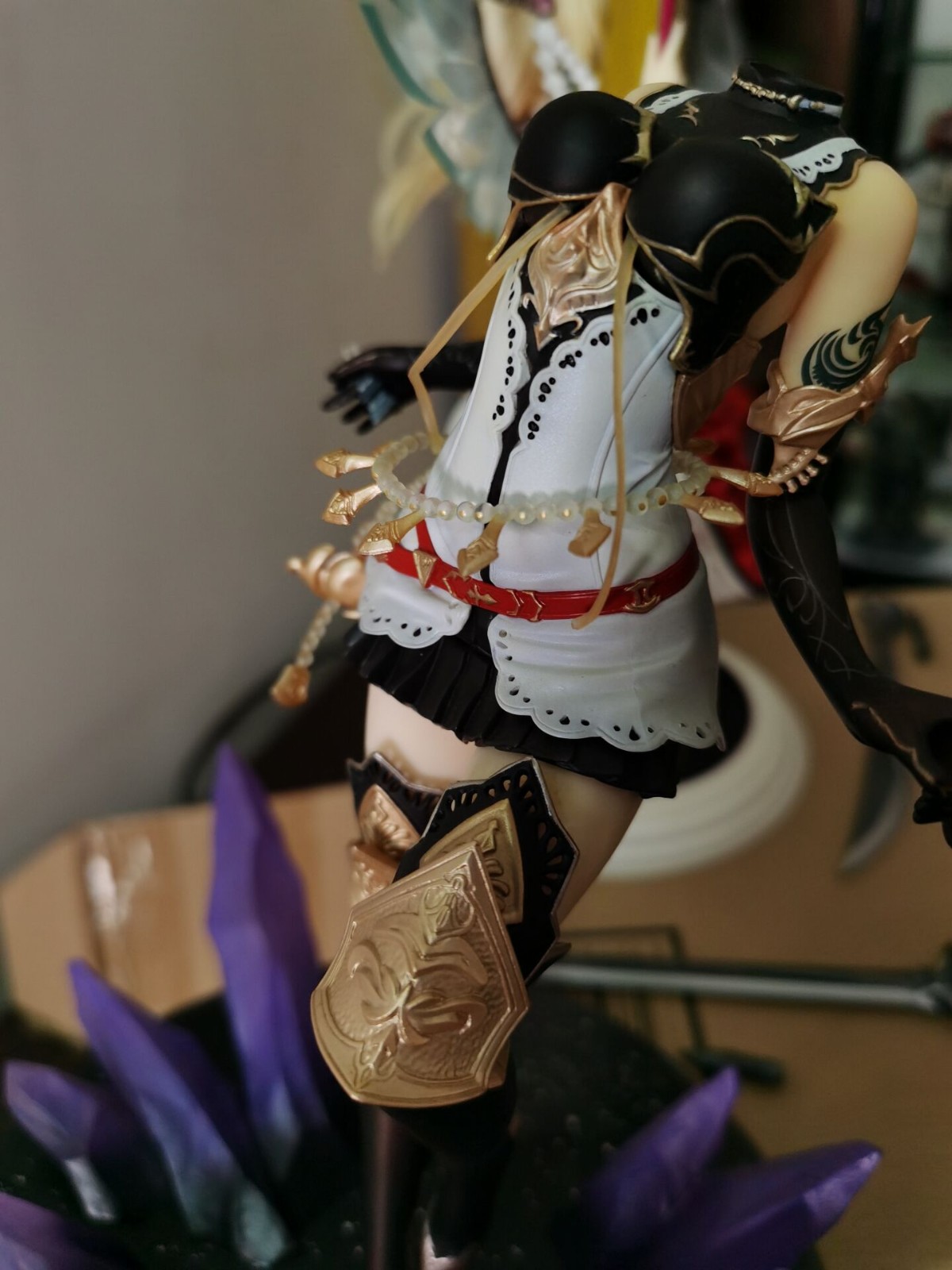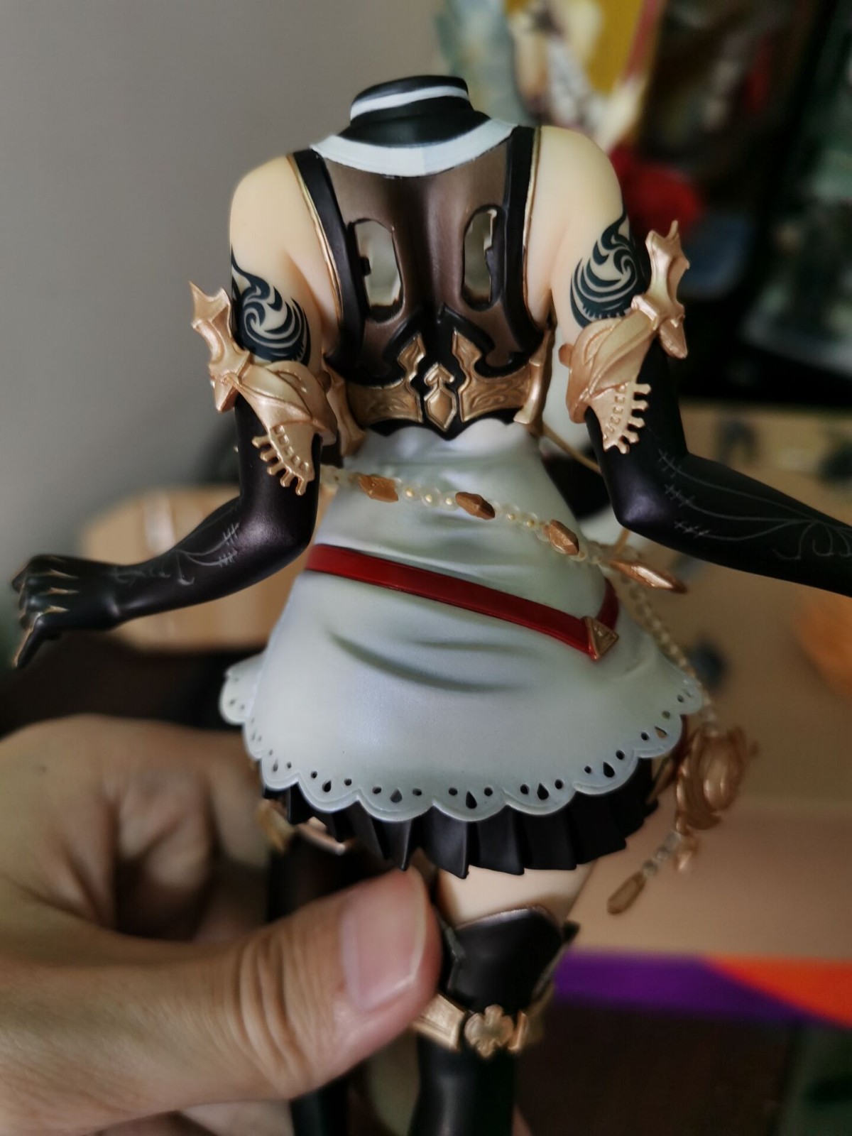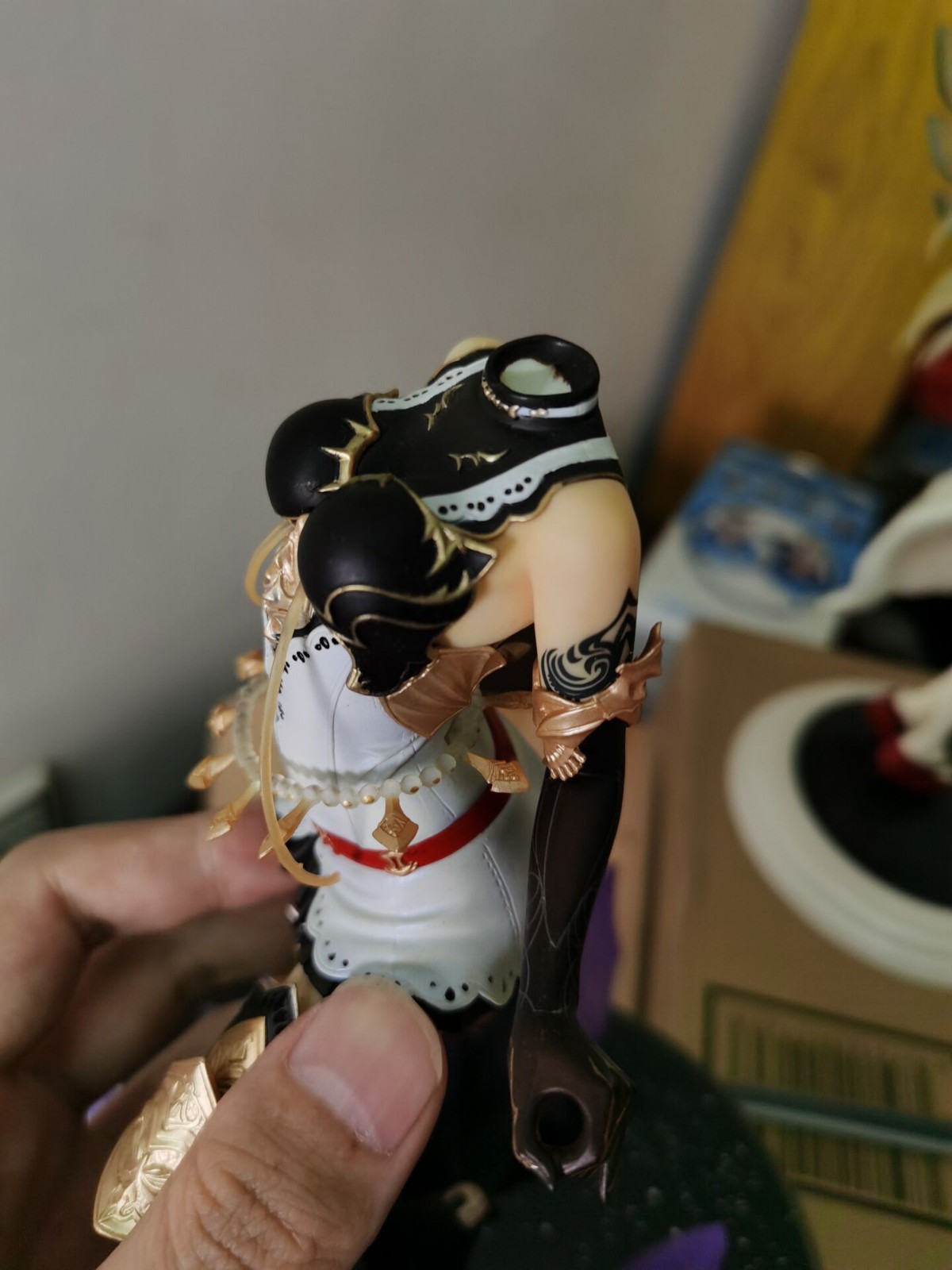 例如这个地狱里爬出来的女仆saber,我也不知道怎么才能蹭漆成这样的,当时无盒的手办包装好,结果好心的驿站姐姐又帮我重新打包发出去,我不以为意,结果到买家手中变成这样,算了算了,反正就是也是当尸体卖的,卖了也卖不了多少钱。