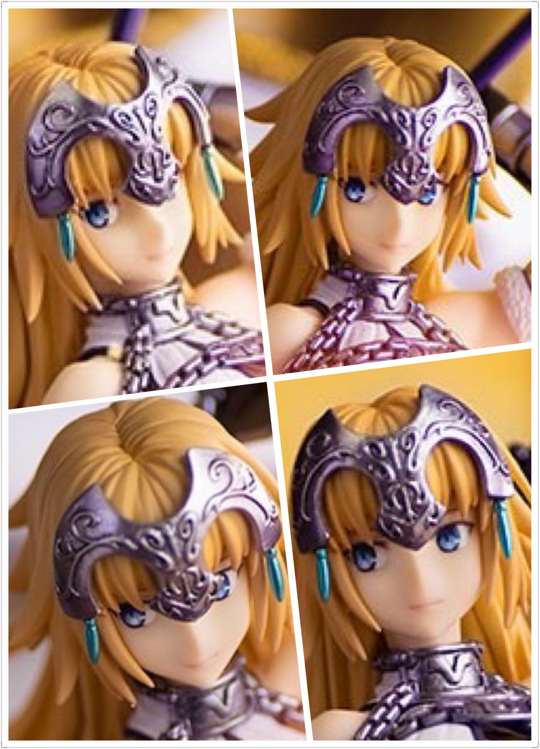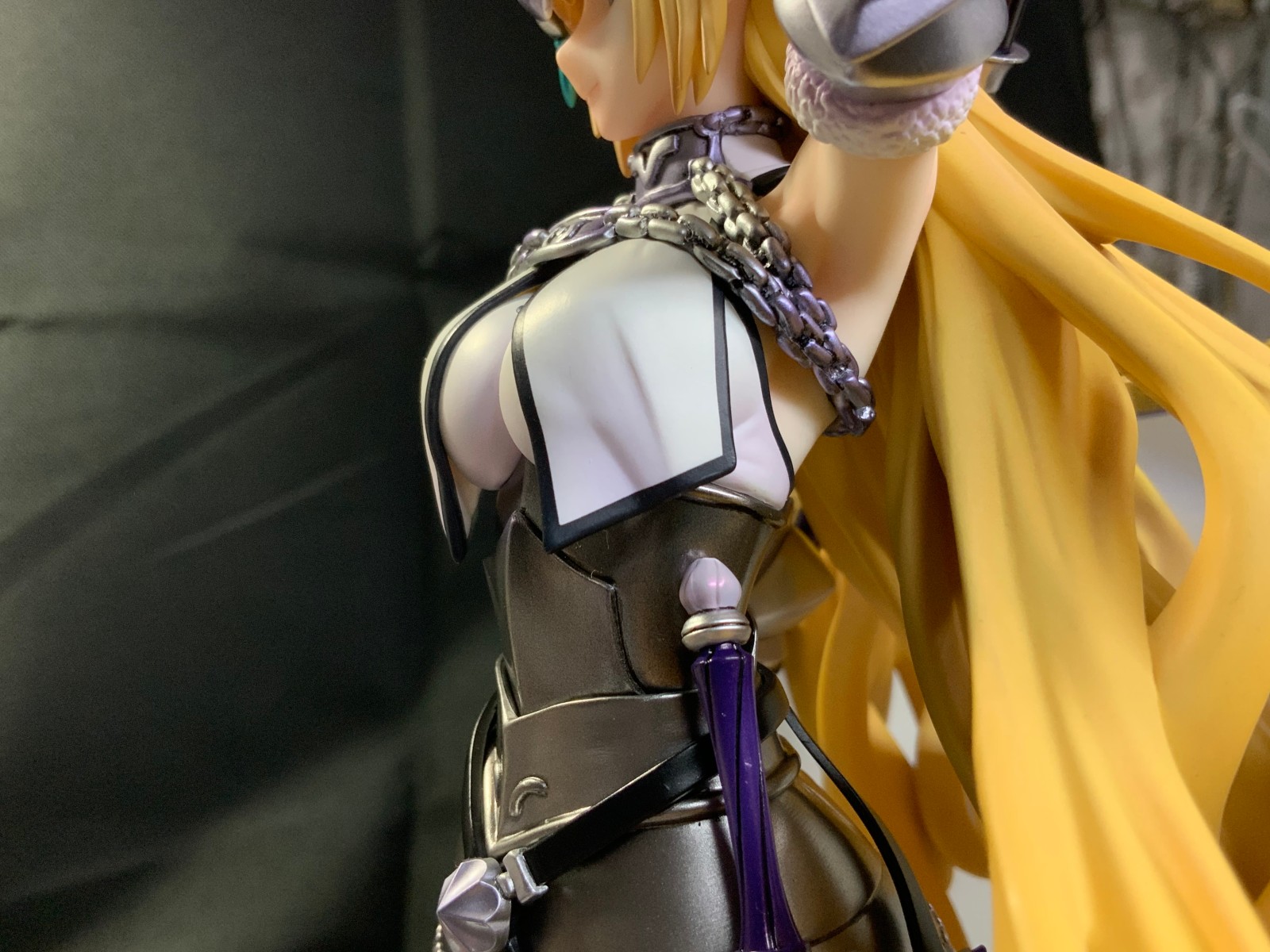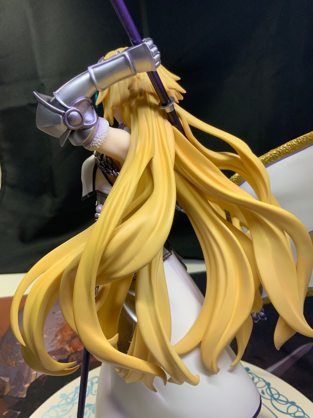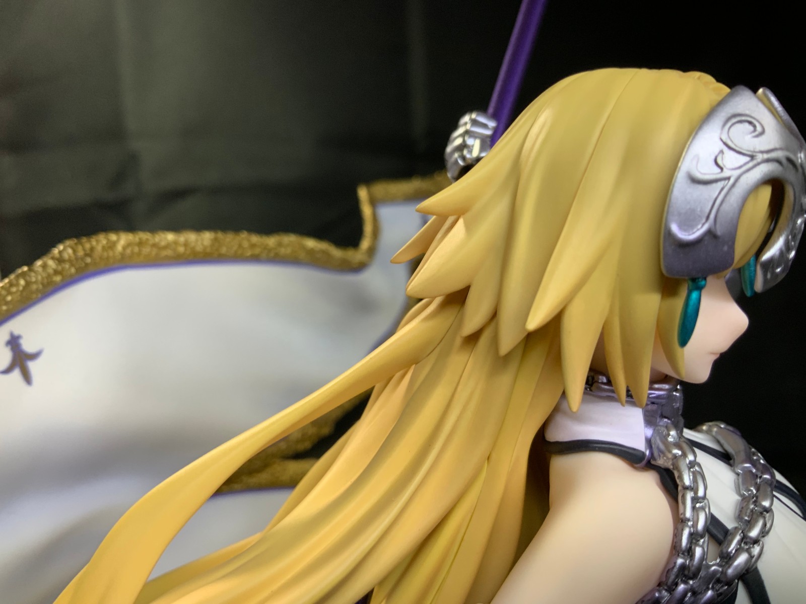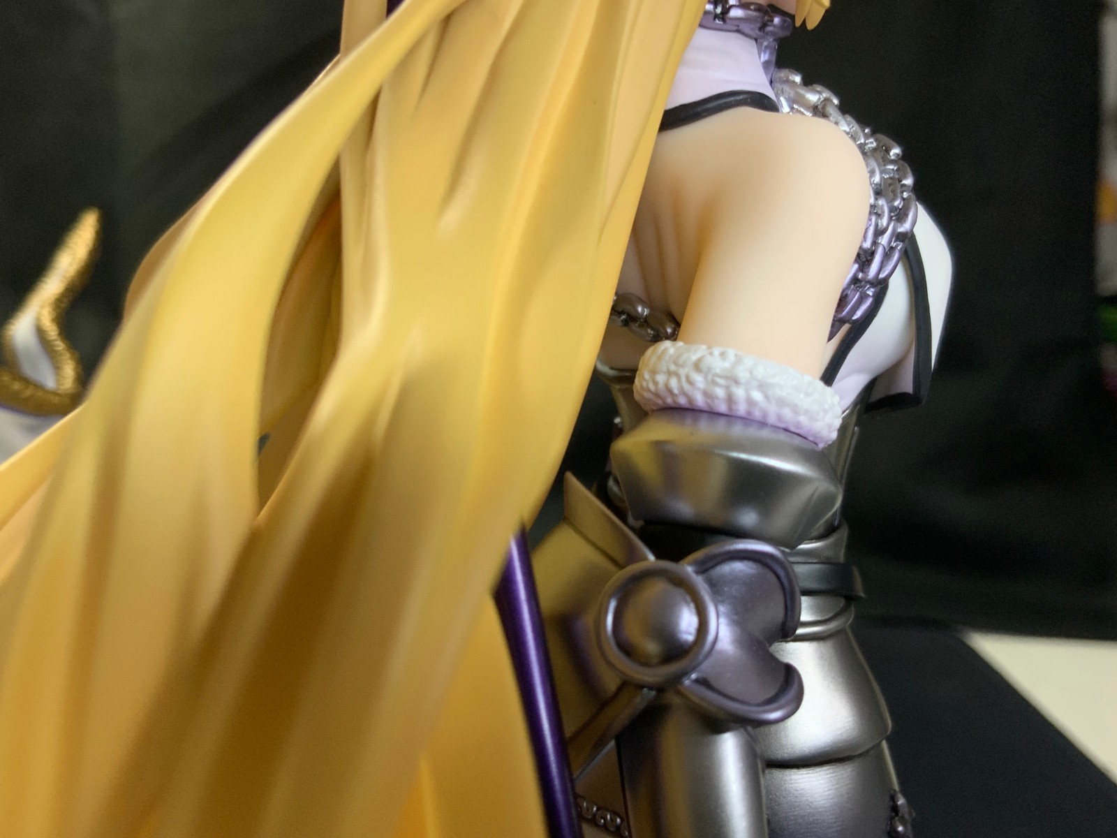 整体线条流畅,金色的长发如瀑布一般倾泻而下,能感受到贞德的头发那柔软的质感,也能看出设计者有在努力地藏头发的合模线。