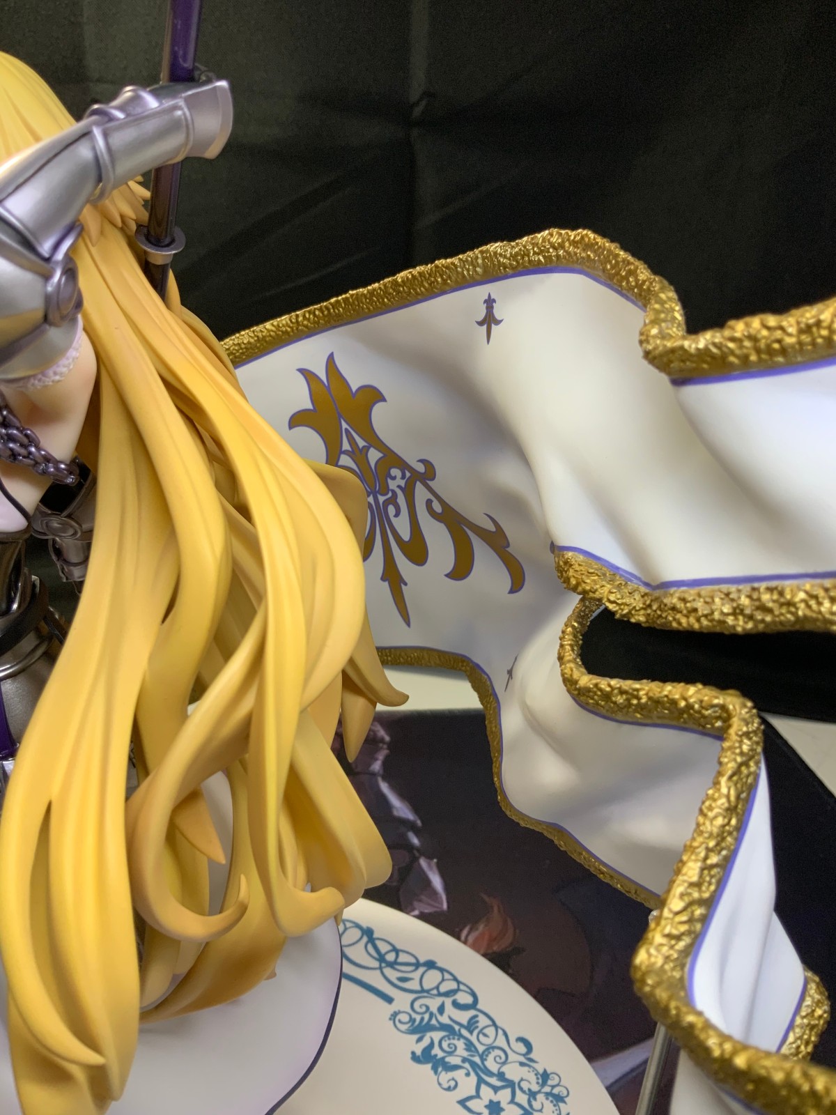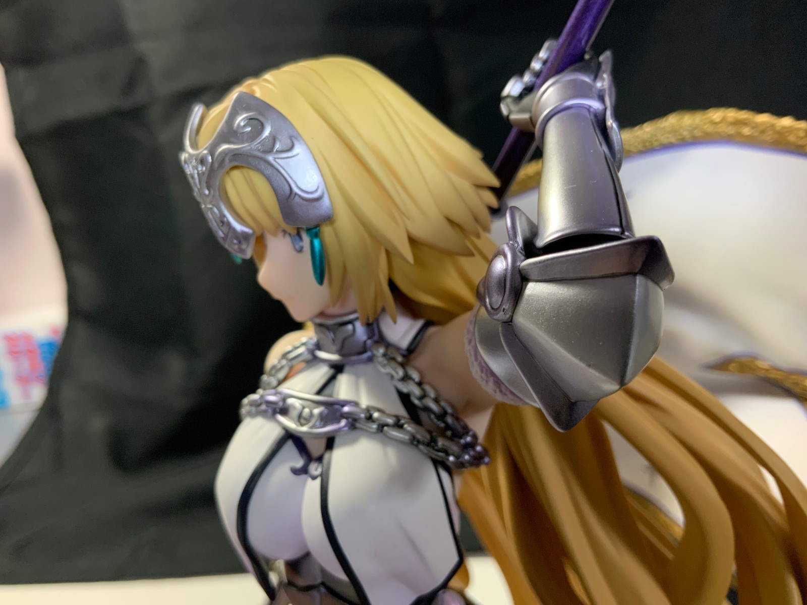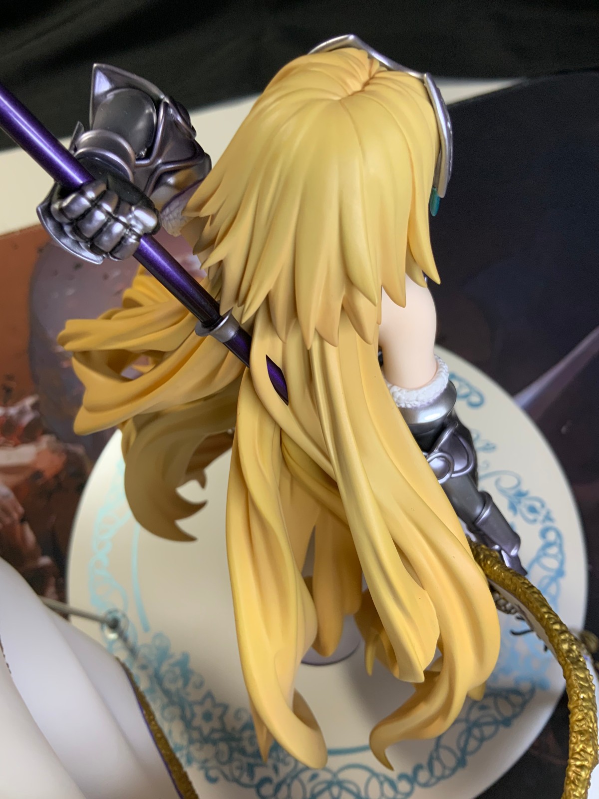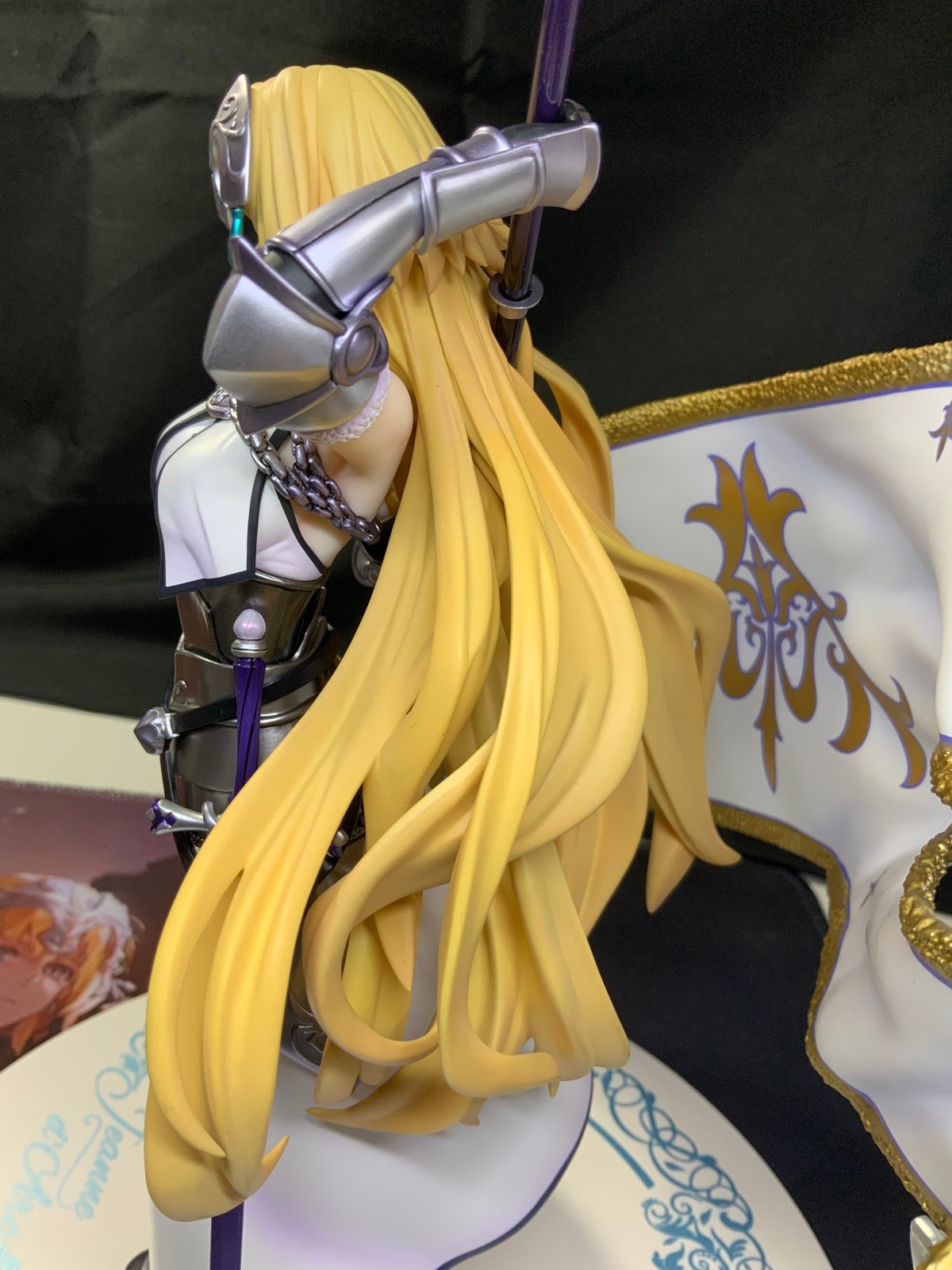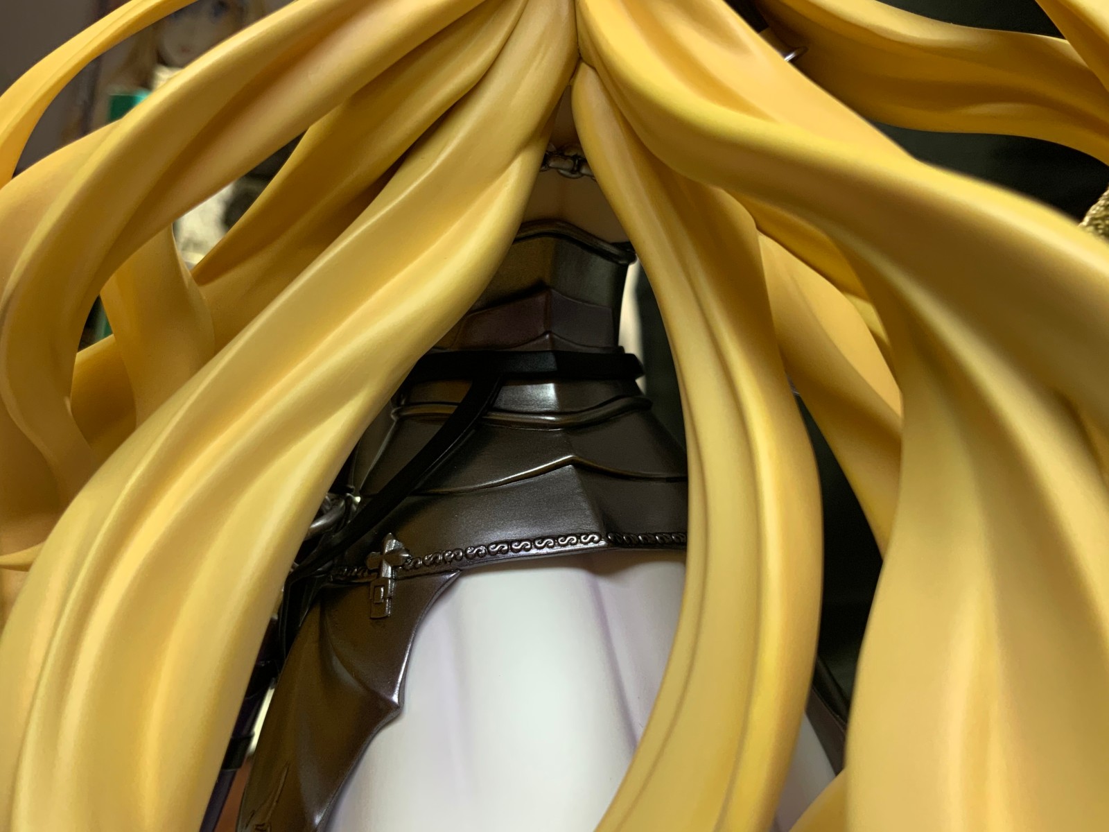 整体线条流畅,金色的长发如瀑布一般倾泻而下,能感受到贞德的头发那柔软的质感,也能看出设计者有在努力地藏头发的合模线。