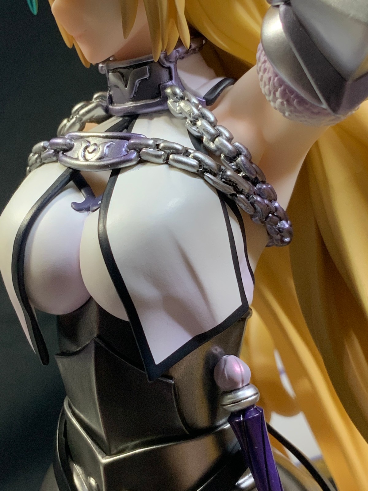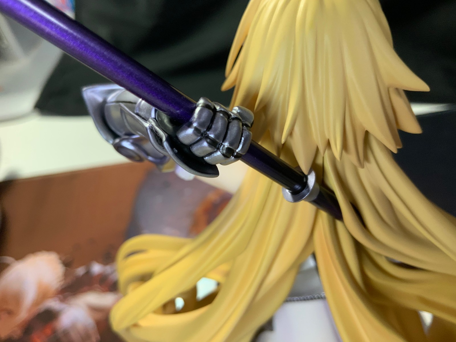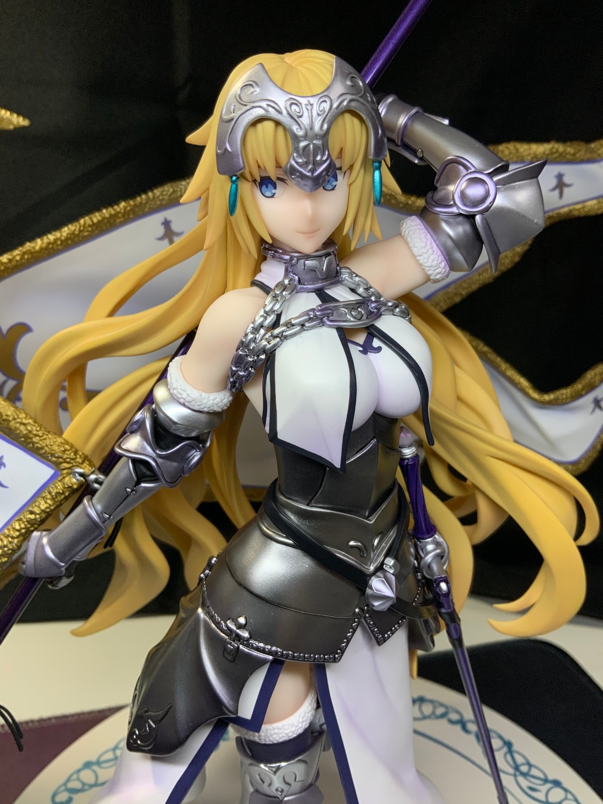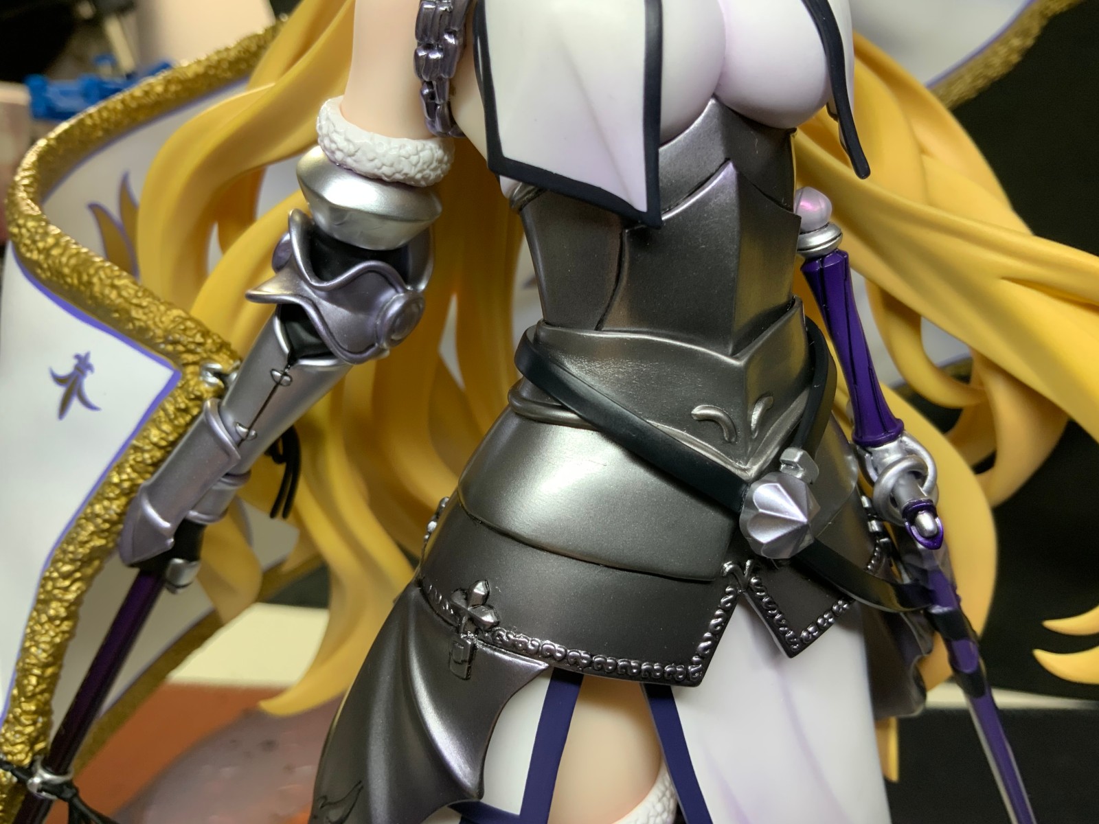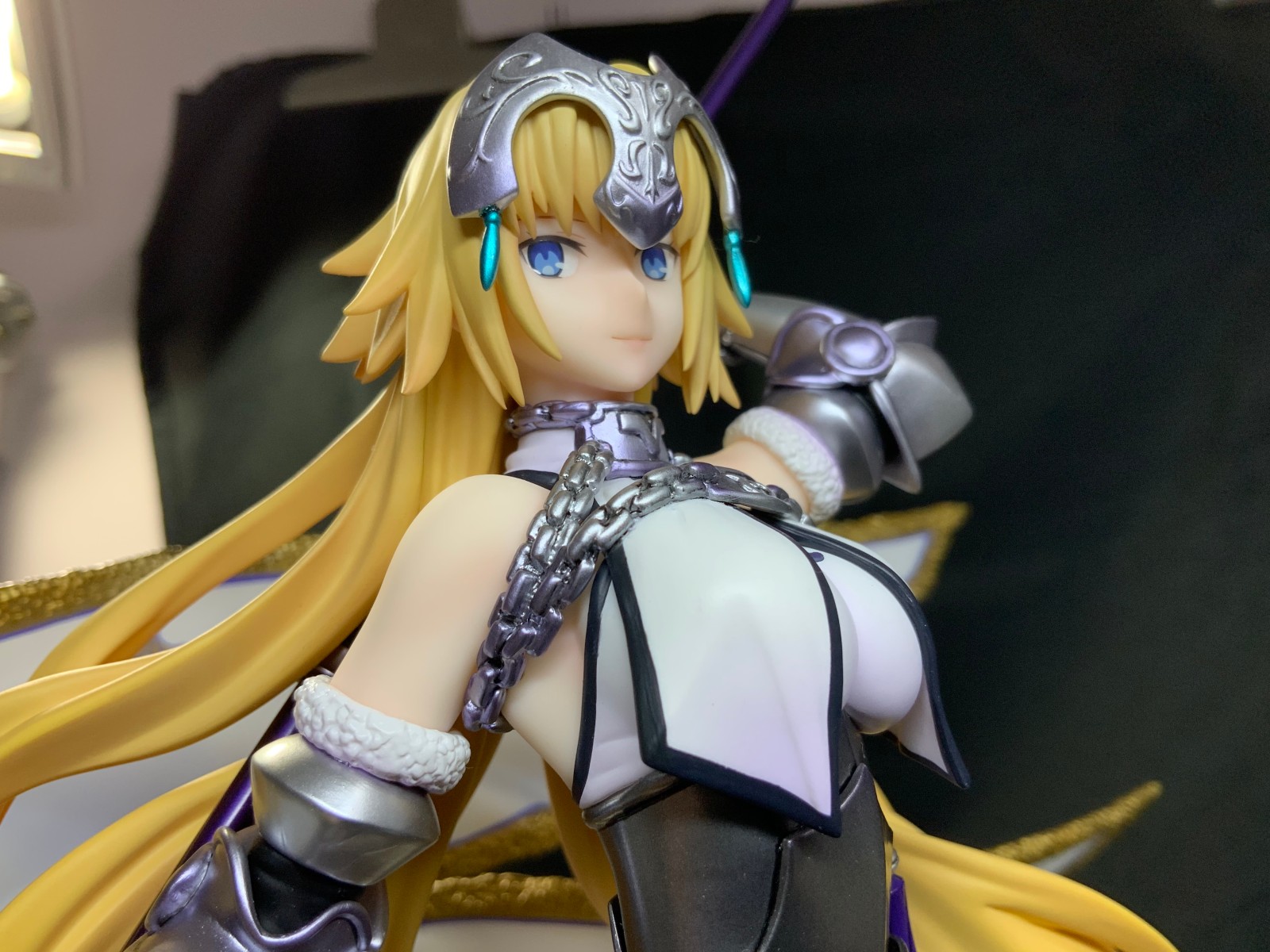 整体线条流畅,金色的长发如瀑布一般倾泻而下,能感受到贞德的头发那柔软的质感,也能看出设计者有在努力地藏头发的合模线。
