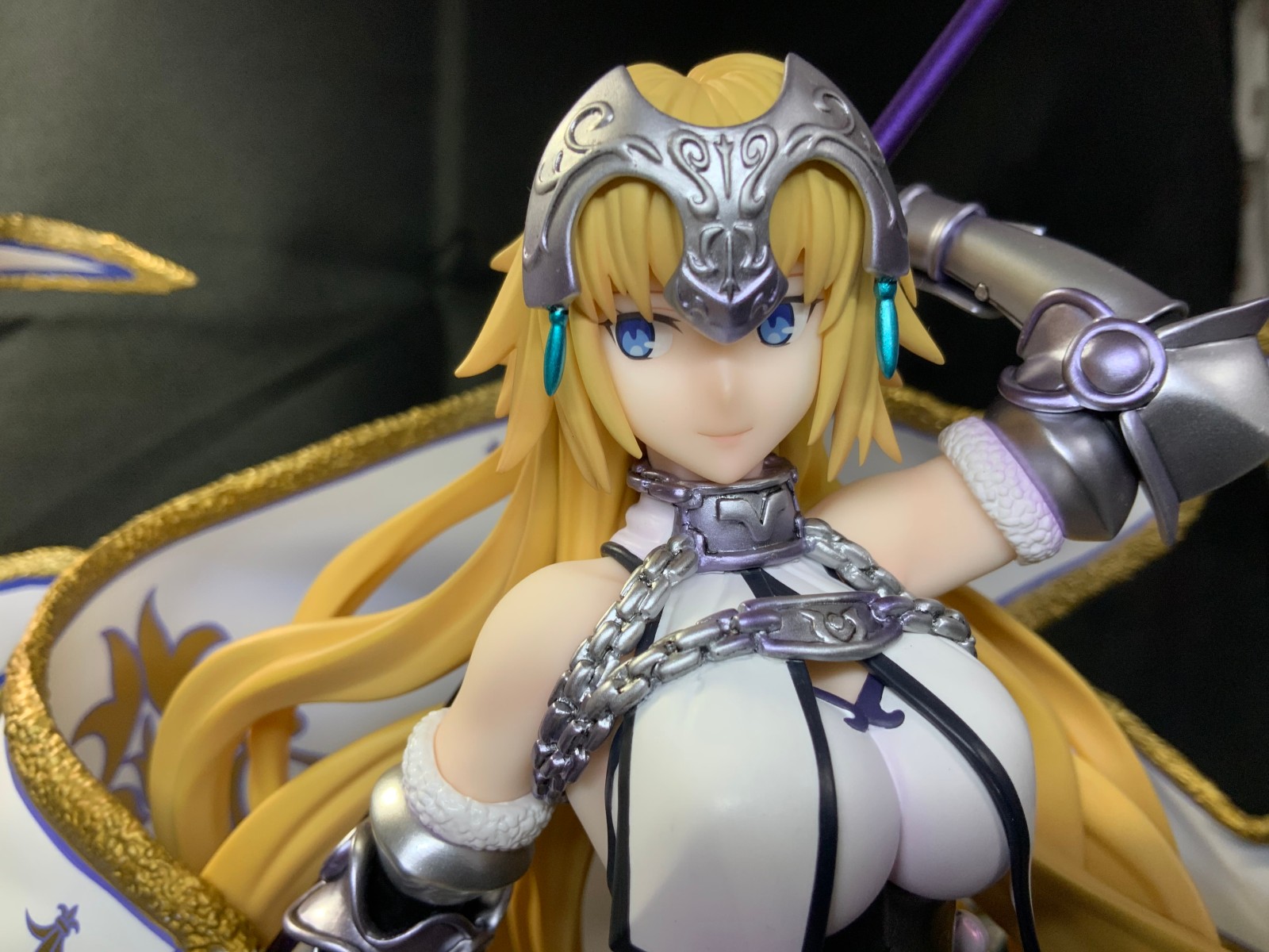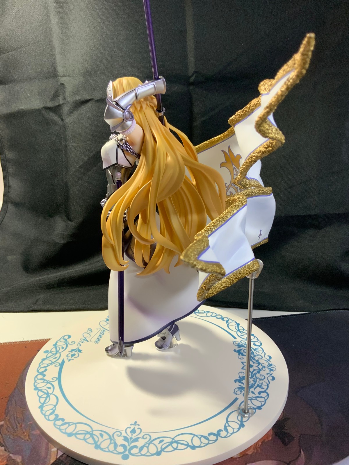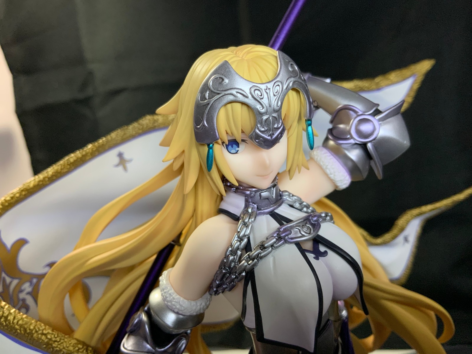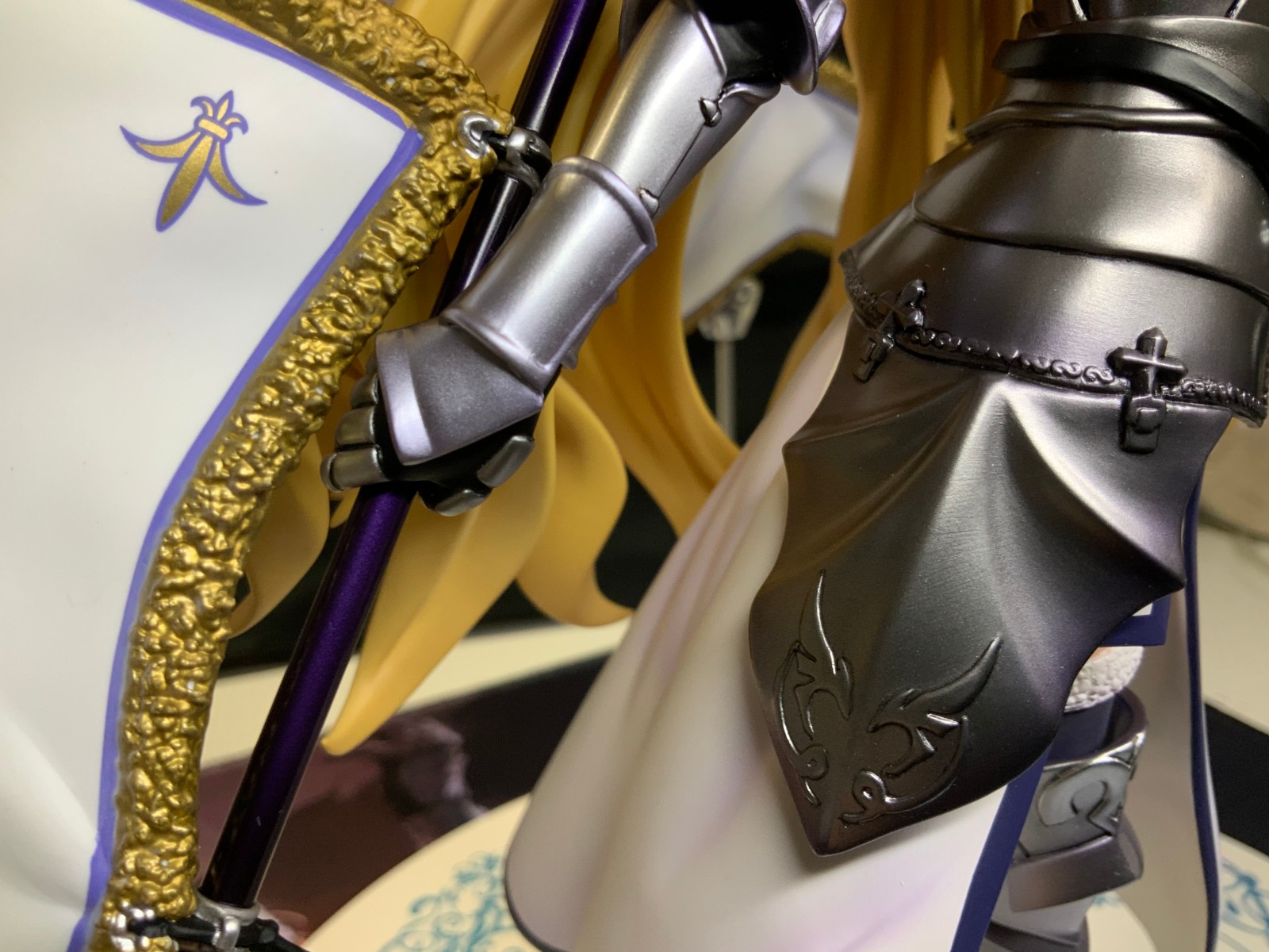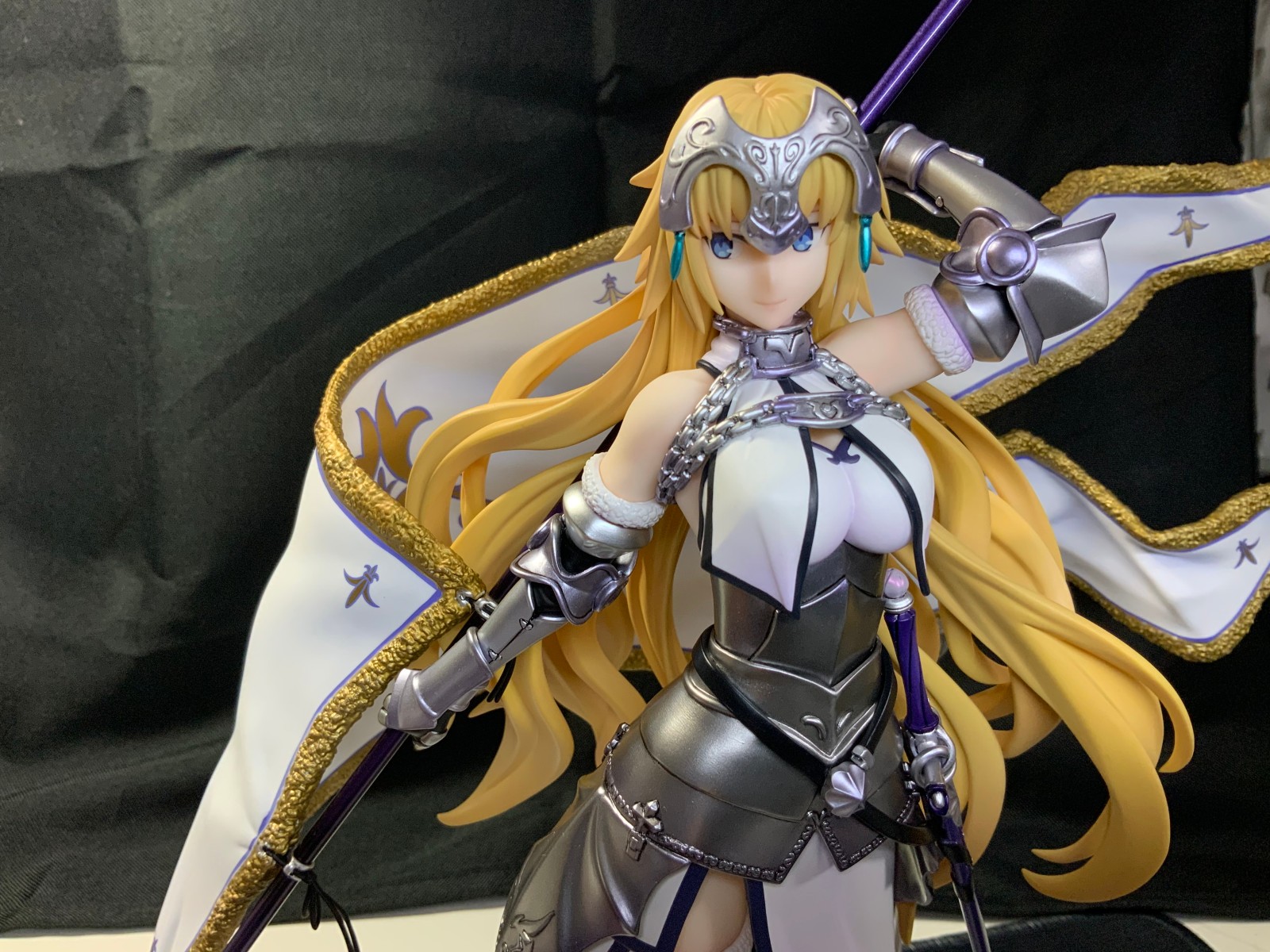 整体线条流畅,金色的长发如瀑布一般倾泻而下,能感受到贞德的头发那柔软的质感,也能看出设计者有在努力地藏头发的合模线。