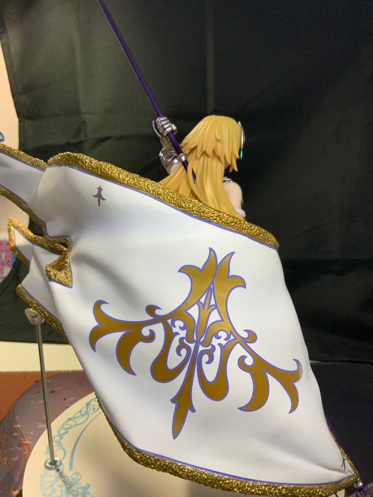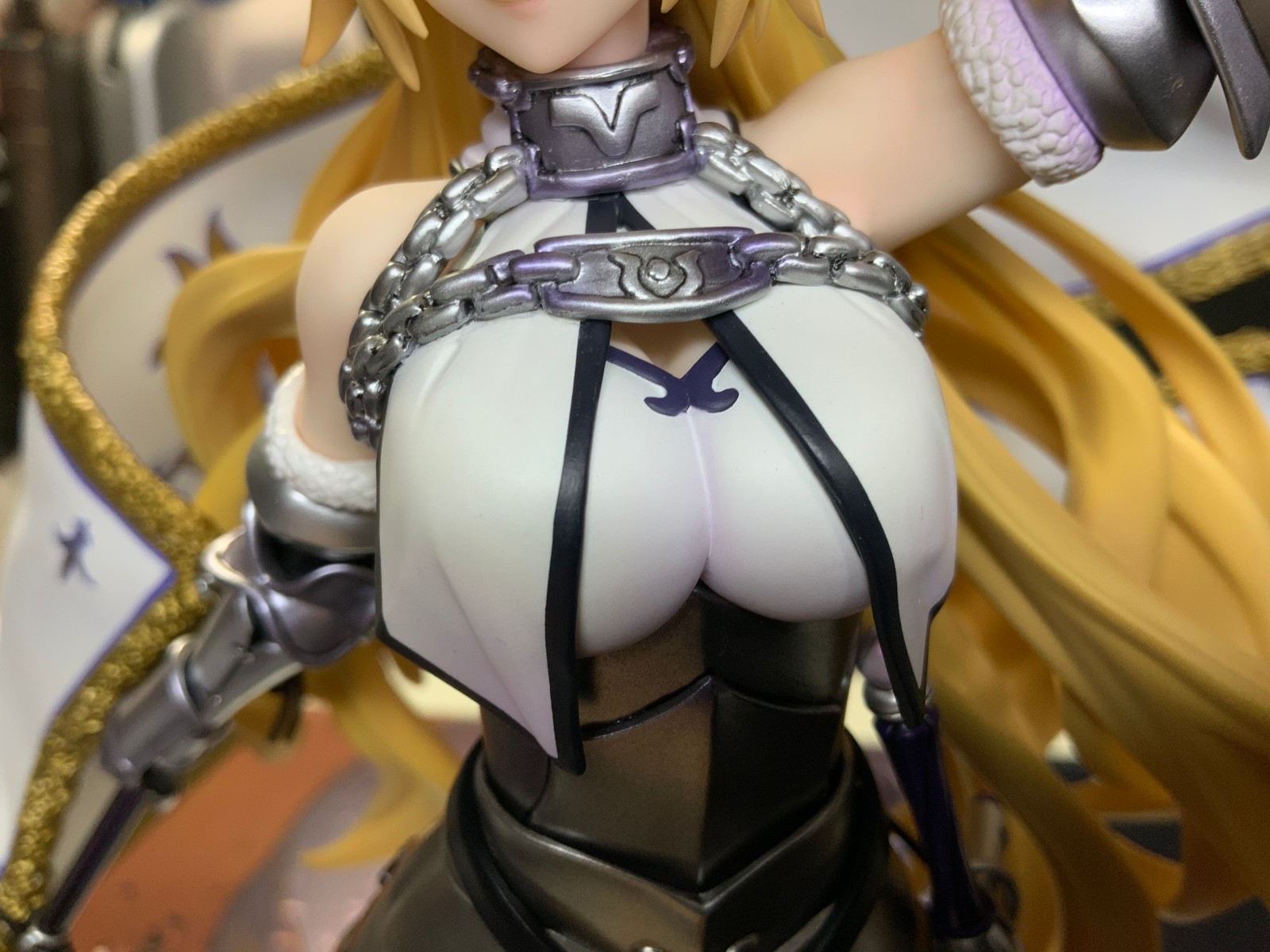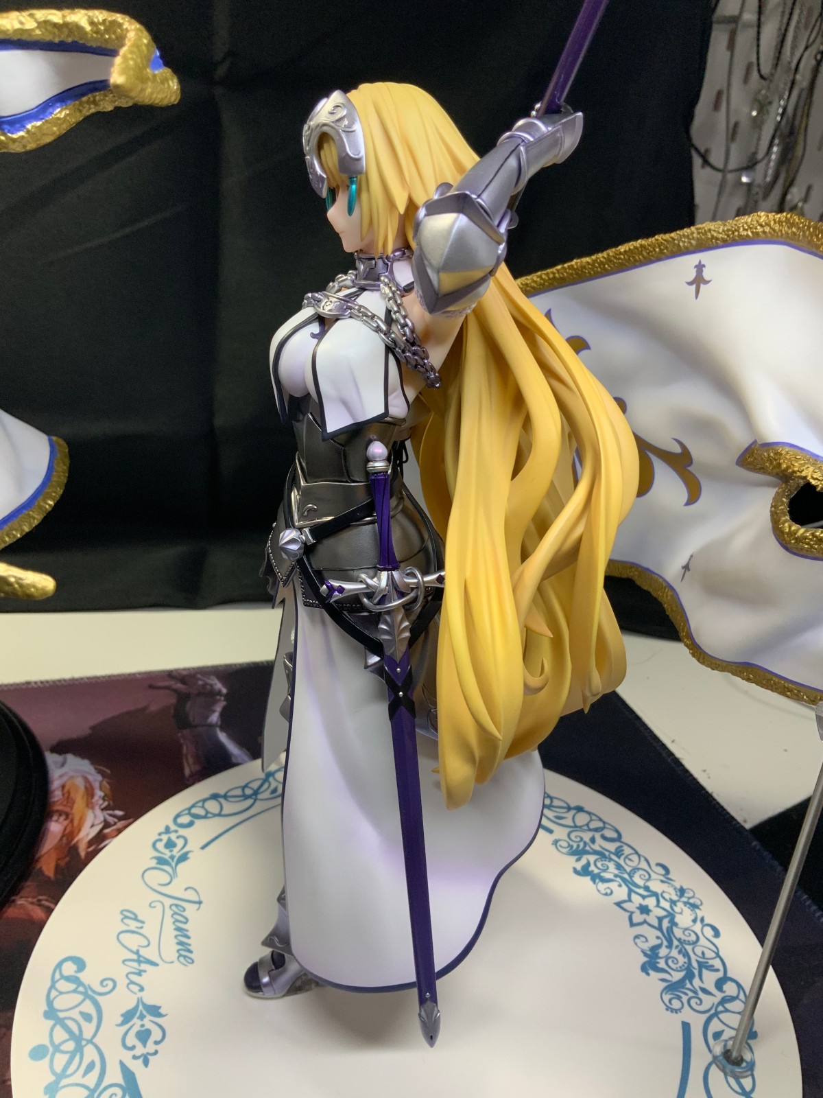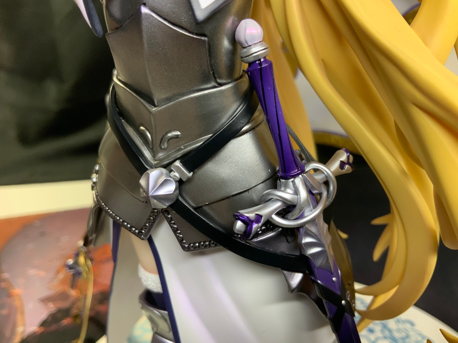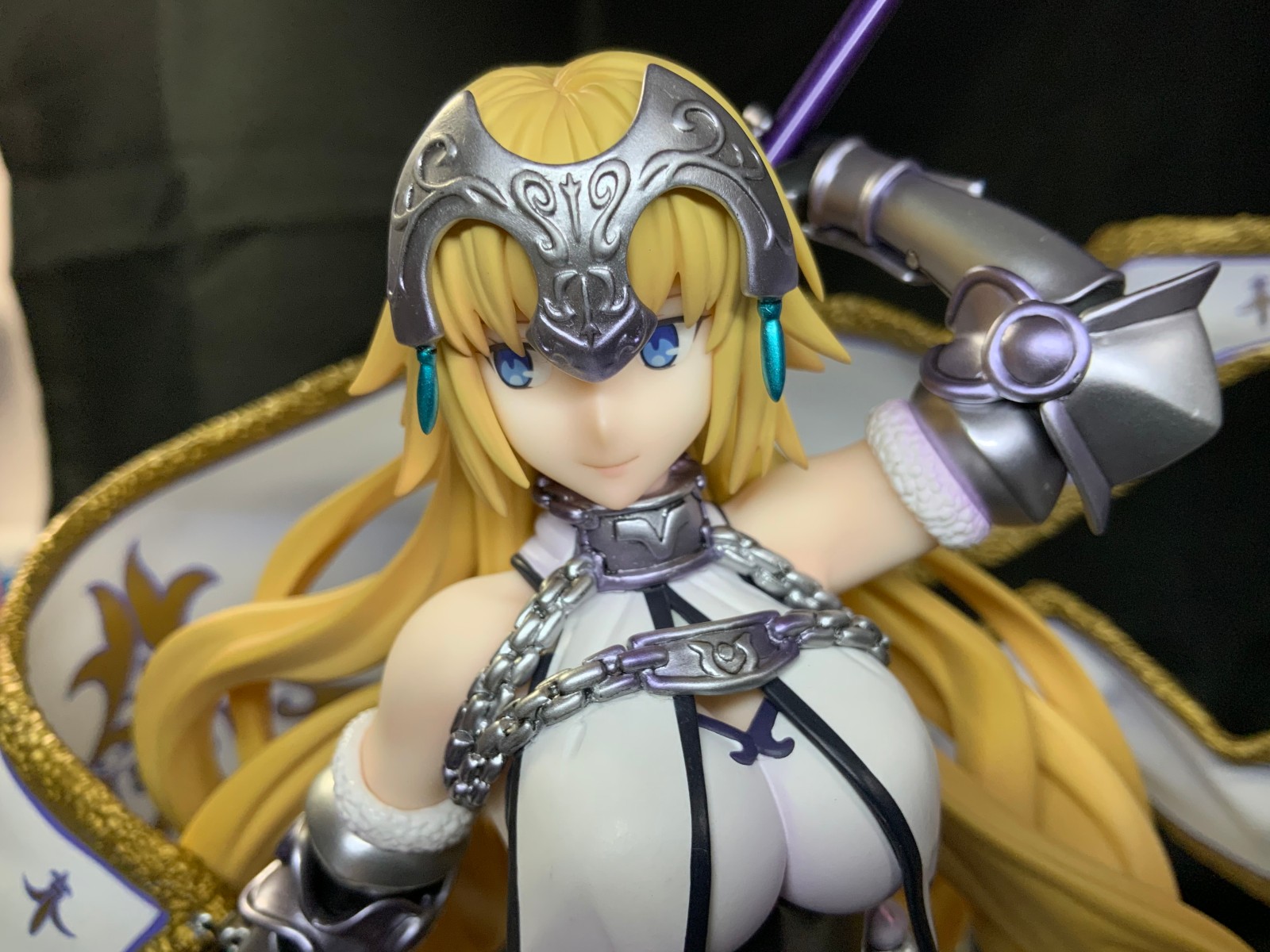 整体线条流畅,金色的长发如瀑布一般倾泻而下,能感受到贞德的头发那柔软的质感,也能看出设计者有在努力地藏头发的合模线。