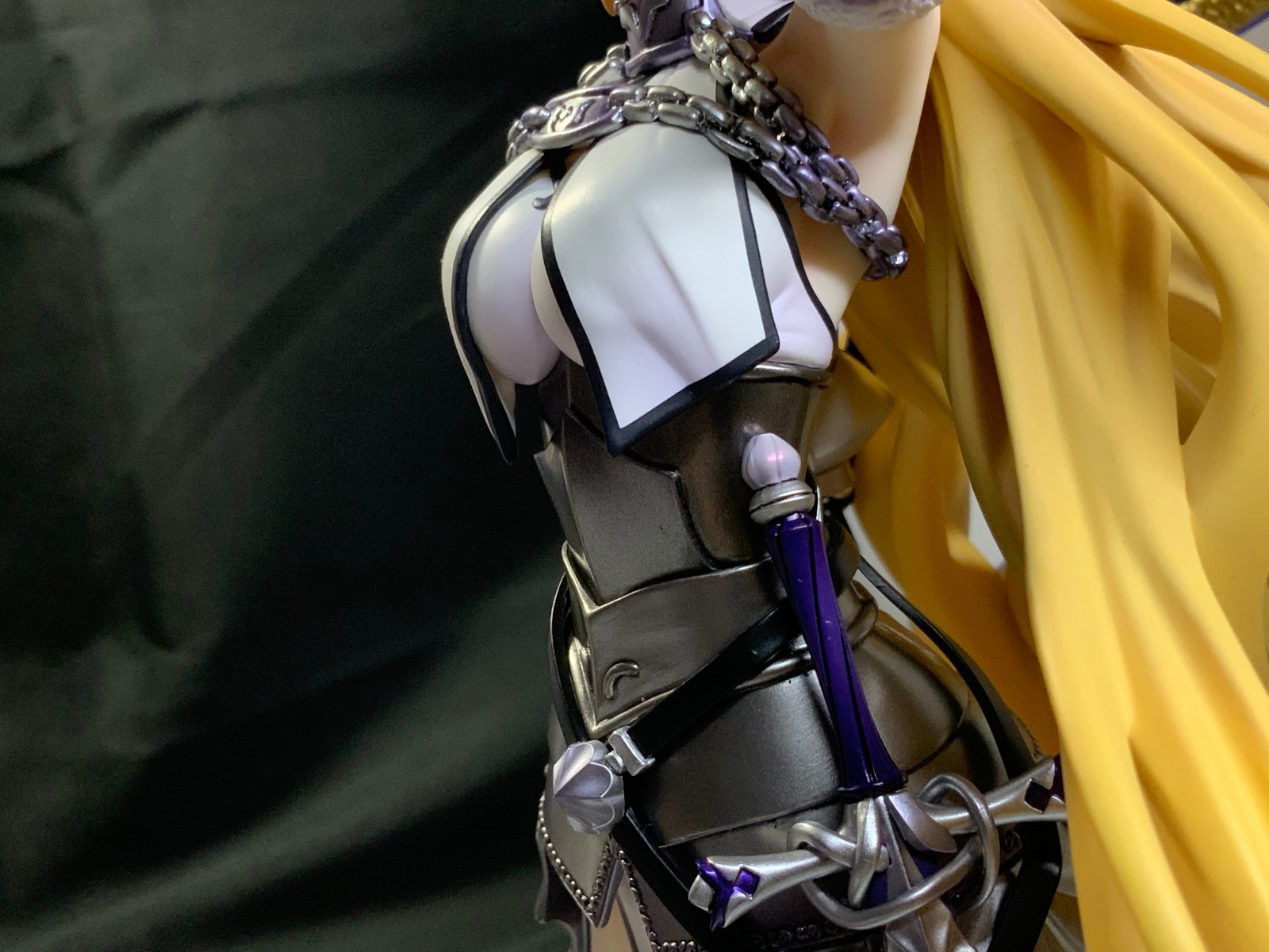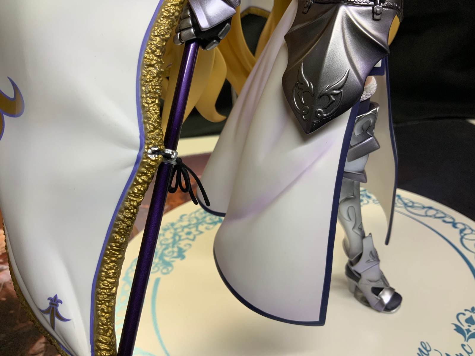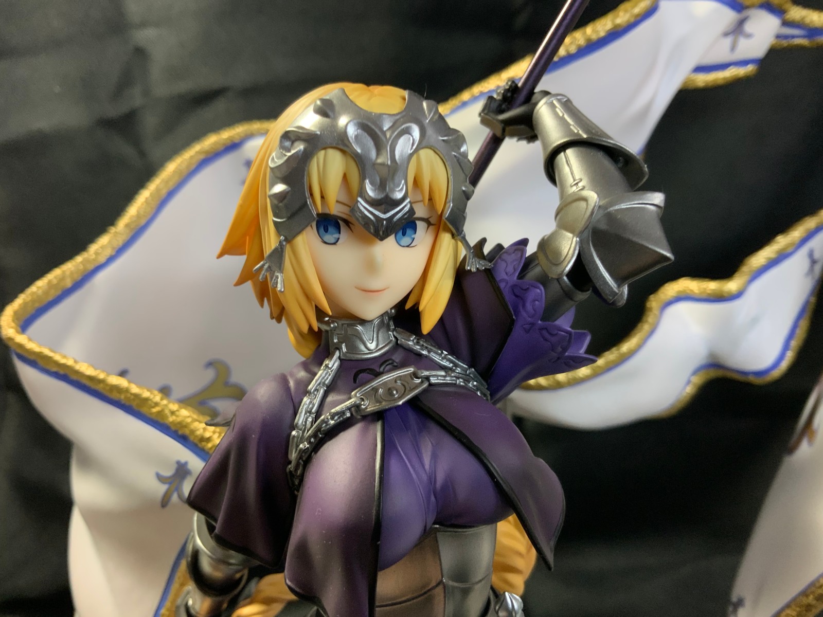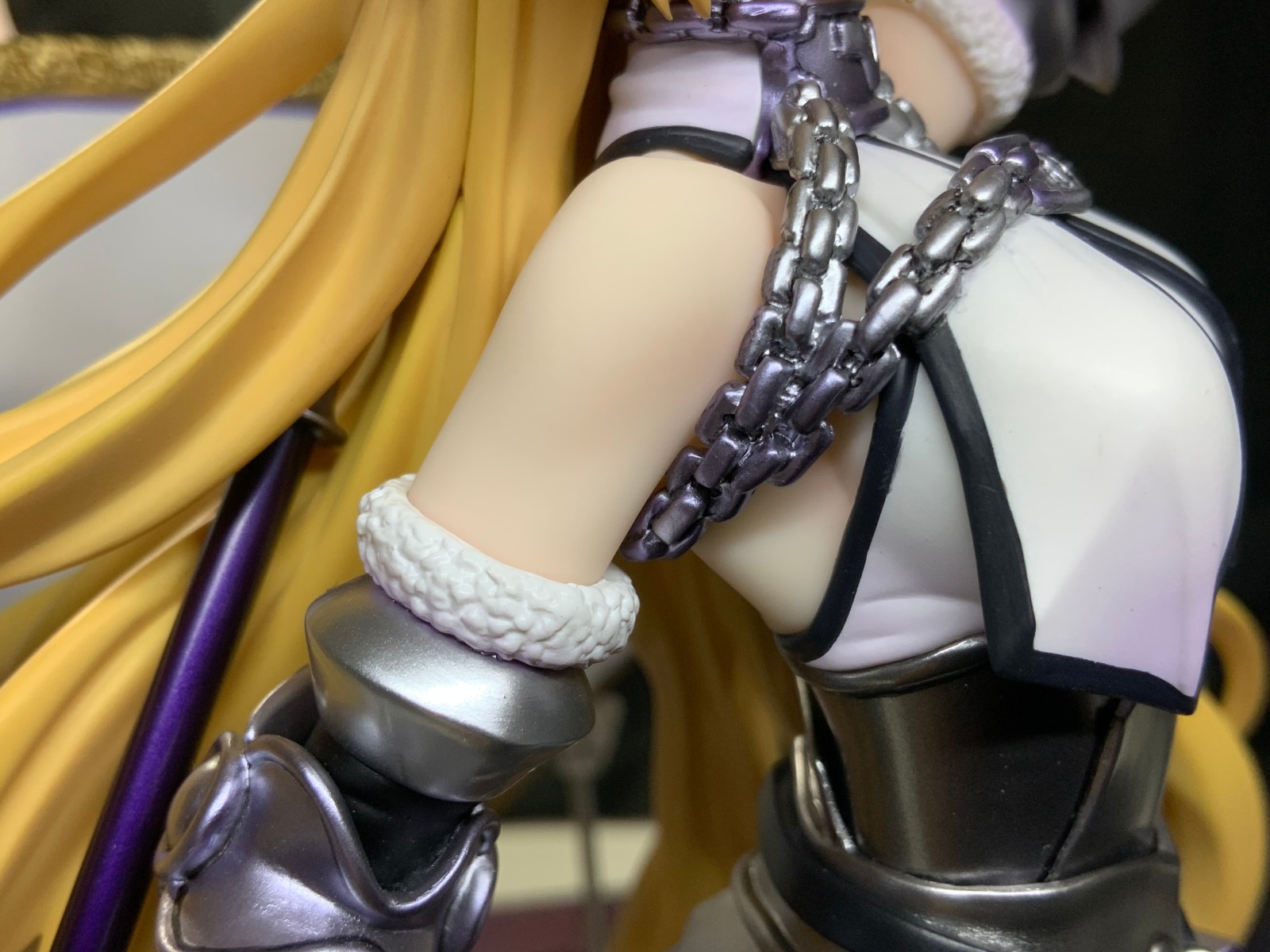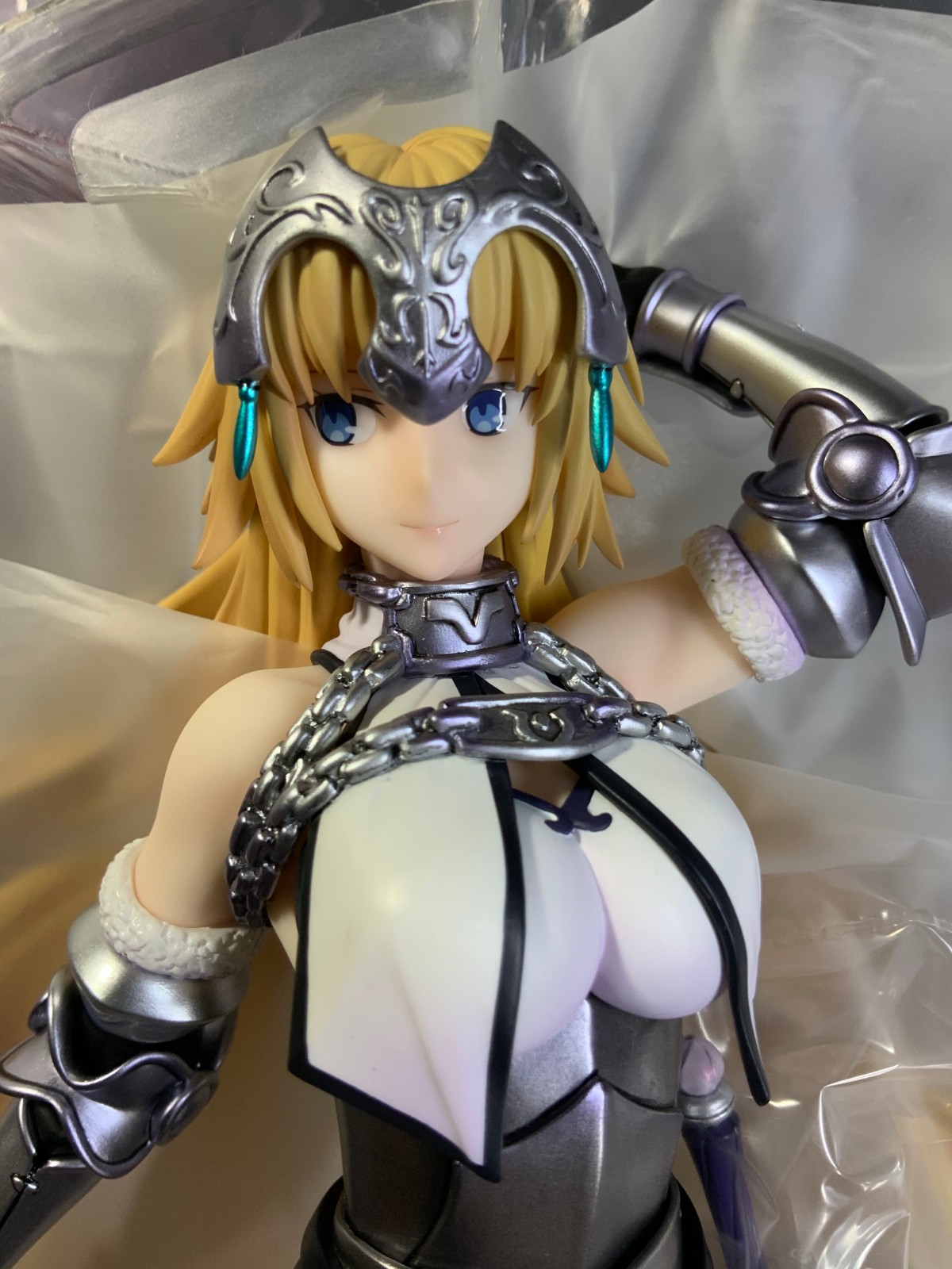 整体线条流畅,金色的长发如瀑布一般倾泻而下,能感受到贞德的头发那柔软的质感,也能看出设计者有在努力地藏头发的合模线。