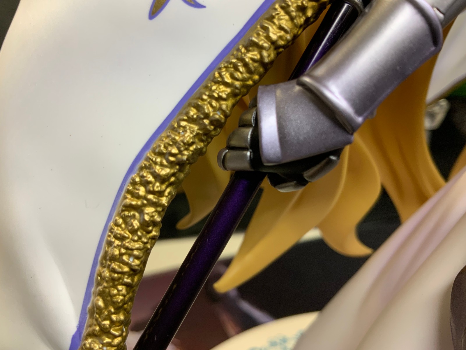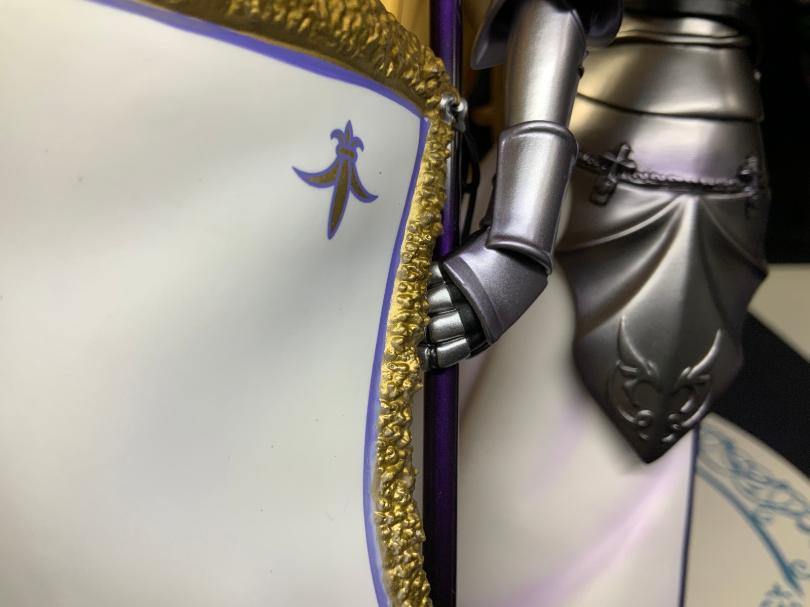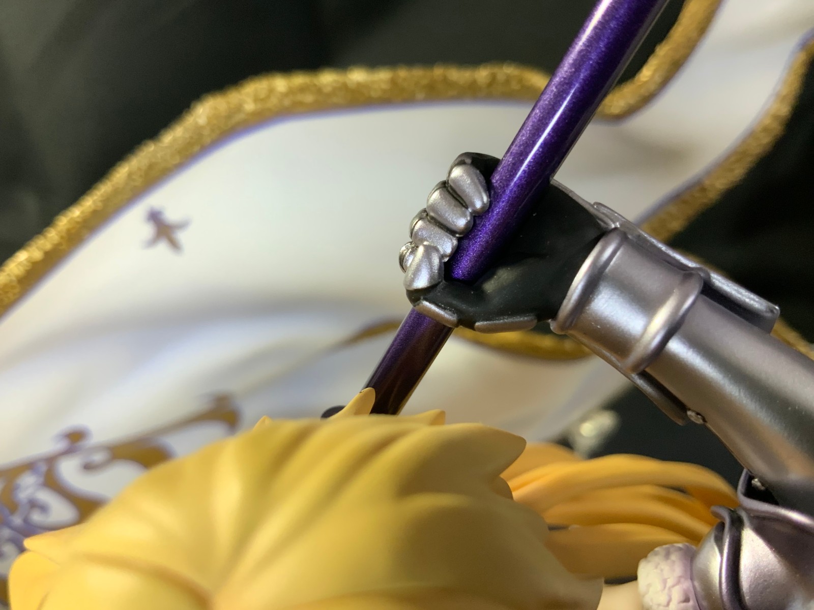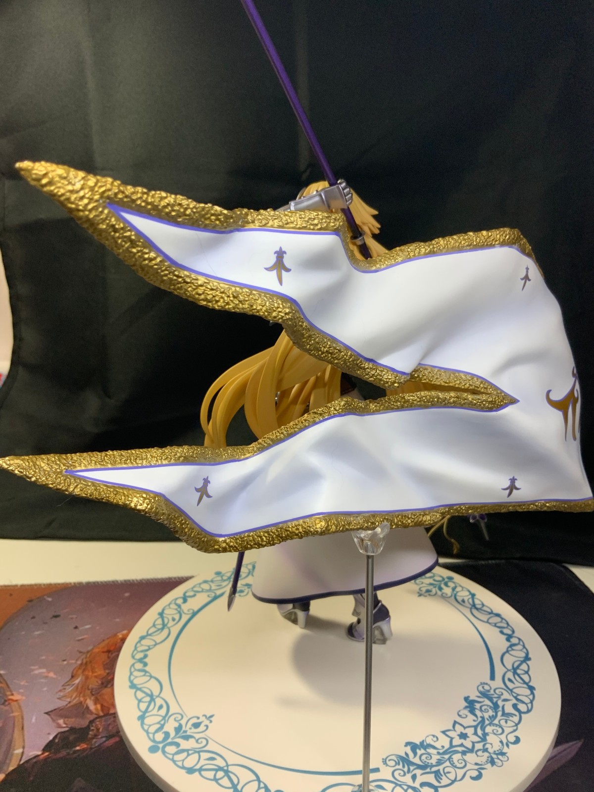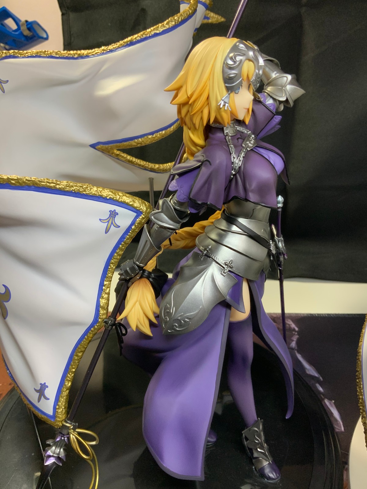 整体线条流畅,金色的长发如瀑布一般倾泻而下,能感受到贞德的头发那柔软的质感,也能看出设计者有在努力地藏头发的合模线。