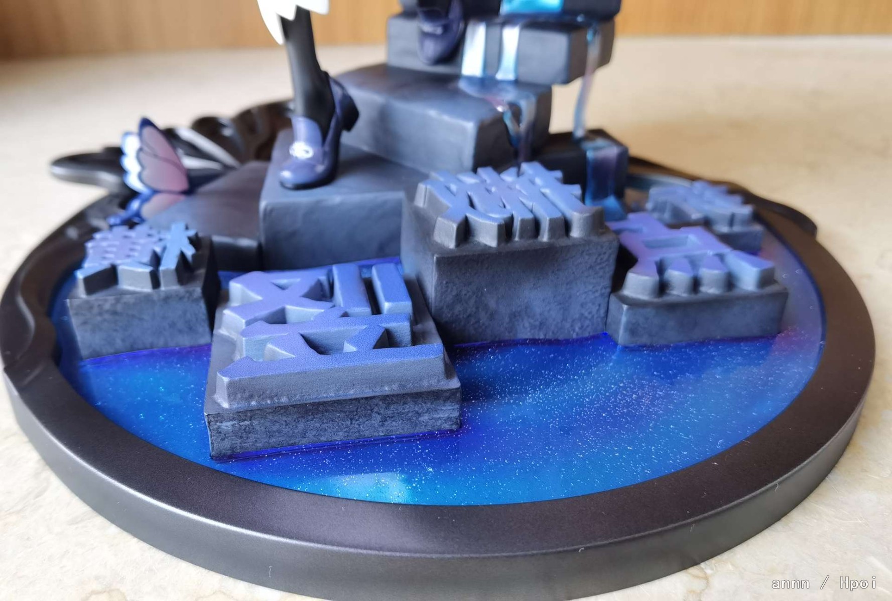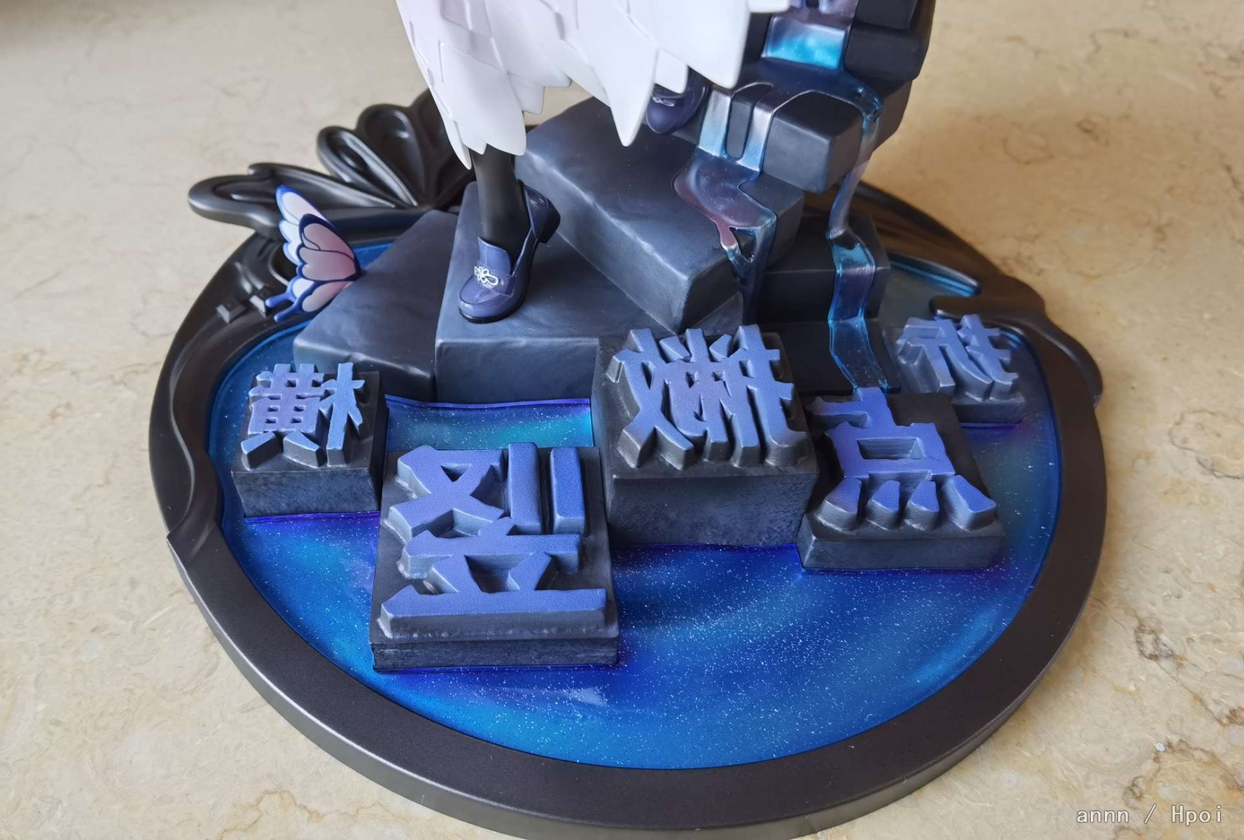 还行,脸有点角度限定,正面看怪怪的;底座有流沙的感觉很喜欢,指甲油是淡粉色的,黑丝看不太清胖次,手桩有点生草,赶着上班懒得p了