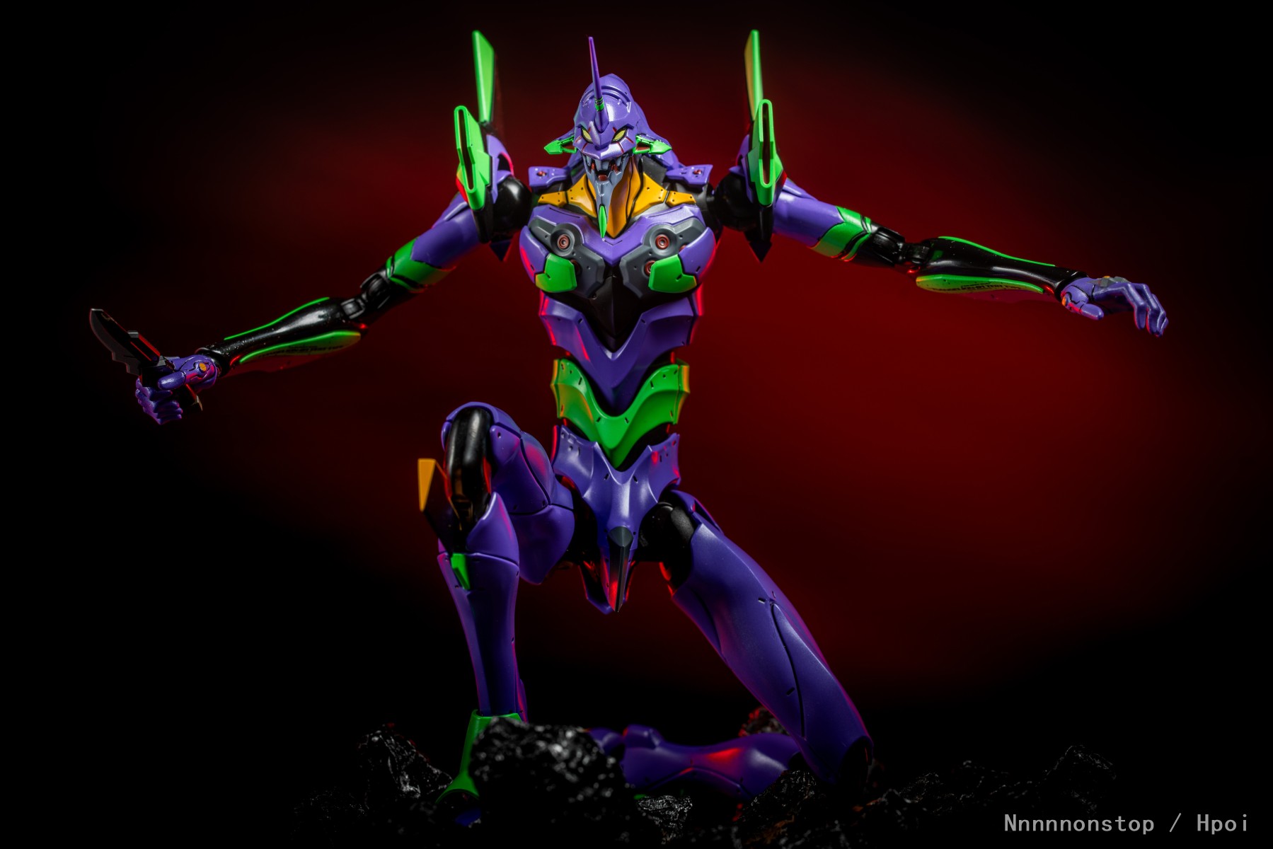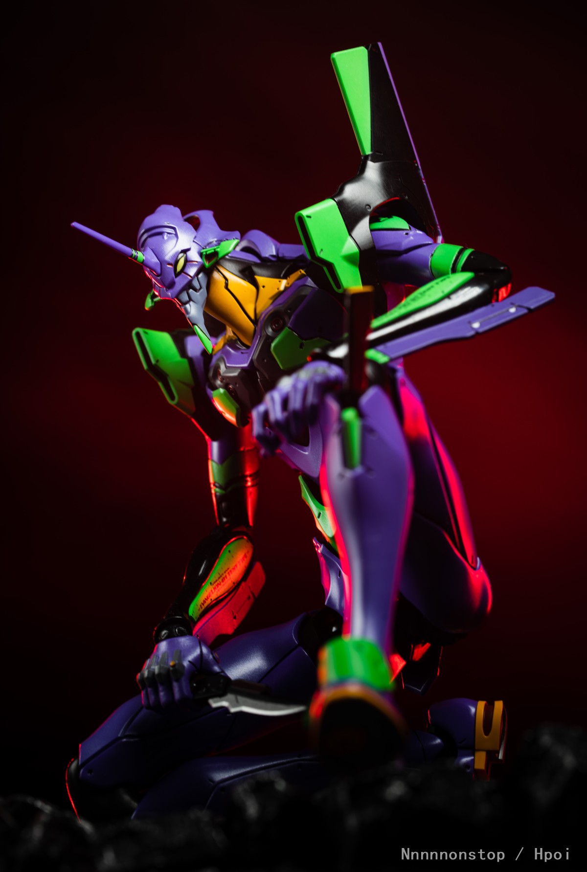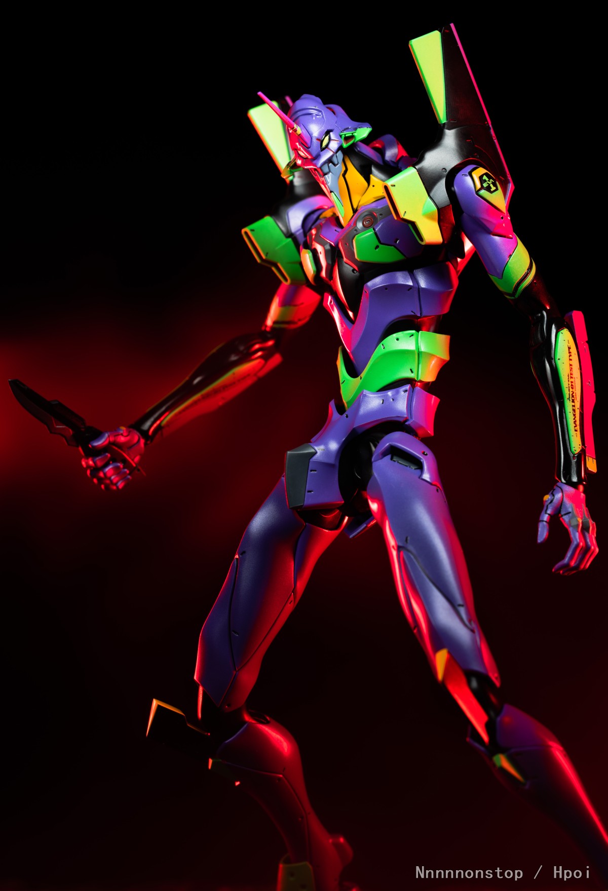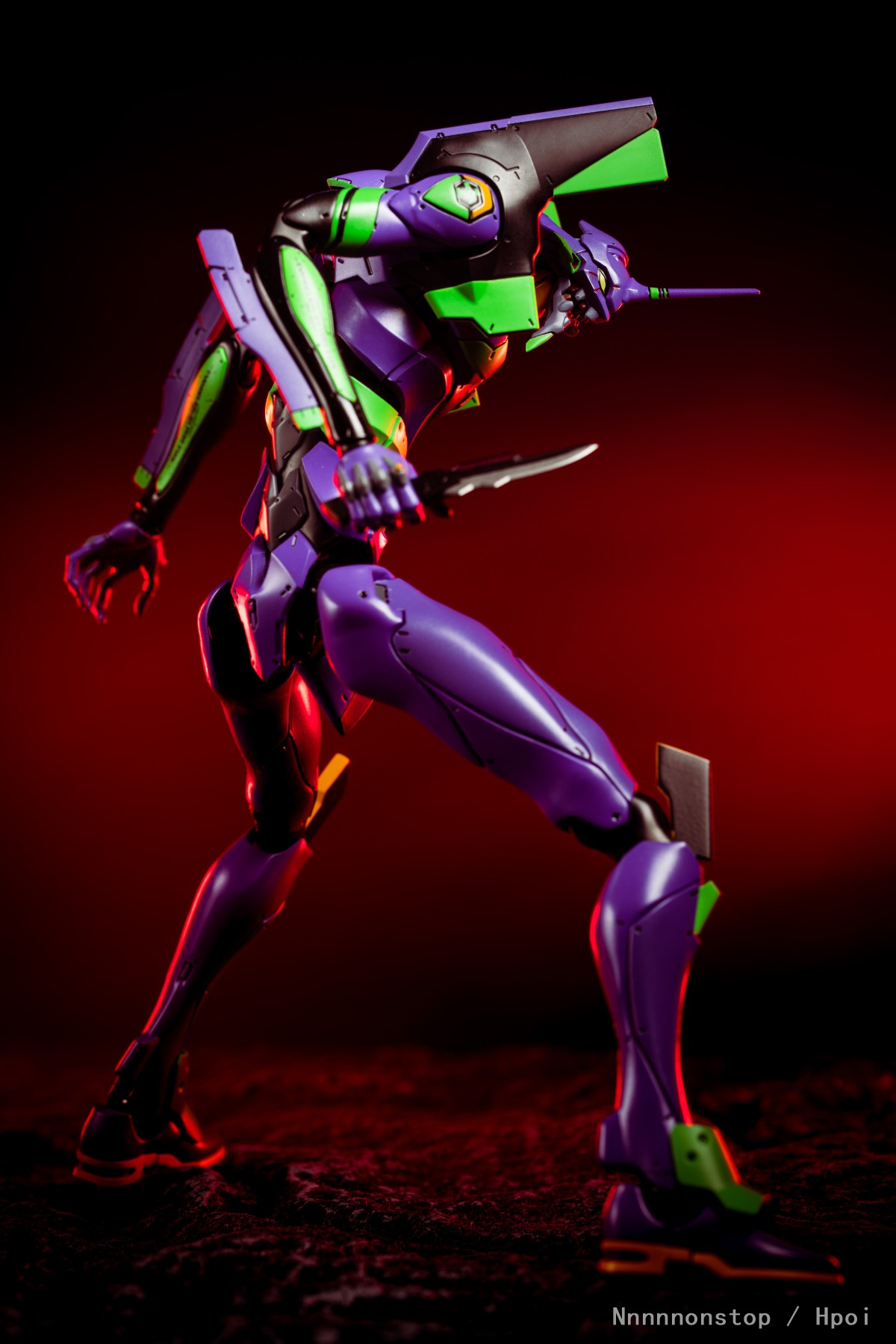 摸几张30的初号机和二号机,不太会摆造型凑合拍些。到手感觉真的是沉甸甸的很有分量,身型比例和可动也蛮不错的,有点难受的是感觉头、手臂还以大腿的侧转幅度不是很大有点局限,手臂摆弄摆弄就脱出了,二号机手臂上的替换件也蛮容易掉的,总体还不错掰起来还挺爽。