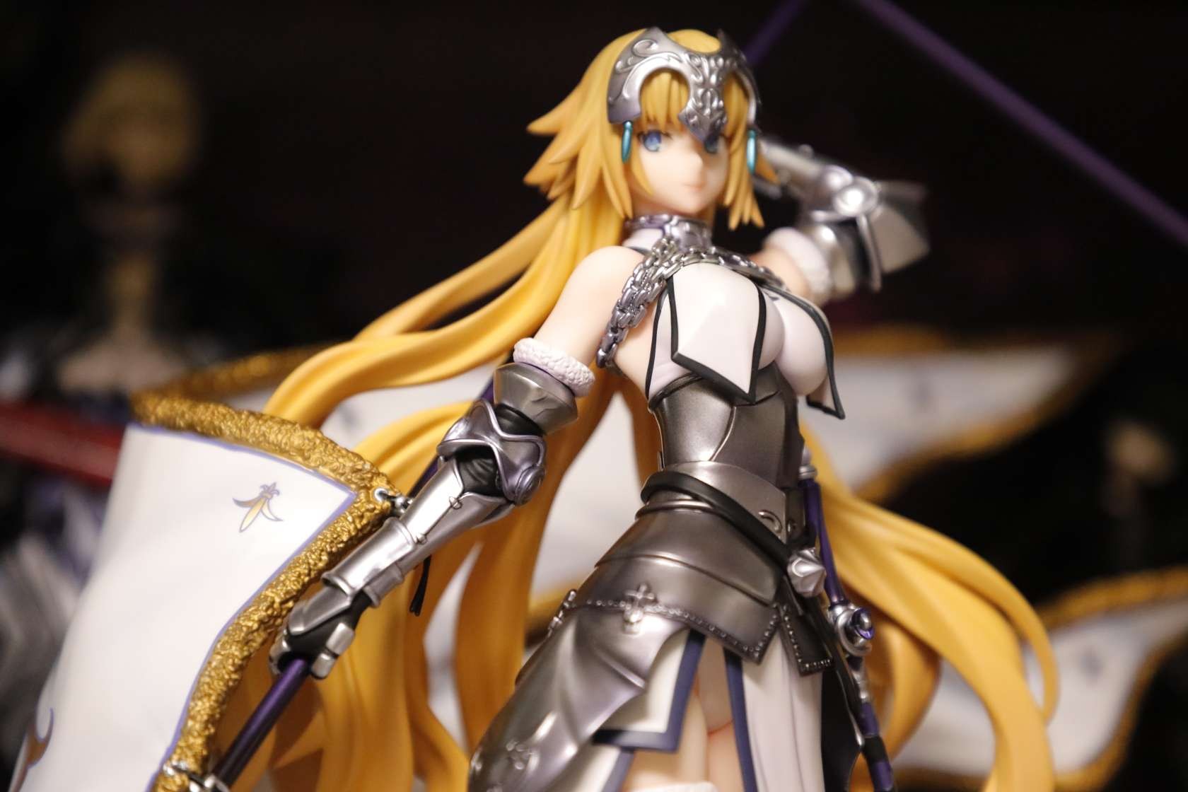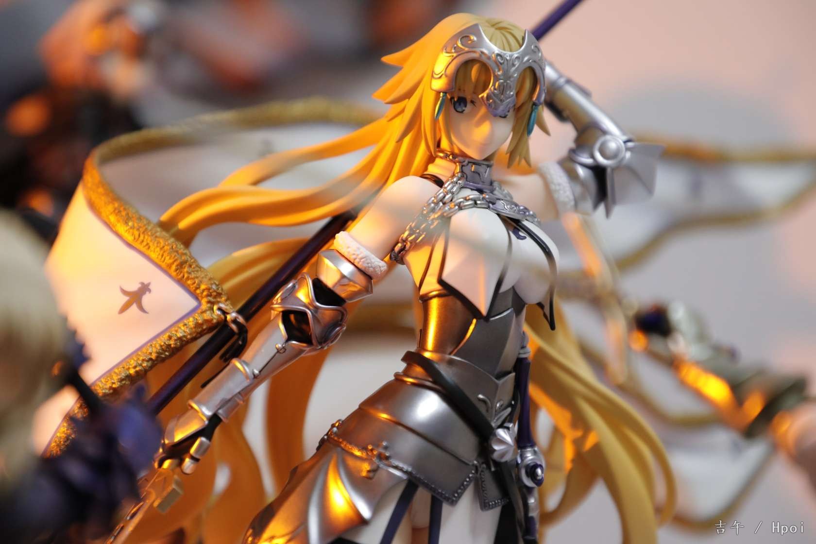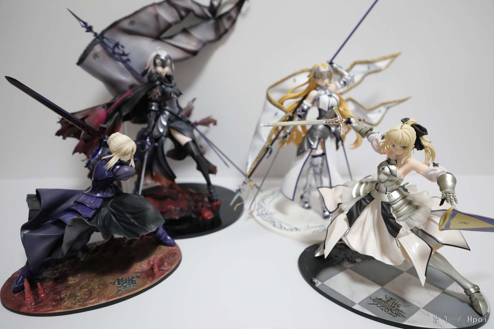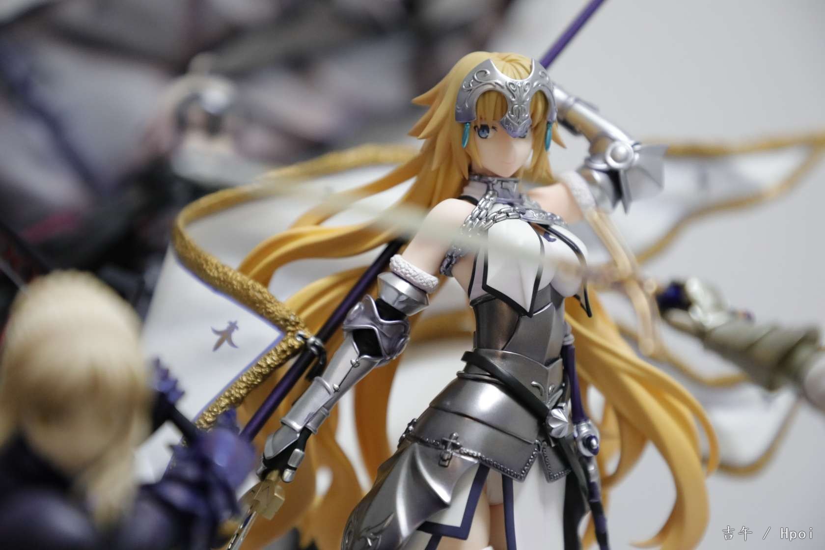 之前被快递给整废了,过了两周才换了个新的。。。整体来说很不错了,气势不如大a贞,但是圣洁的感觉蛮不错的,配色很干净,腿部铠甲很好看。对比角川贞德话整体还是白贞强,造型更厚重一些,细节更多,铠甲配色都很好看。不过脸确实差一点,没那么灵气,前额头发太厚,很挡光导致面相一般,铠甲外的衣服部分也简单了一点,旗杆很长整体跟紫色之心差不多高。。(柜子噩梦)总得来说还算满意,白贞毕竟不多贞厨还是推荐入手。另外这四只还挺搭就一起水了,有空再好好拍~