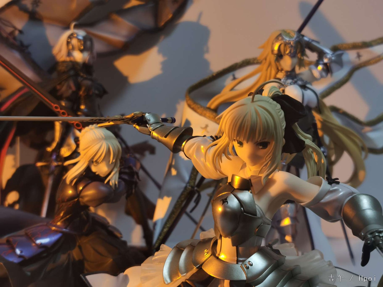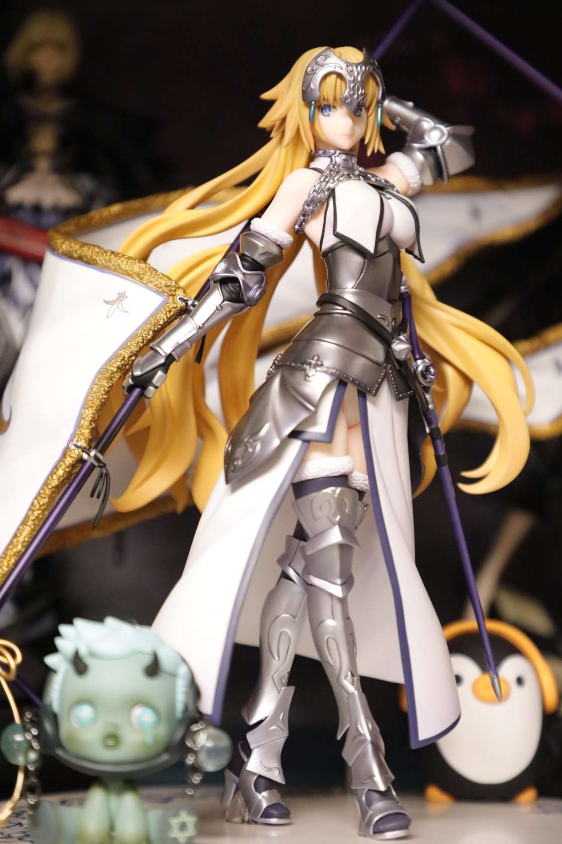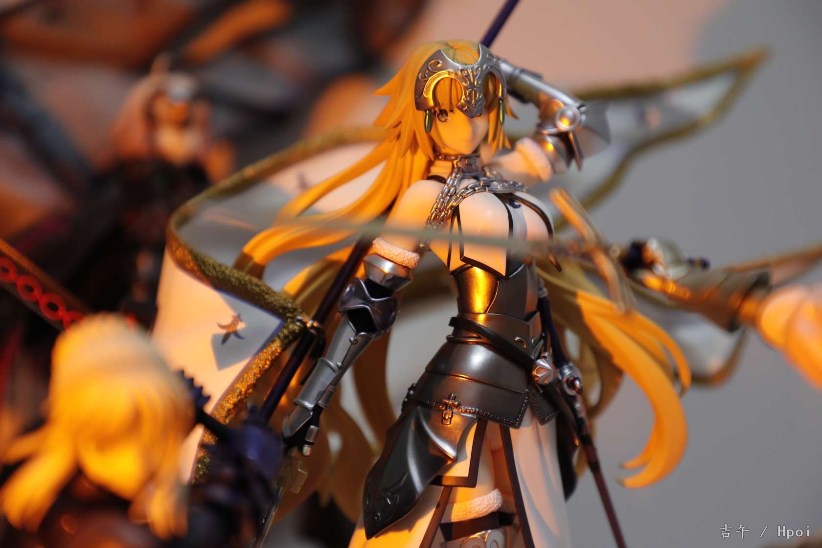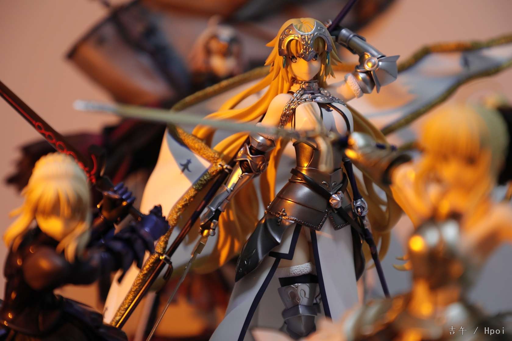 之前被快递给整废了,过了两周才换了个新的。。。整体来说很不错了,气势不如大a贞,但是圣洁的感觉蛮不错的,配色很干净,腿部铠甲很好看。对比角川贞德话整体还是白贞强,造型更厚重一些,细节更多,铠甲配色都很好看。不过脸确实差一点,没那么灵气,前额头发太厚,很挡光导致面相一般,铠甲外的衣服部分也简单了一点,旗杆很长整体跟紫色之心差不多高。。(柜子噩梦)总得来说还算满意,白贞毕竟不多贞厨还是推荐入手。另外这四只还挺搭就一起水了,有空再好好拍~