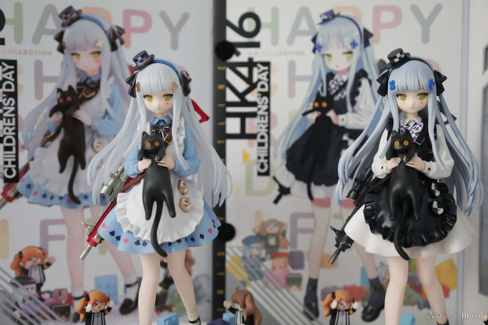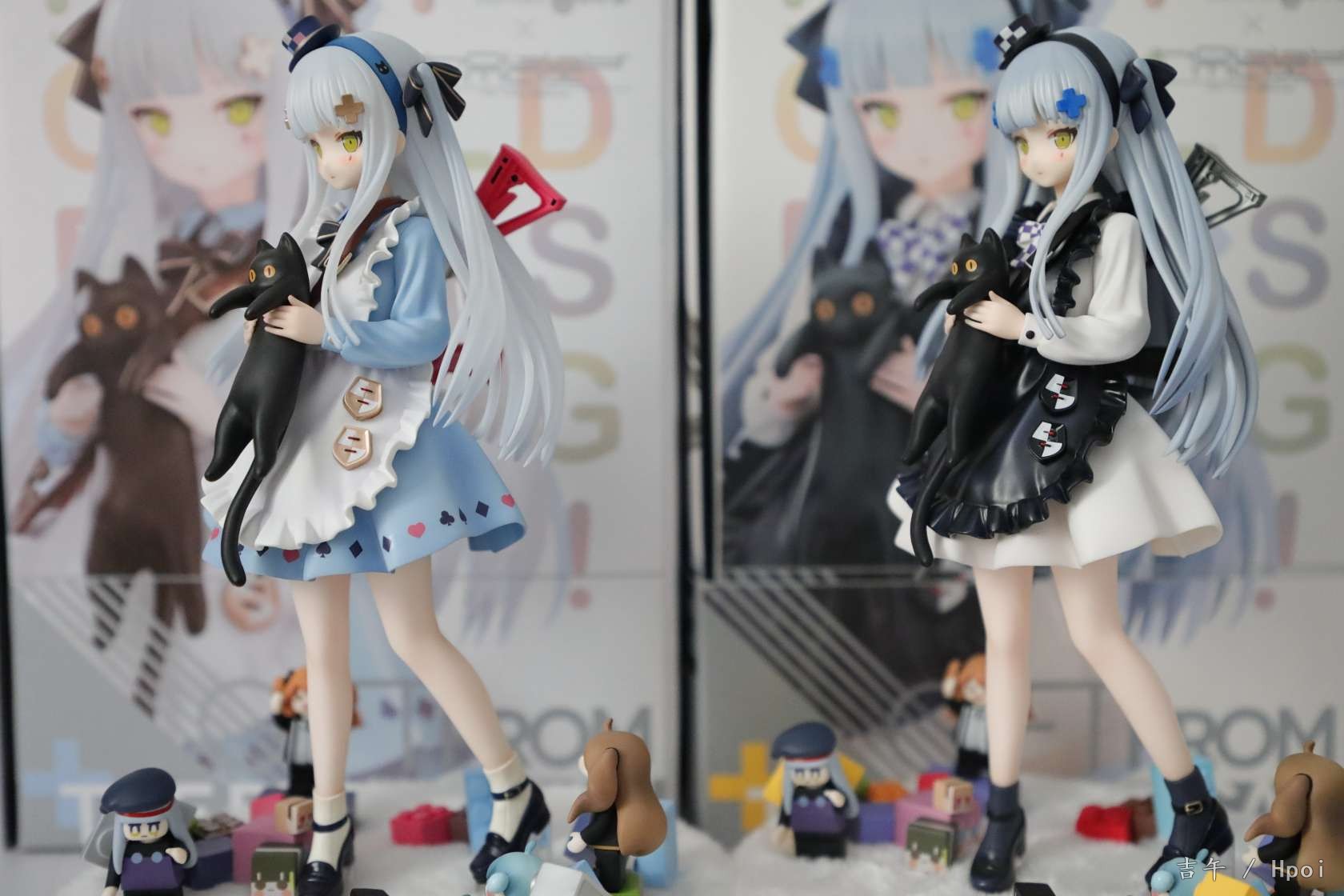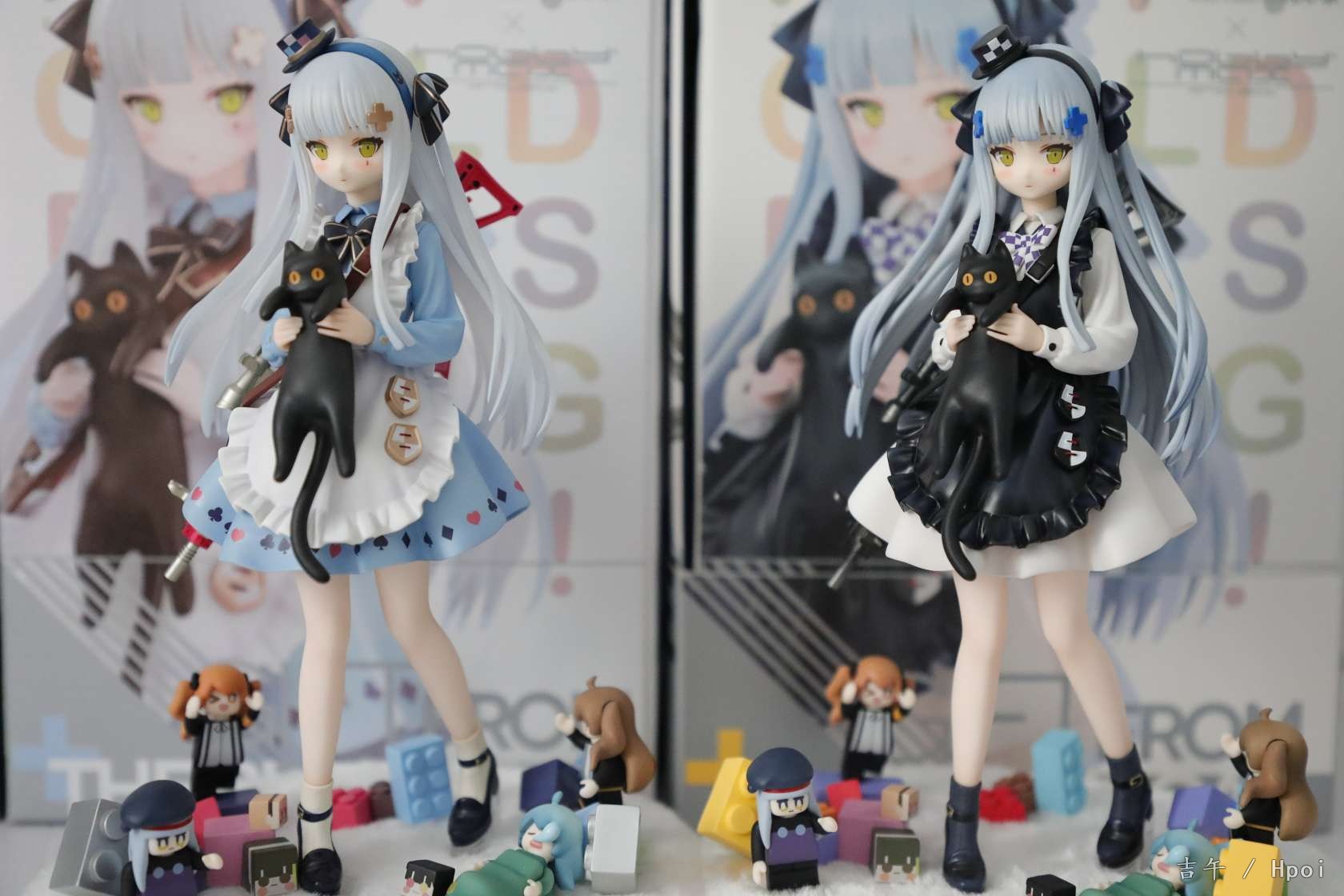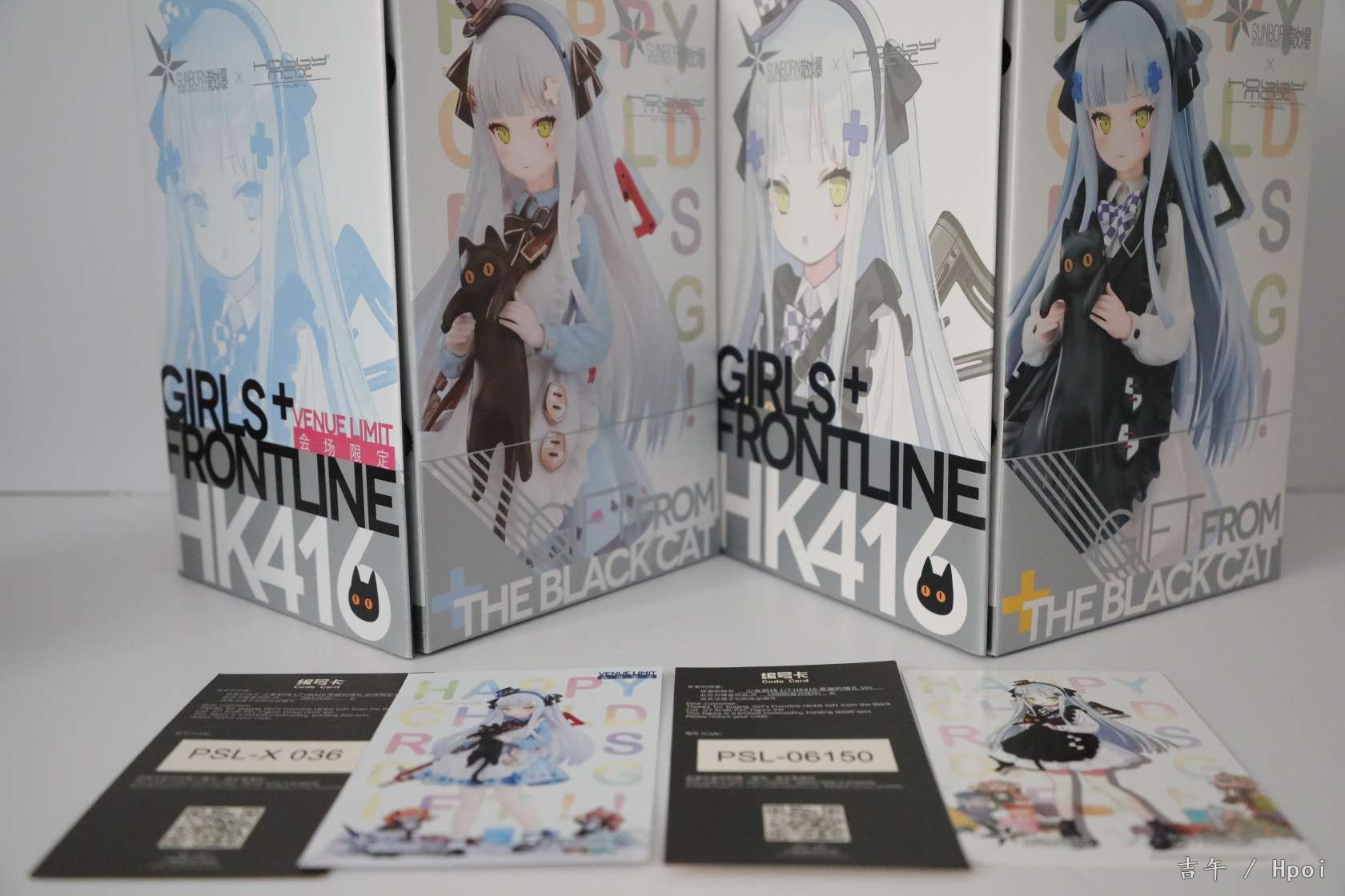 黑猫原色今天到货啦,两个盒子设计都很好看,翻盖的设计很赞~盒子图案细节不太一样。黑白都给了限定编号卡,白的200个黑的说是15000个。仔细对比的话异色的细节和配色还是更胜一筹,包括头顶帽子和头饰的涂装,还有裙子的花边和枪等等,非常精致~两只底座也不太一样,包括积木的位置和颜色等等。送的徽章很可爱,家具兑换卡可以当明信片摆出来哈哈。总的来说诚意满满吧,两个版本都让人很喜欢,摆一起很好看做工也没有明显瑕疵。一对差不多1300的价位来说相当满意了~