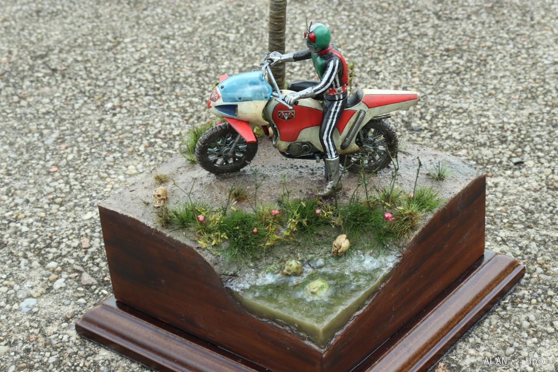 五月份忙里偷闲做的一个万代机械收藏的假面骑士1号和新旋风号的小场景。用苯板和薄木片做了个小地台,看着书做了地形和植被,骑士本身也经过稍微旧化。总体来说还是比较好看的,希望大家喜欢~在相册里也附上了大量的过程图供有兴趣的朋友参考~