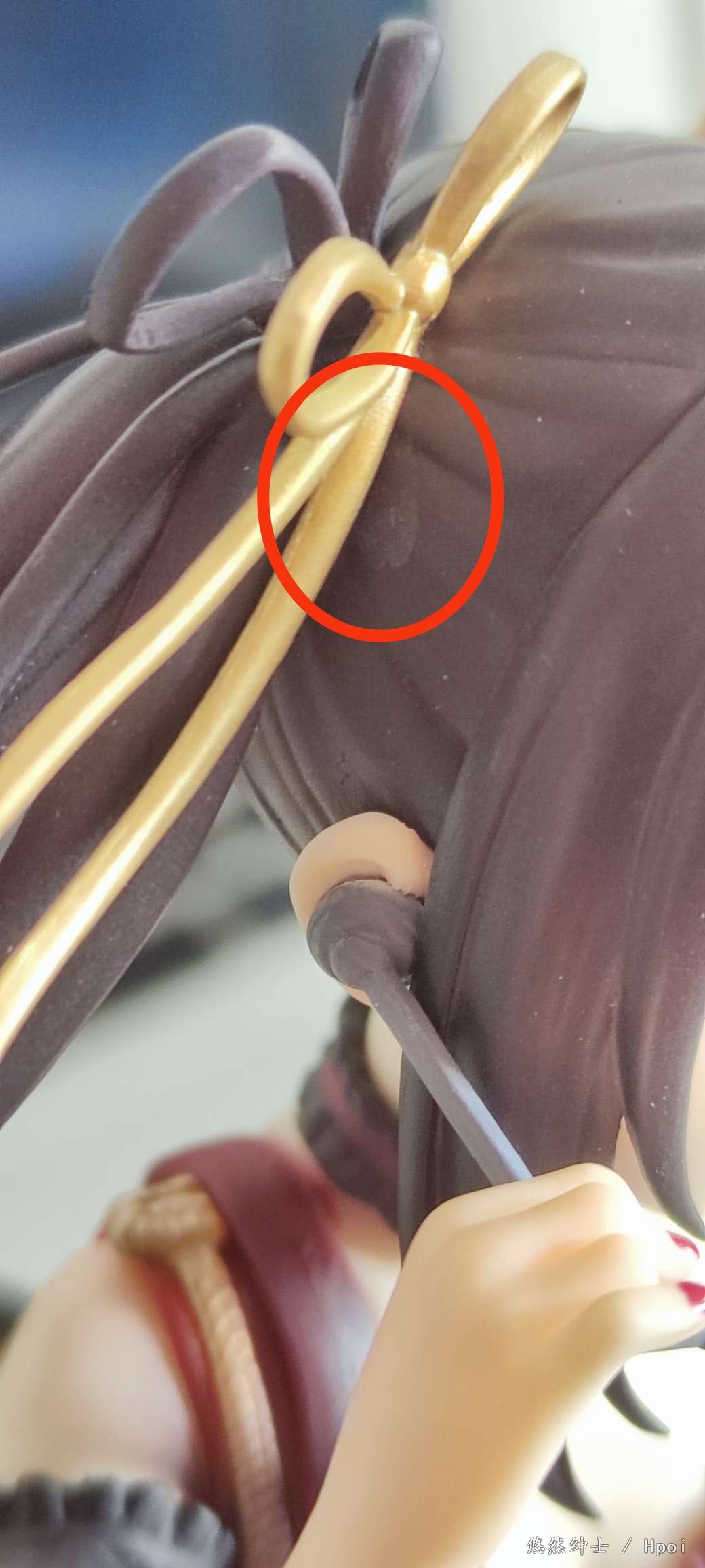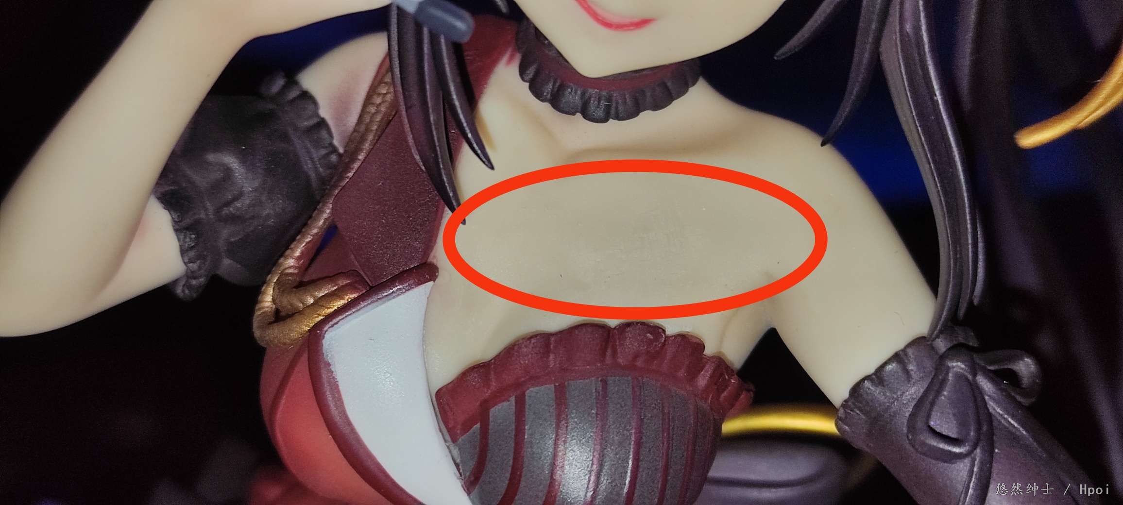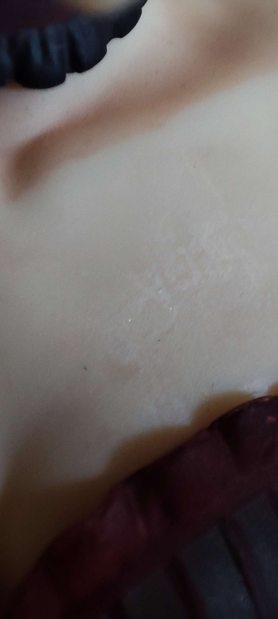 胸部瑕疵微距相机图,在光线下肉眼可以观察到胶水痕迹。