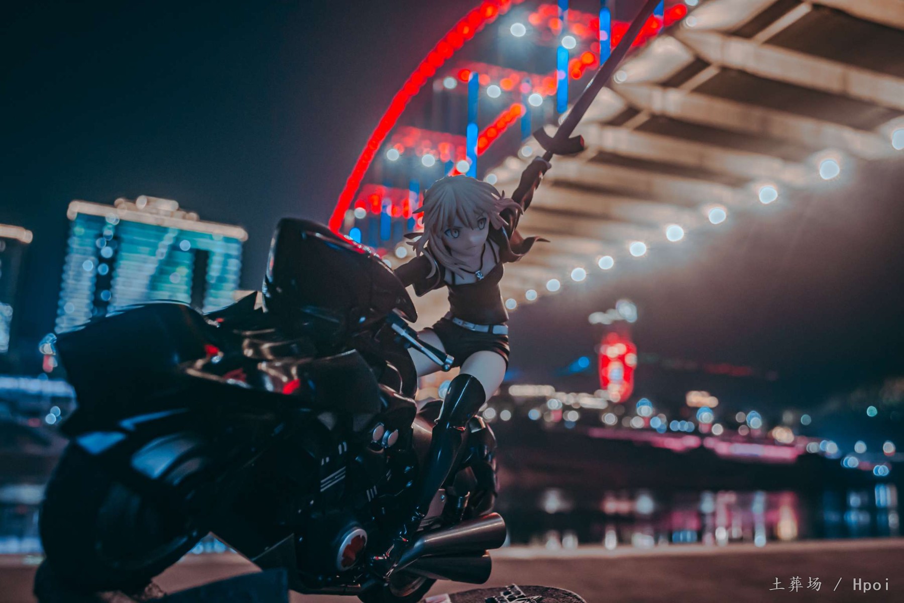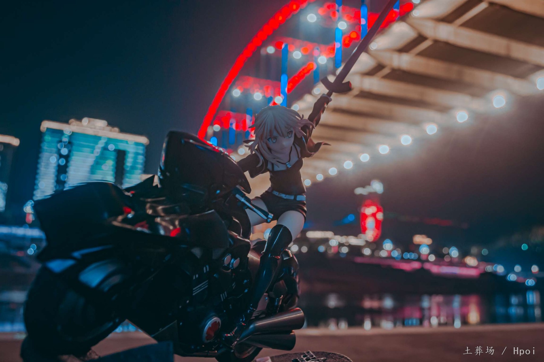 拍这张主要想体现Fate里边在冬木大桥时对决的场景,虽然特异点在新宿,在FGO第一章节里也有黑SABER虽然早早得赢得圣杯具体怎么赢的没有过多说明,但战斗场景可以自行脑补