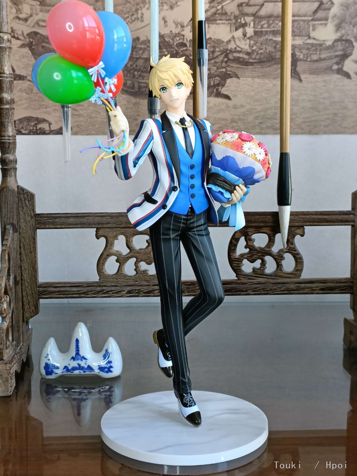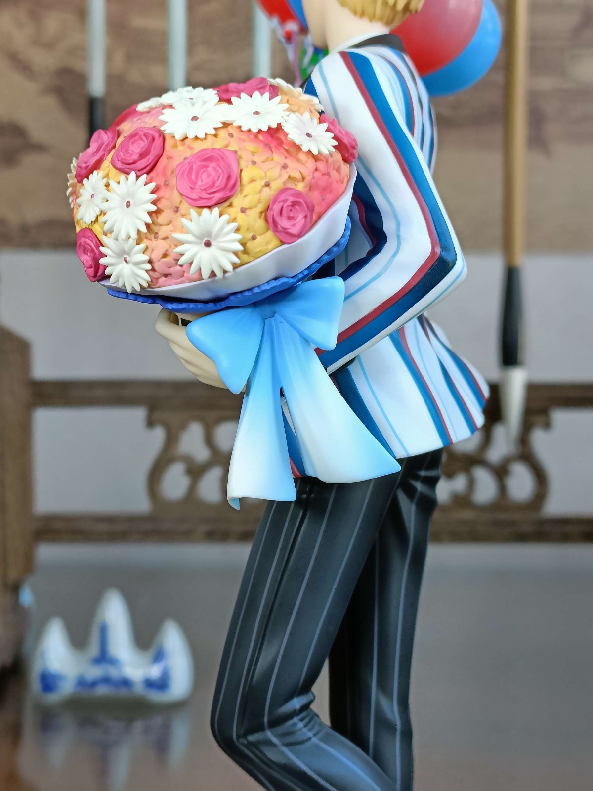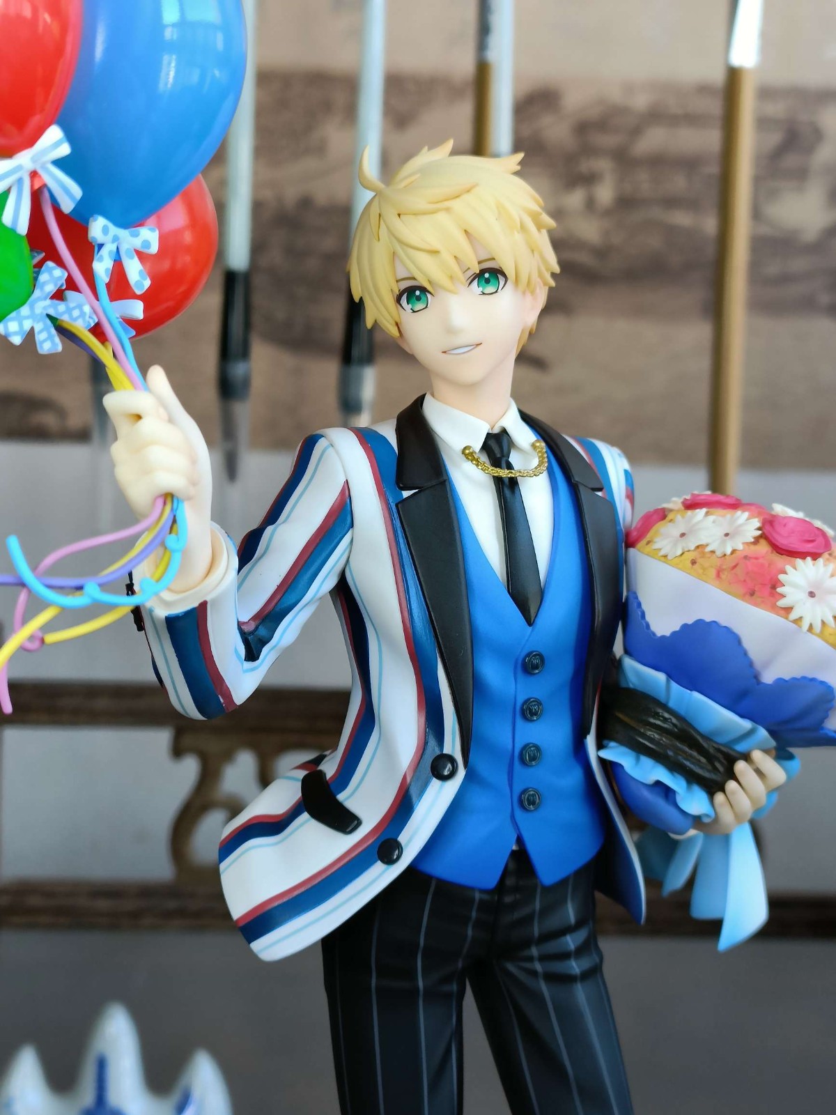 or旧剑,其实除了手掌和气球的线还有衣服上的条纹有些小毛病以外其他地方做的挺好的尤其是脸很还原官图,裤子捧花的阴影色也到位鞋子涂的也挺漂亮除了前面两个问题和or以前的作品比进步挺大了。