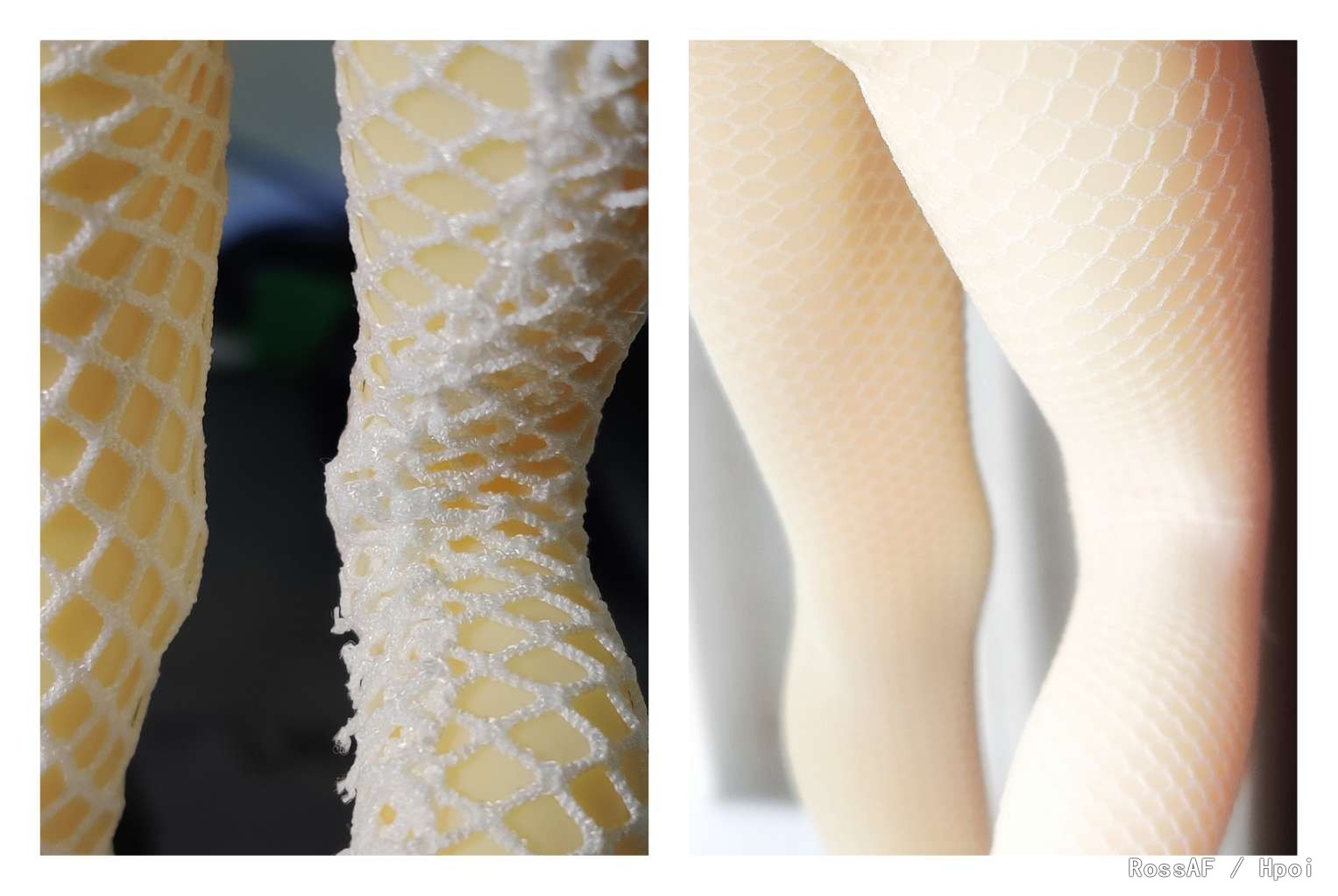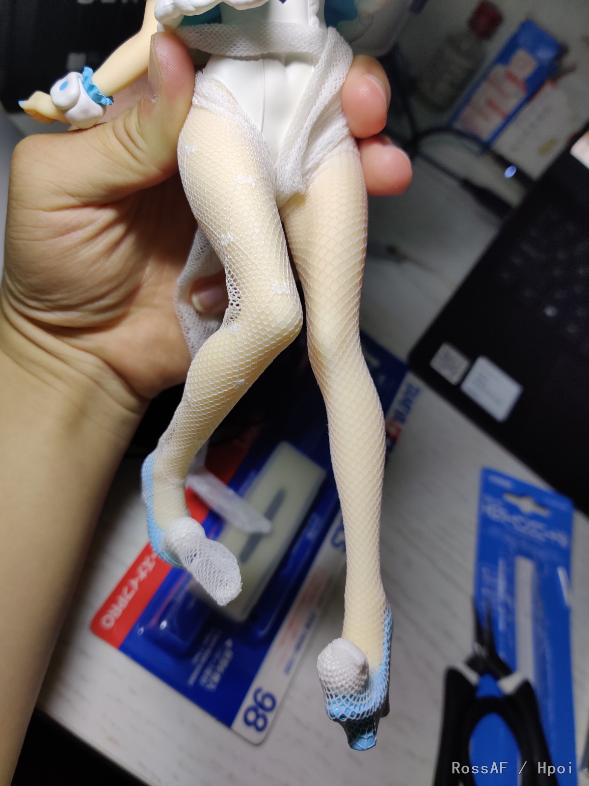 首先大刀阔斧解放生足(参见上个相册),然后套上网袜试试,最后还是选择了和原画比较接近的白色简单网格