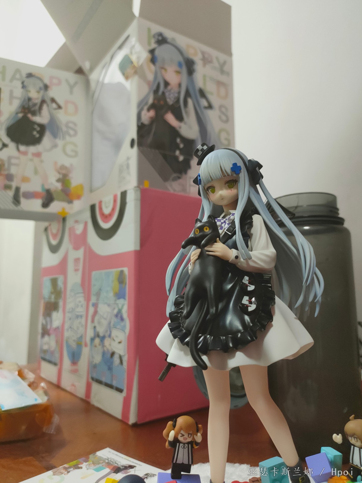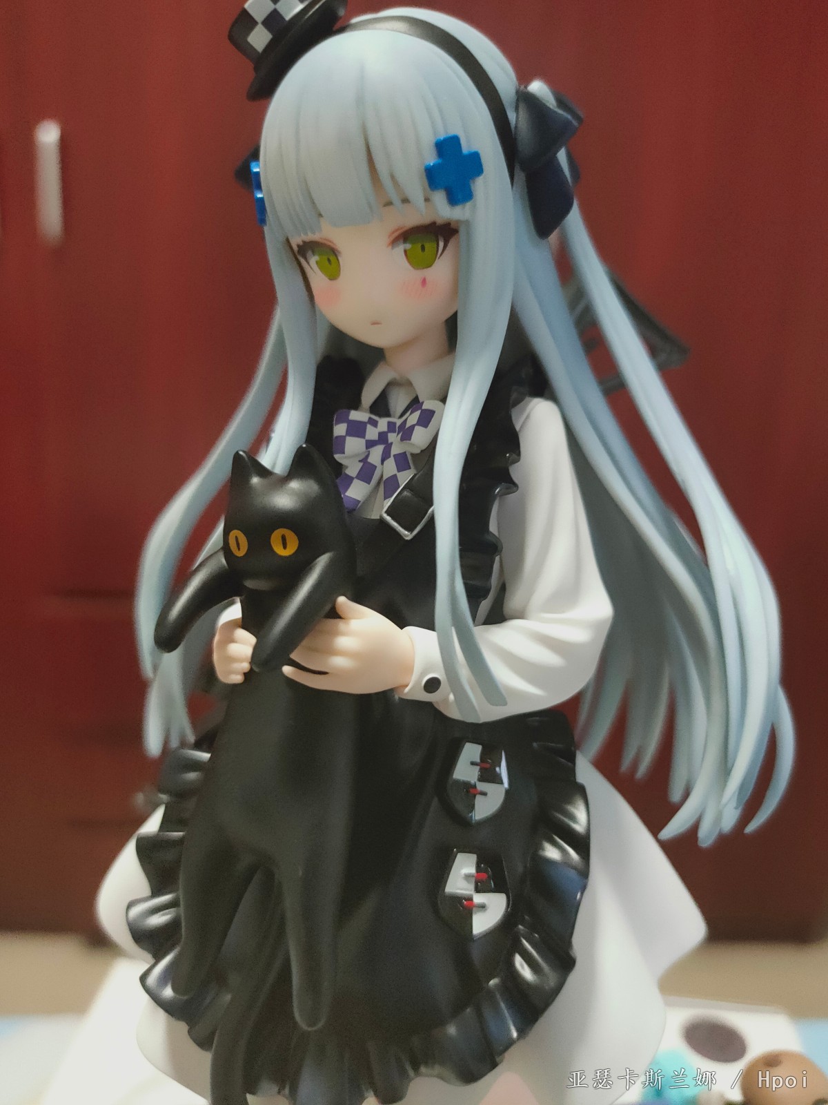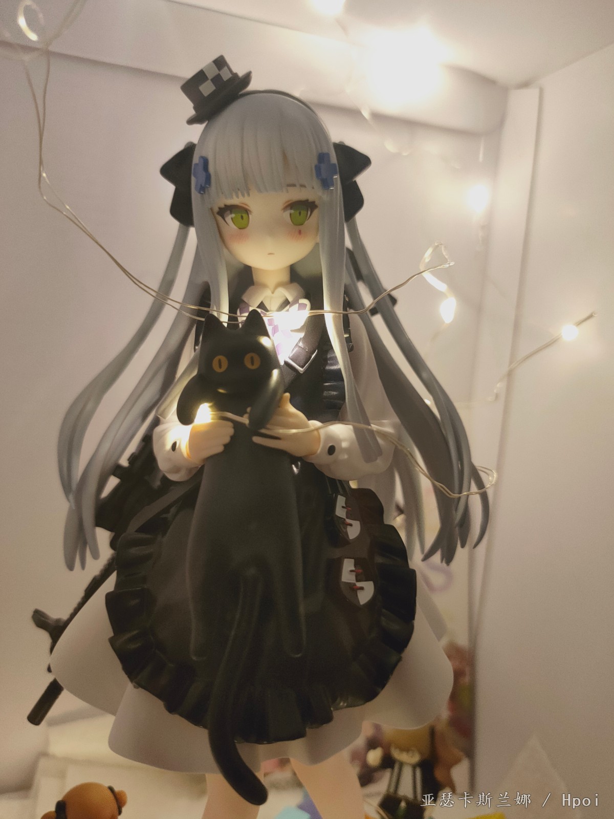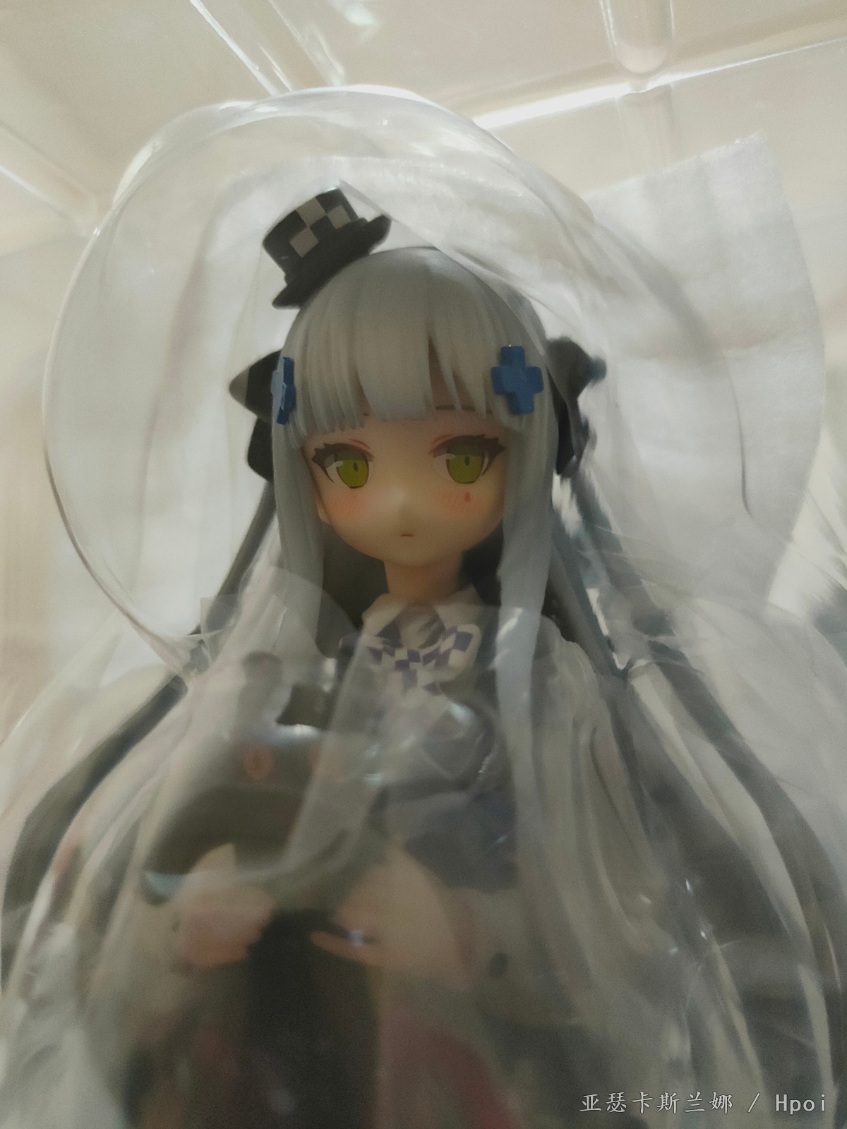 脖子确实有点长,脸和官图没有说一摸一样,但怎么也有八九分神似了,枪做工算不上精细,握把卡隼也都没有上色,反正挡在背后看不见也就算了。