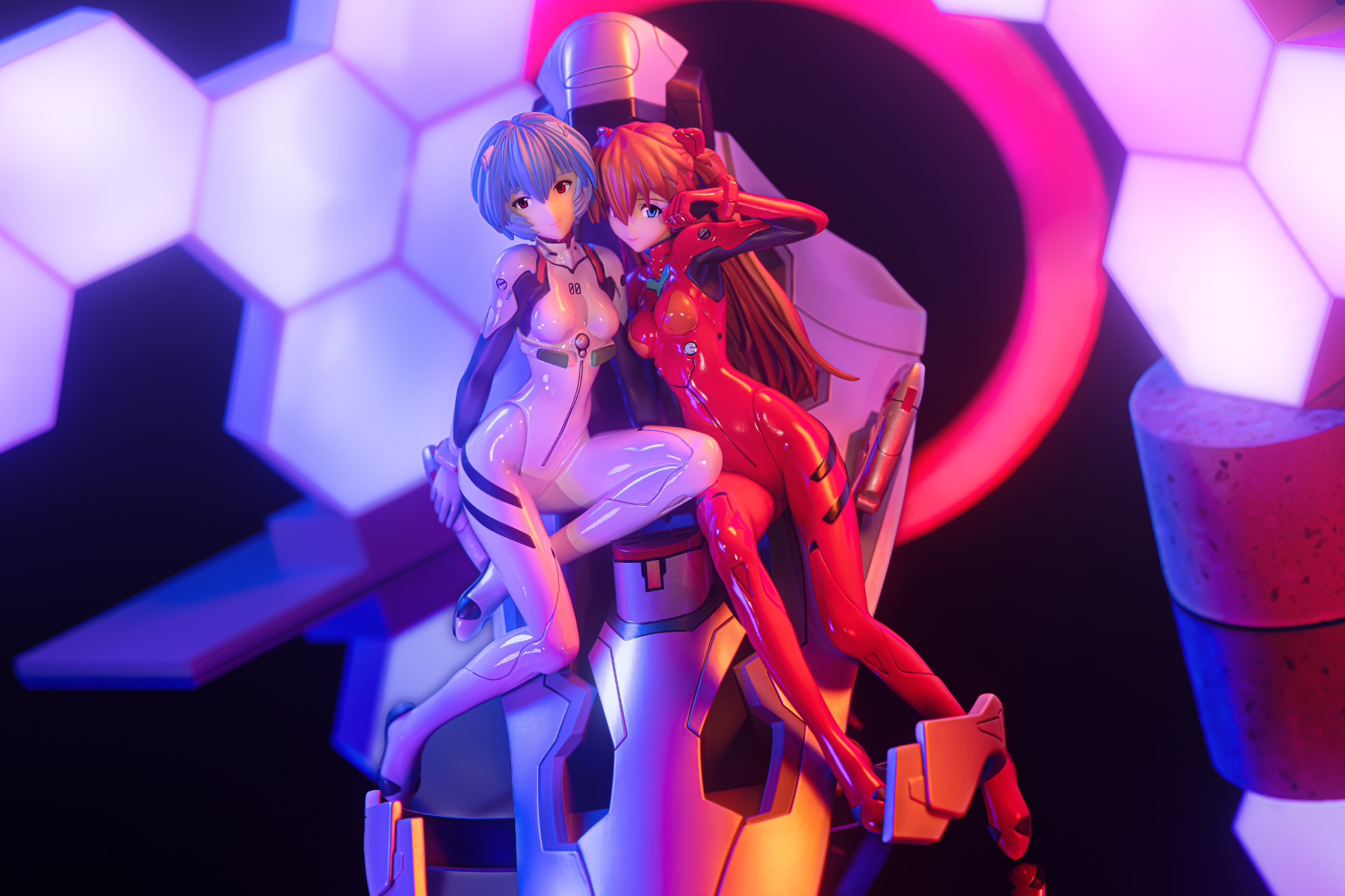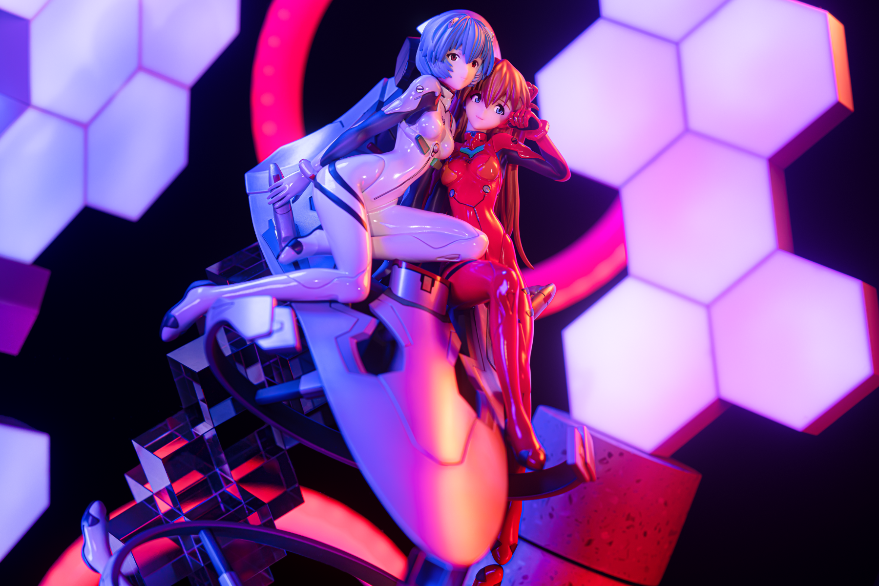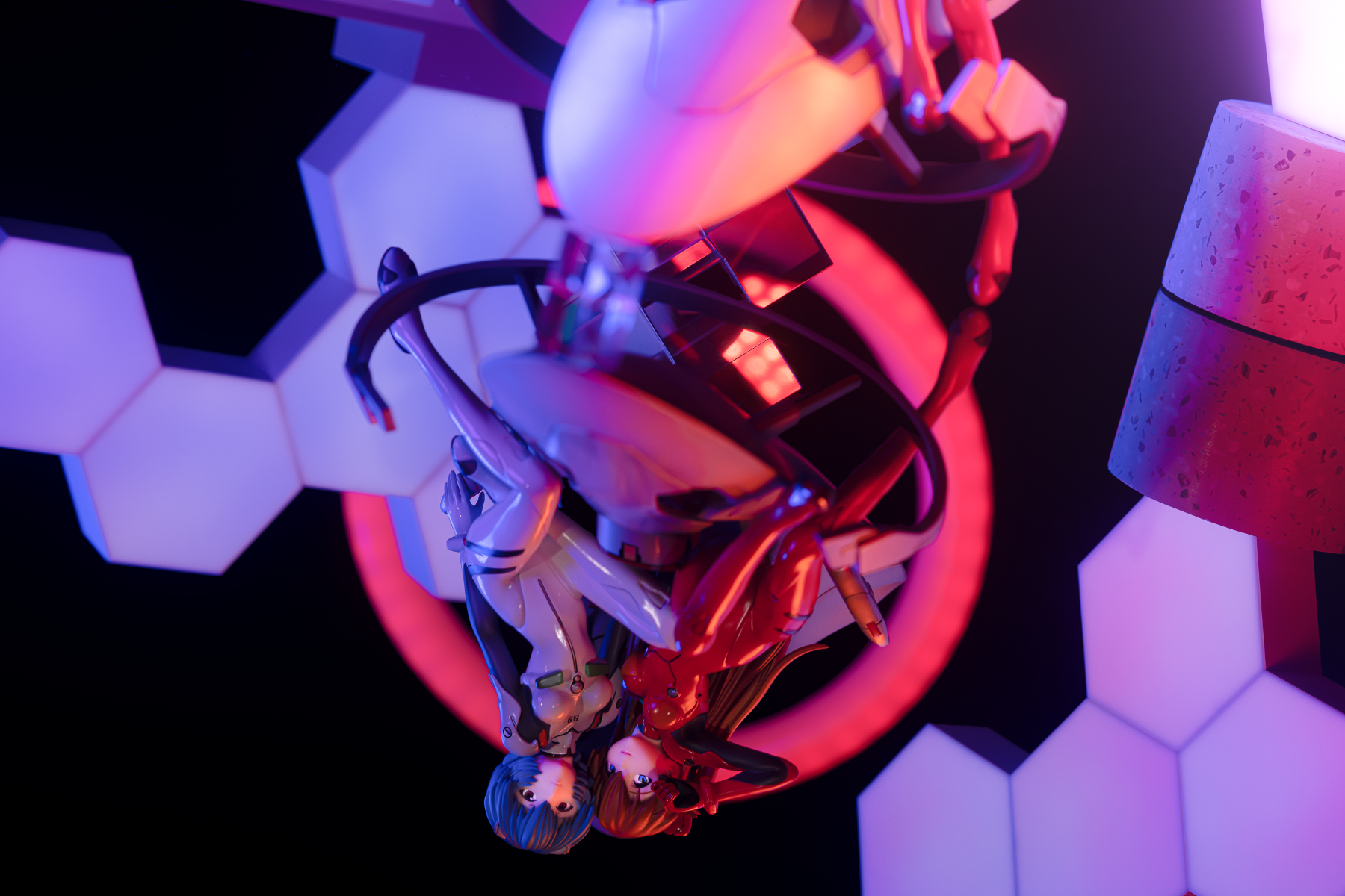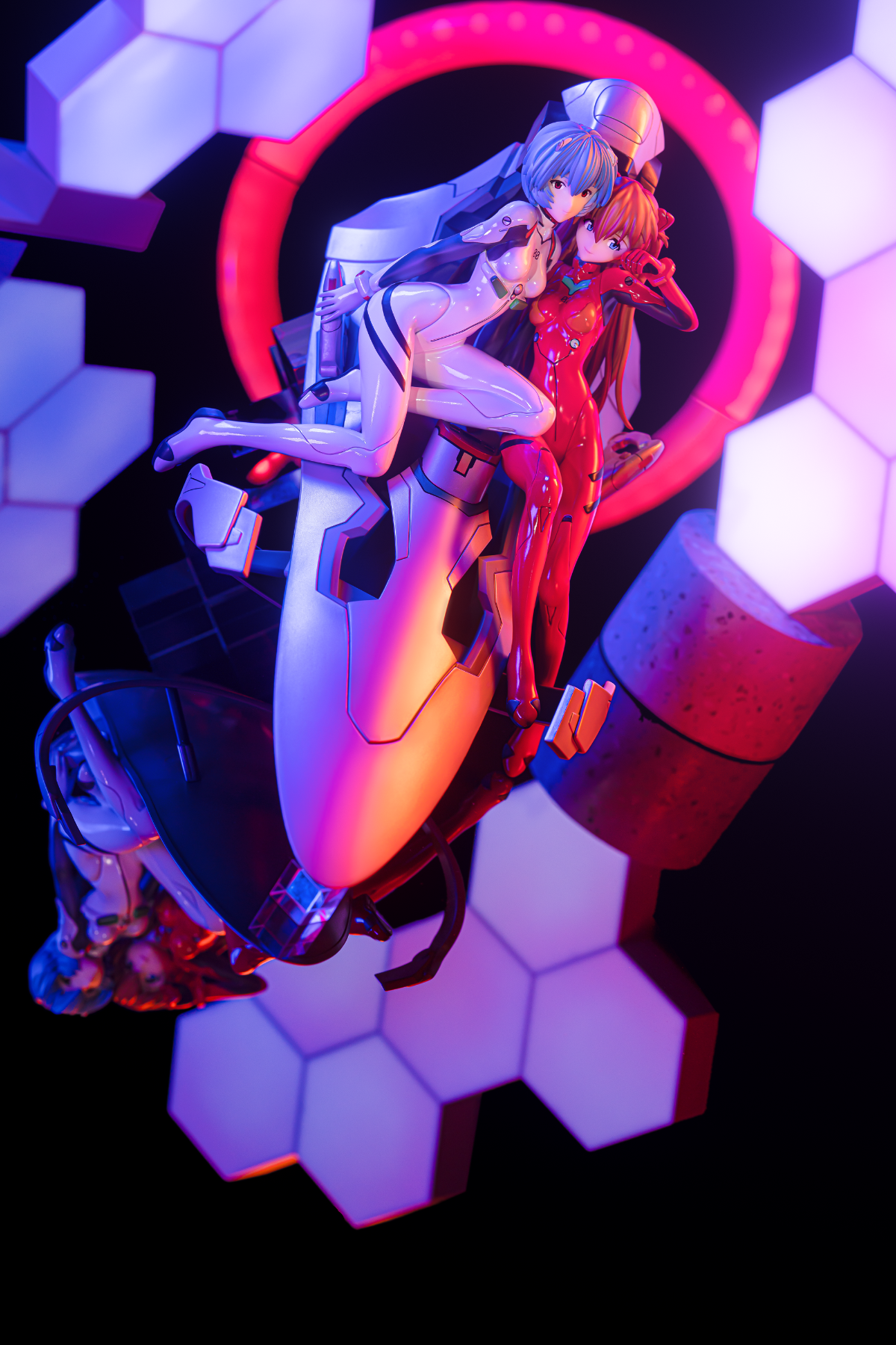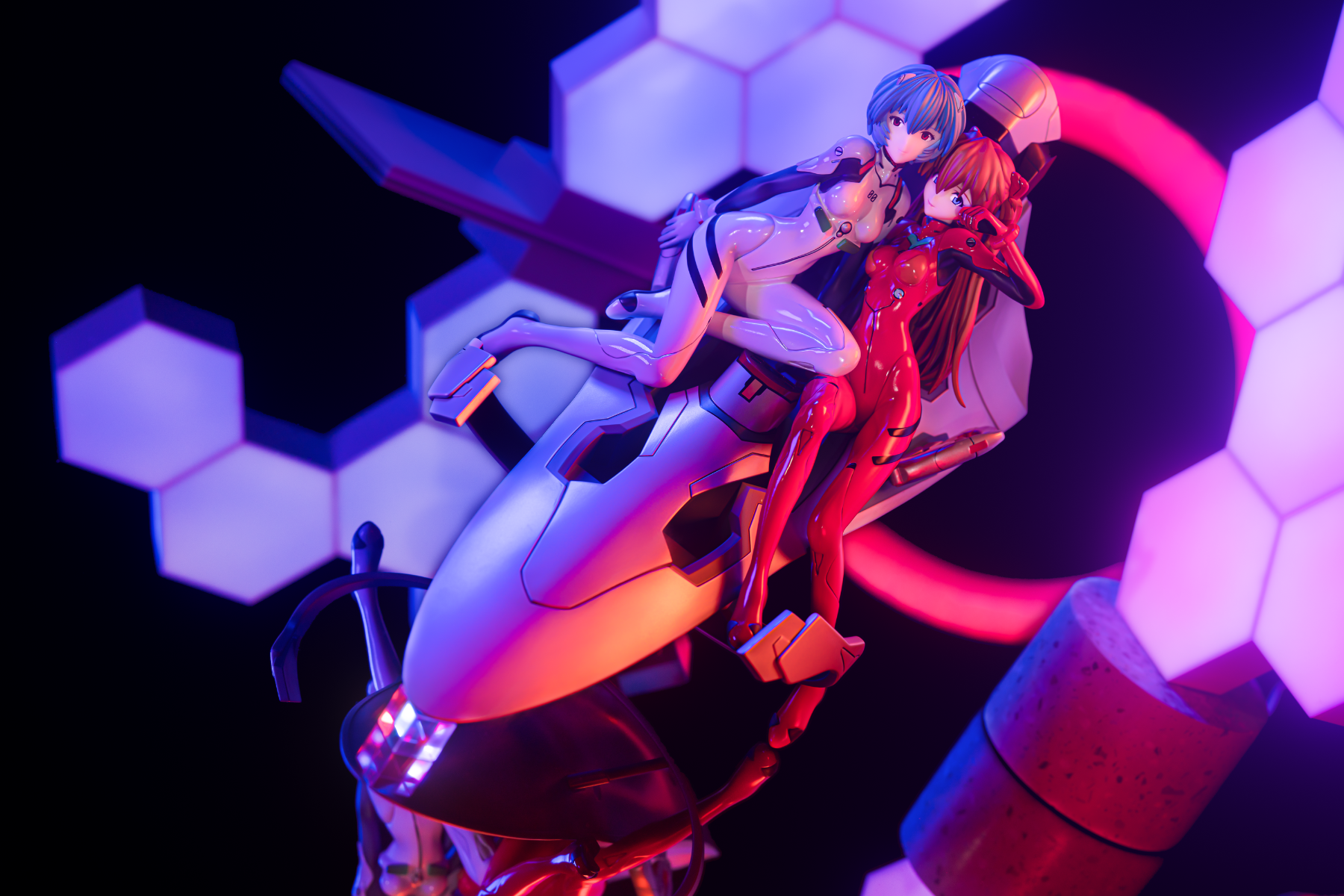 拍的时候没有用原来的底座,那个看着太塑料了。背面的NERV标是买的贴纸,不是自带的。摆玻璃是这里学的模玩手办摄影拍照流程。发光是用插件弄的PS一键发光。光效基本是后期生成的,太不会调,见笑!