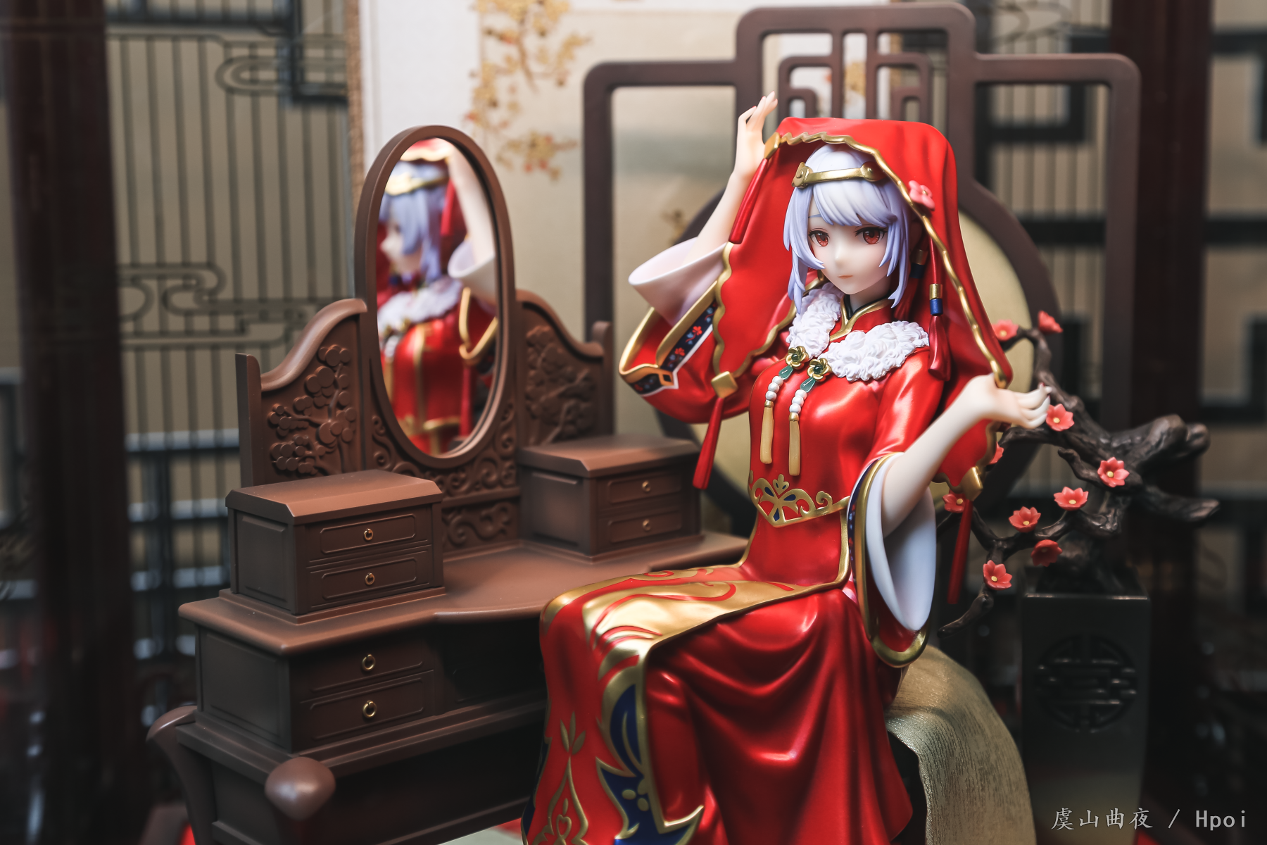 从项目部回家没小场景背景板和小摆件(在工作的地方),突然想到可以拿韶华的展示盒来拍,然后就说干就干!拍的时候挺难的,韶华的展示盒是一体成型的,不是四面可拆的,主光只能是盒子里的那盏,其他光从外部照射到四面的亚克力板,不是反光就是有光源的影子。