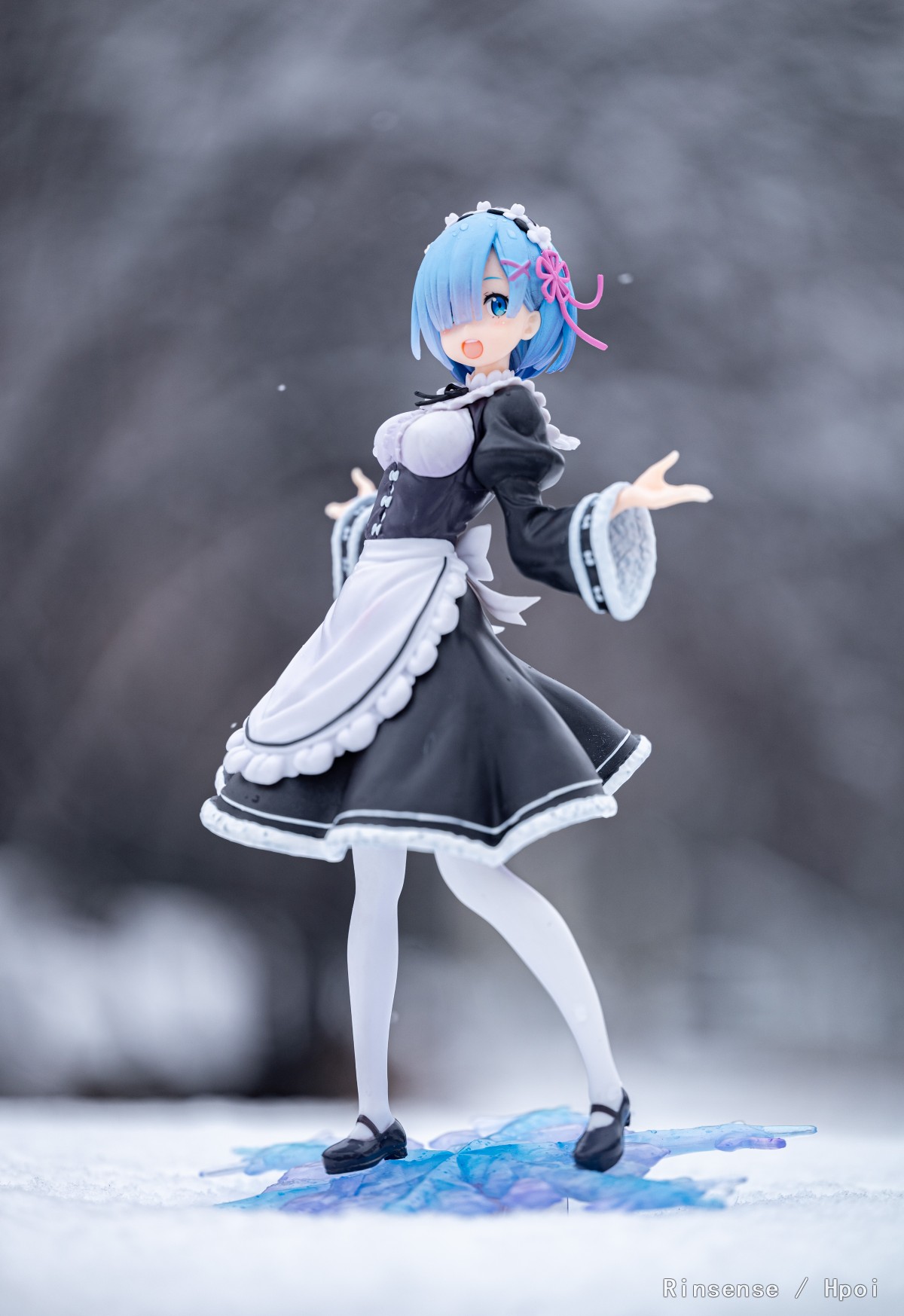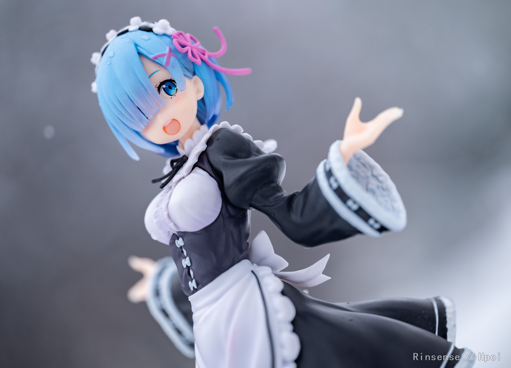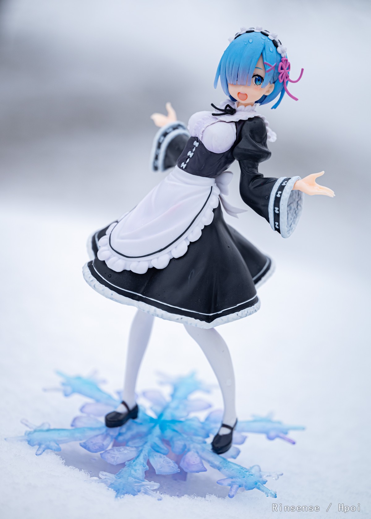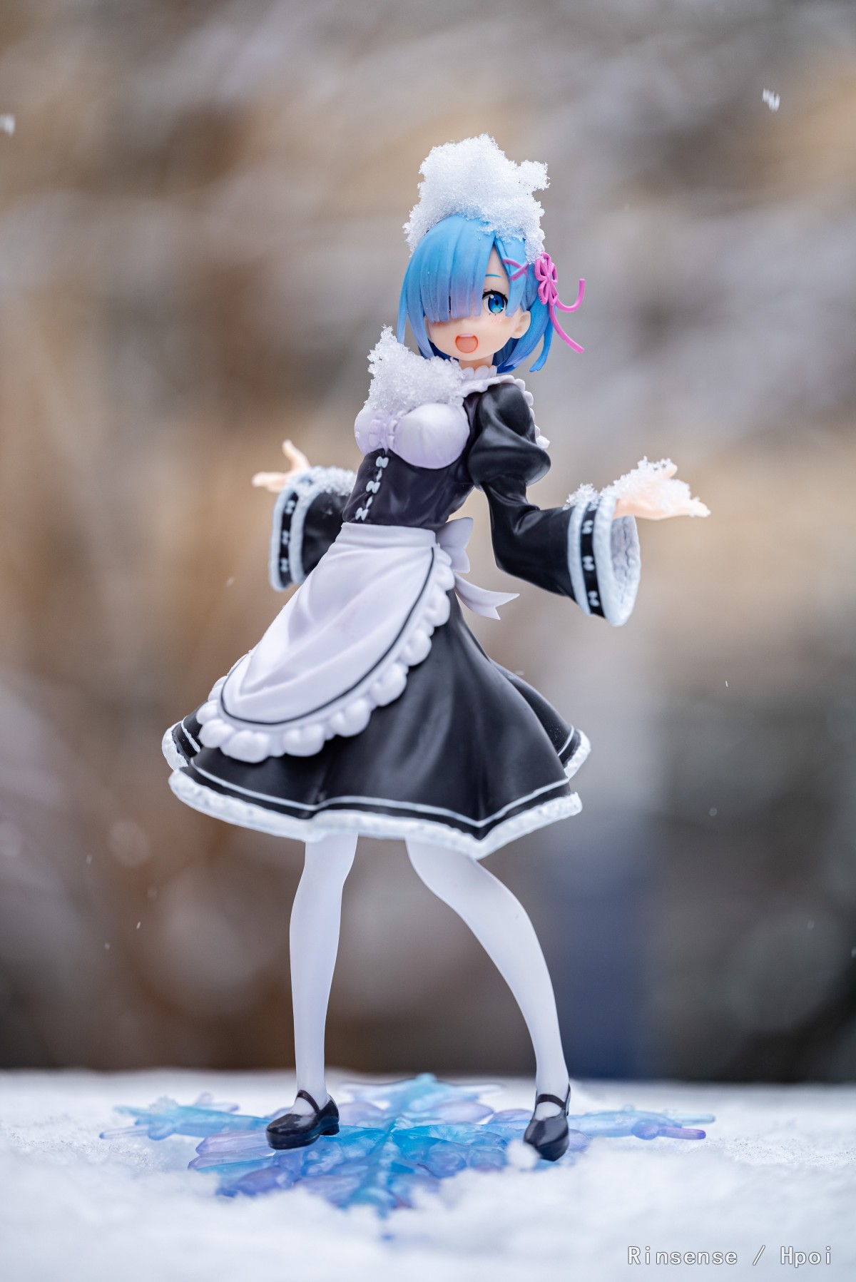虽然景品的细节不能用微距镜头细看,但是一旦拥有冬季环境加成,这款蕾姆瞬间拥有了不凡的气质,这也许就是自然外景的魔力吧。