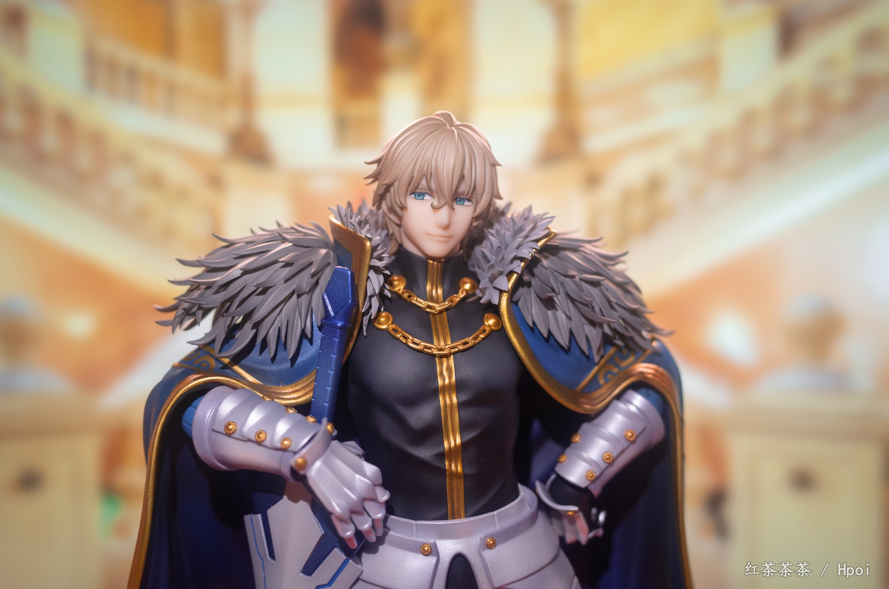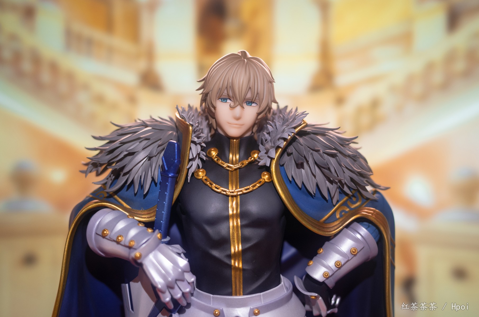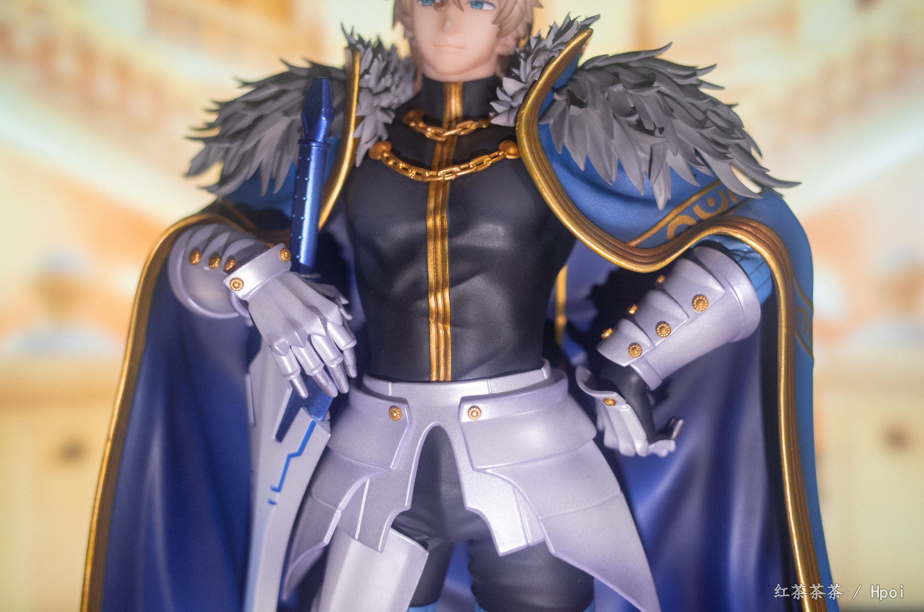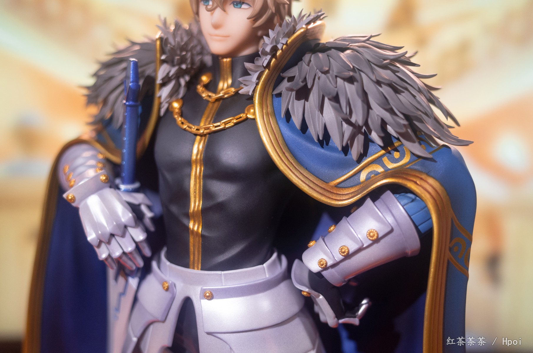 披风上也有非常漂亮的珠光漆,可惜不能脱。整体挺有份量,不需要怎么组装,只需安装剑和底座。这次持剑相当稳固,不像旧剑那把动不动就掉。
