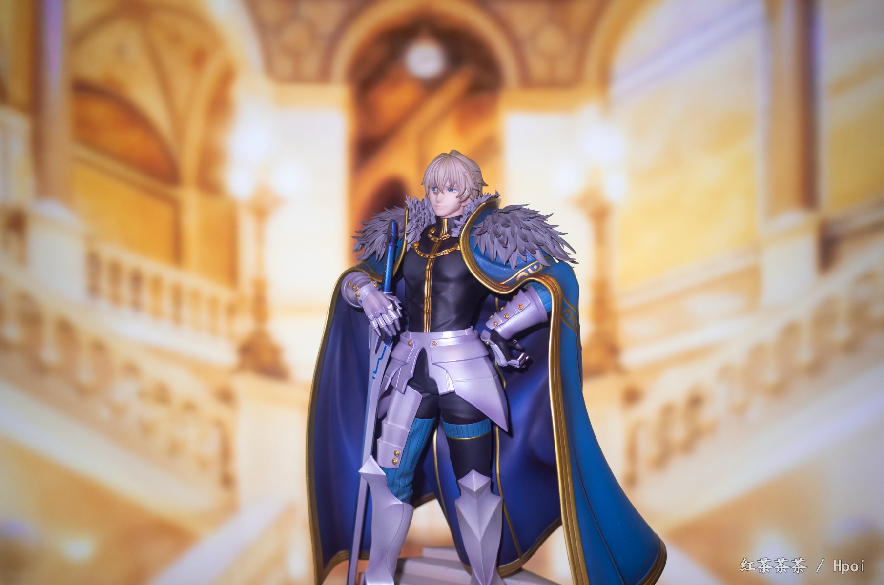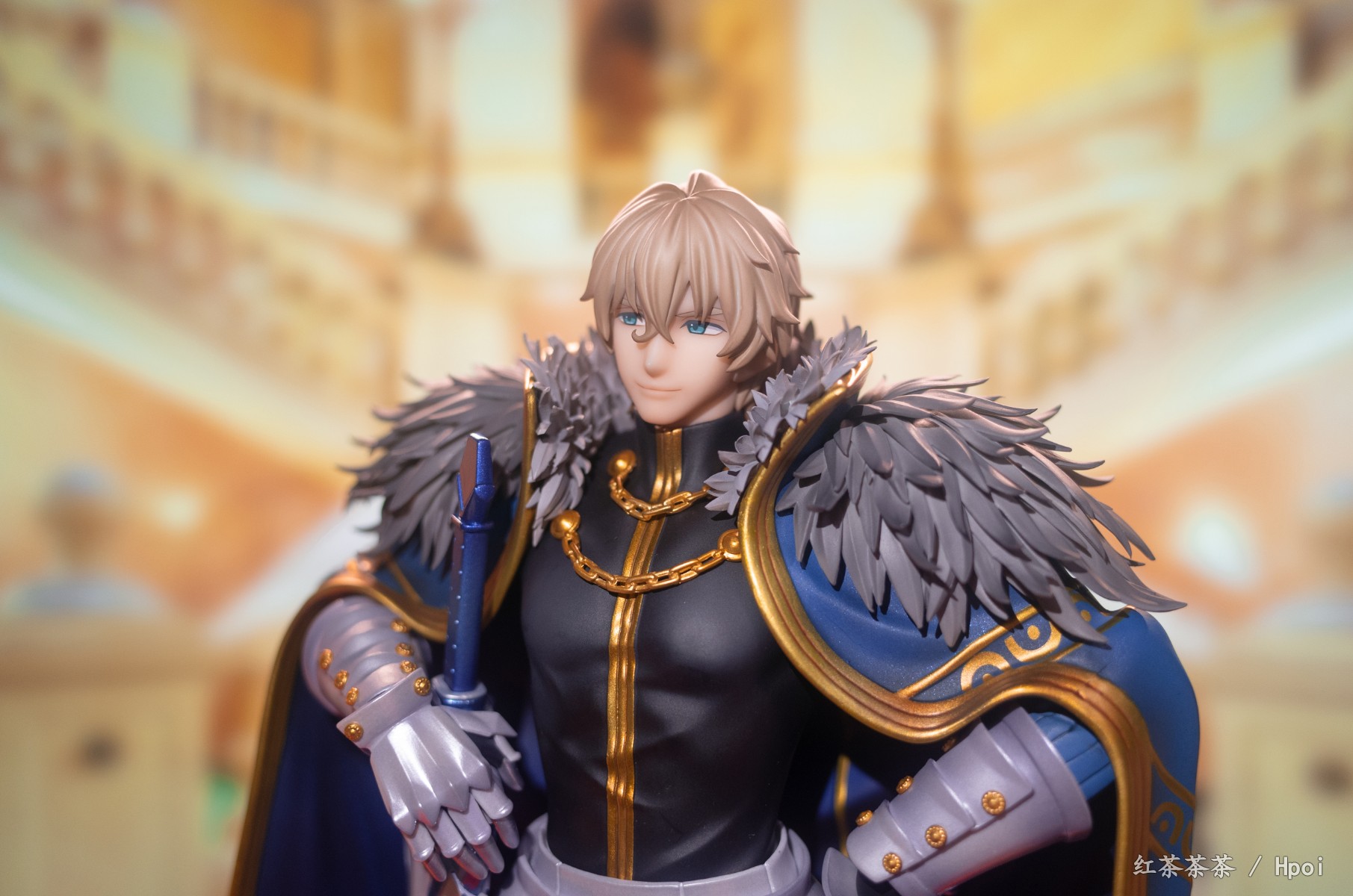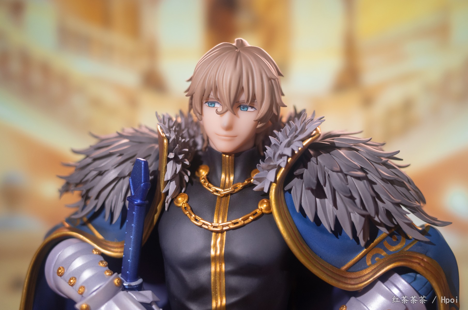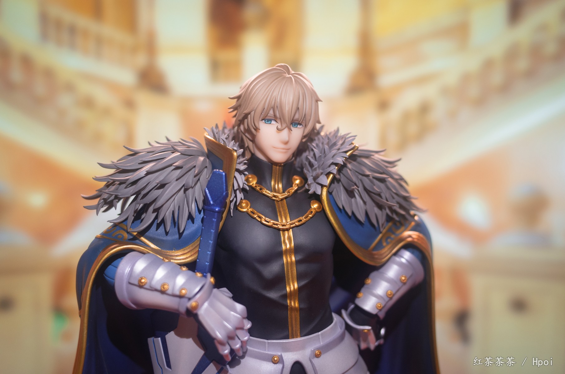 披风上也有非常漂亮的珠光漆,可惜不能脱。整体挺有份量,不需要怎么组装,只需安装剑和底座。这次持剑相当稳固,不像旧剑那把动不动就掉。