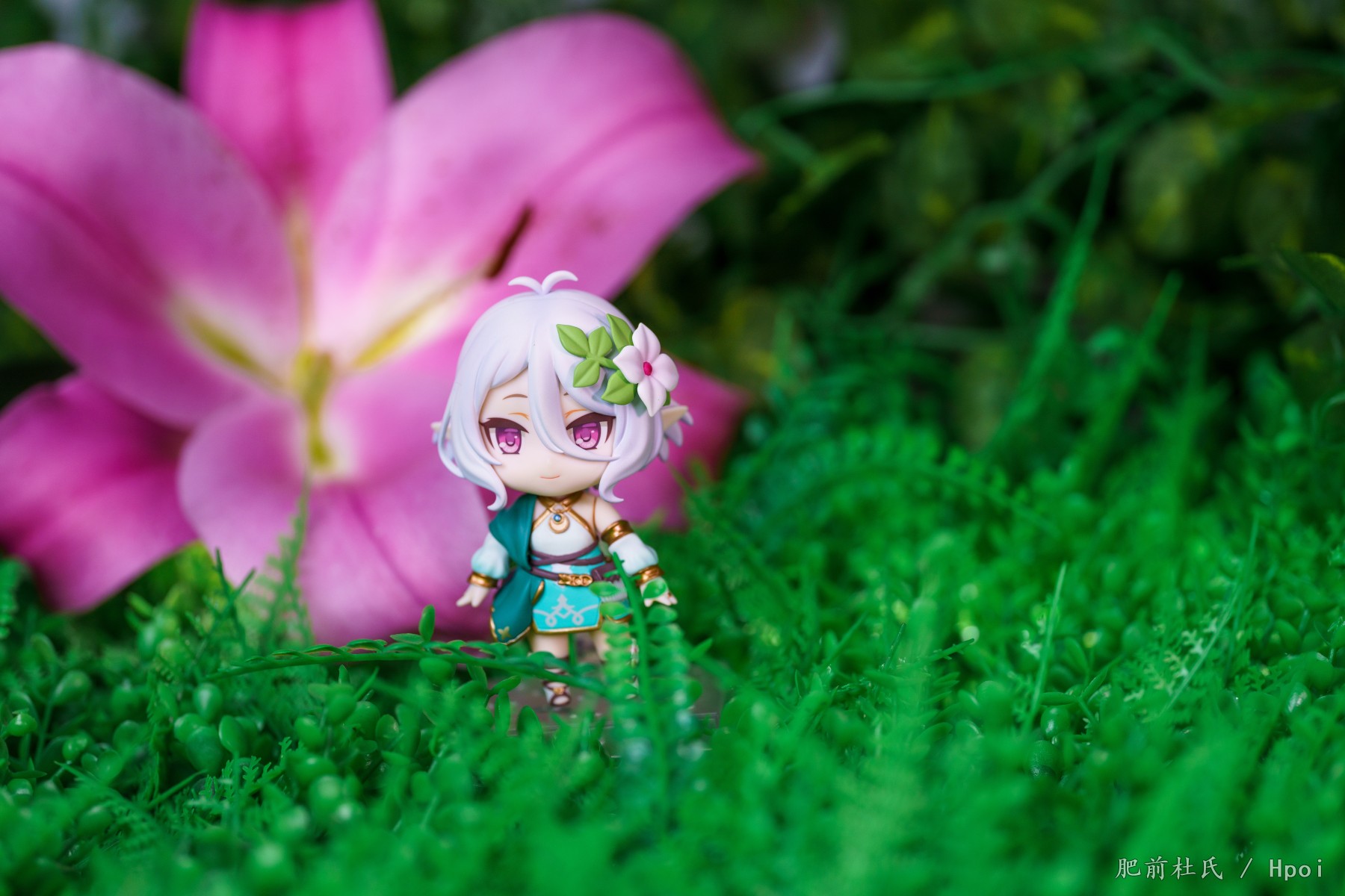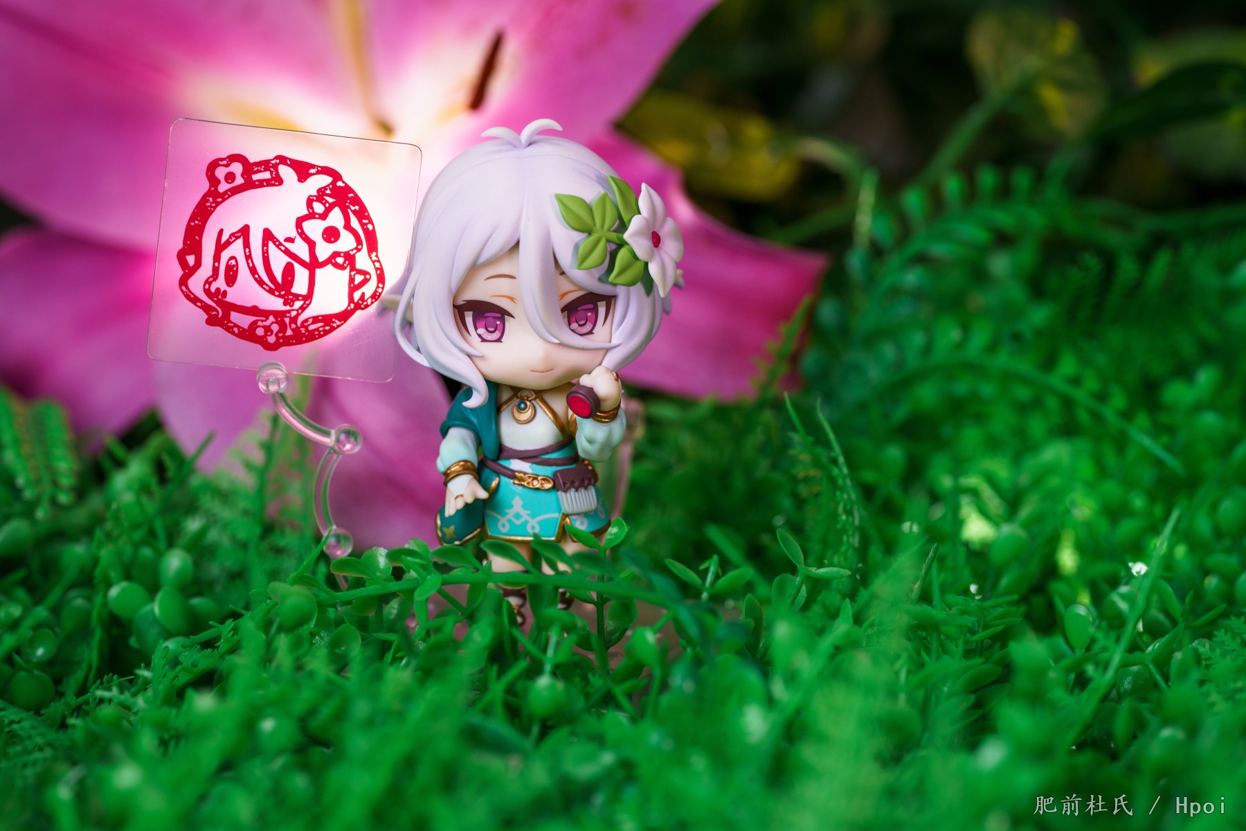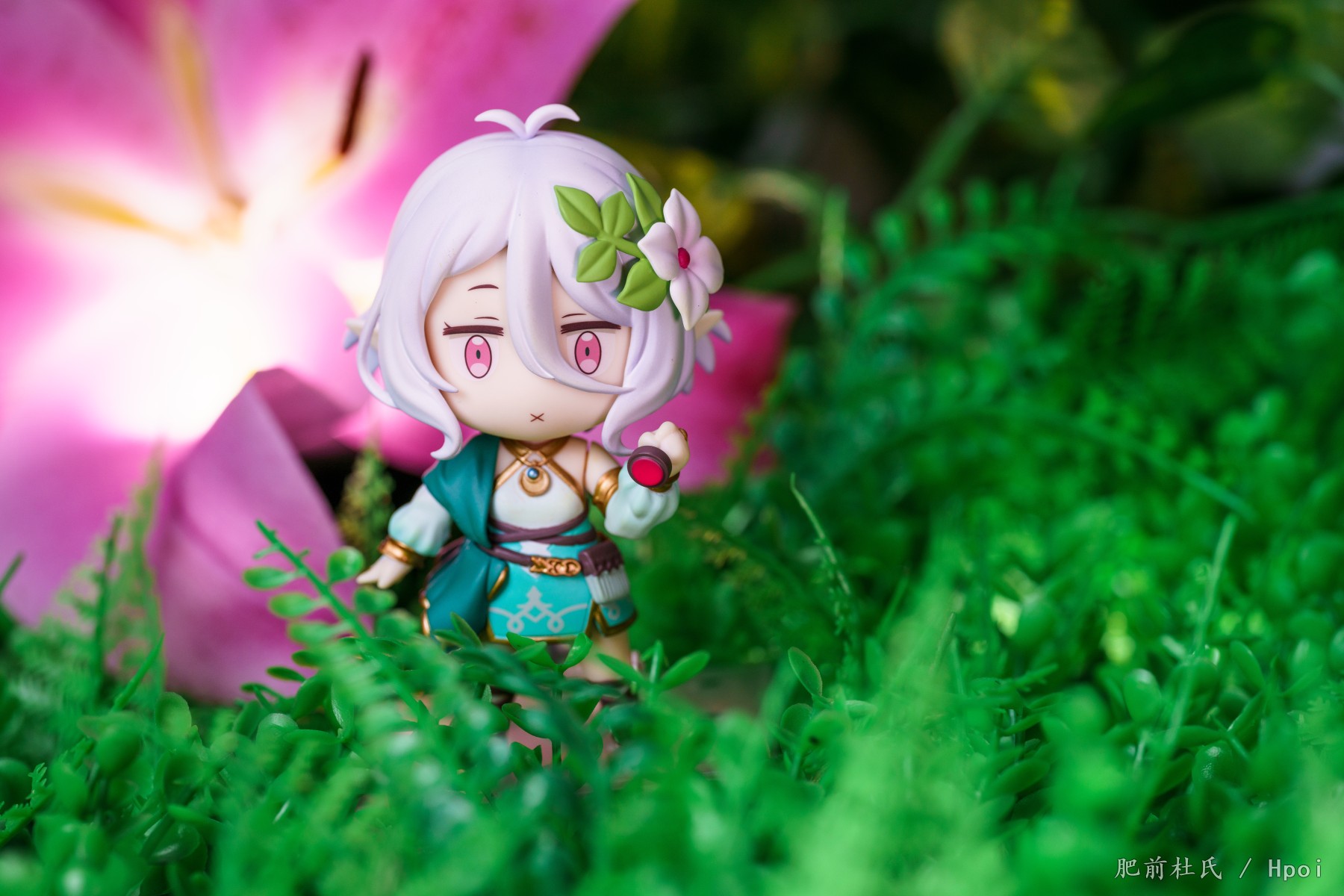 今天等了好久的粘土人可可萝到了,刚好这几天pcr4周。,第一次买粘土人,正好灵光一闪把家里的旧场景和鲜花组合了一下凑合着拍了些。