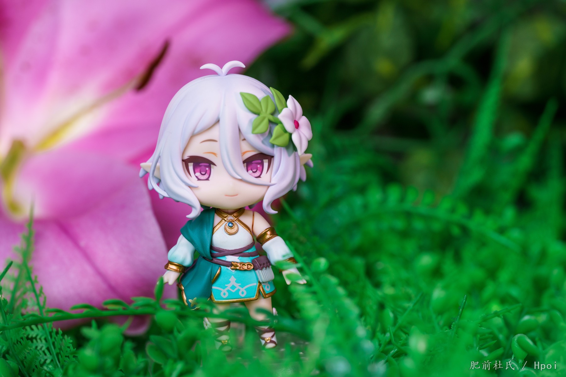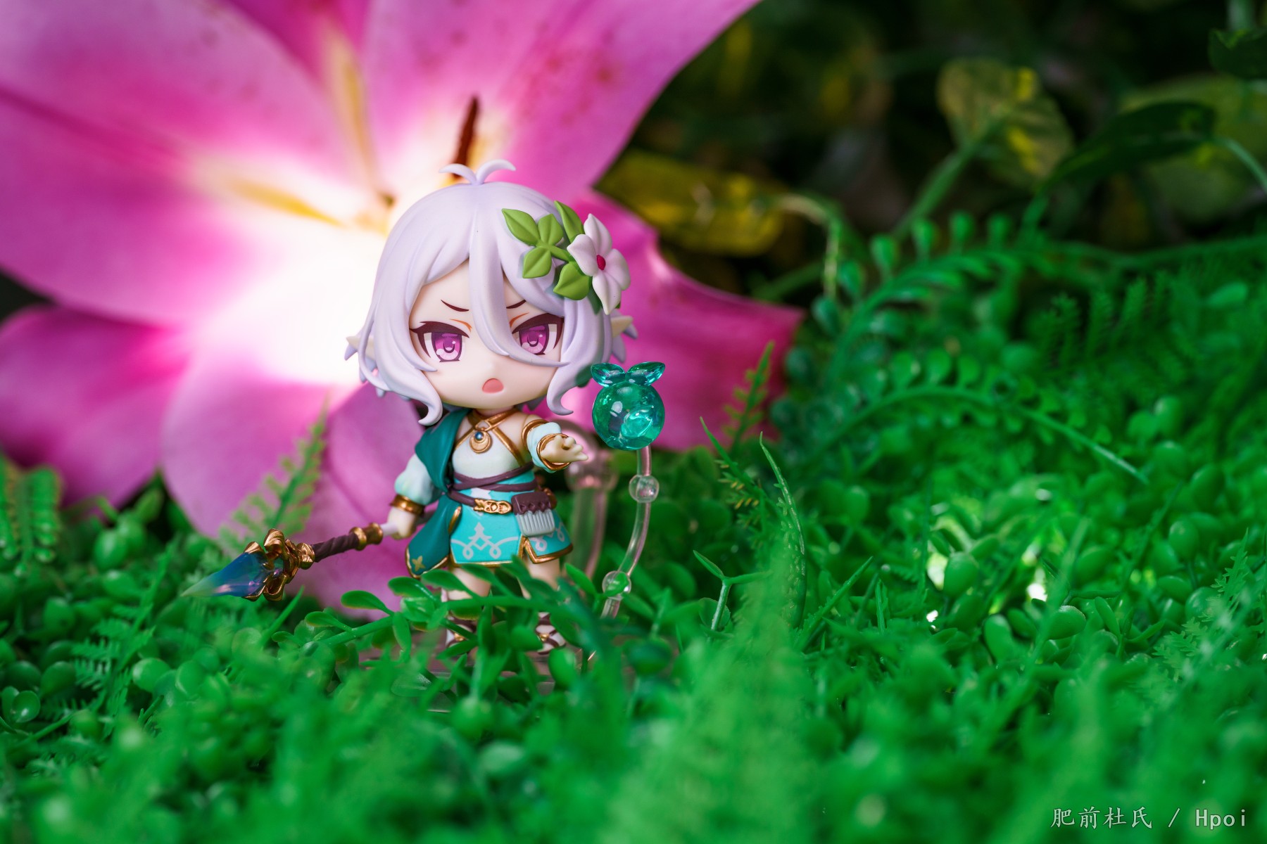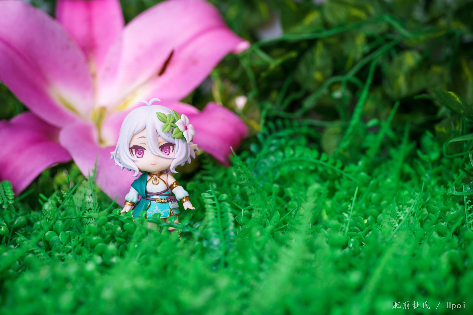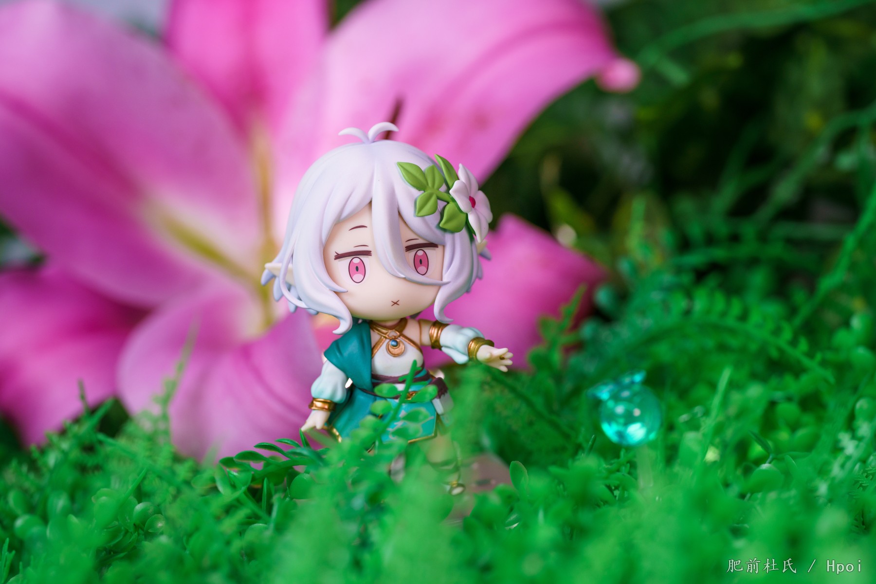 今天等了好久的粘土人可可萝到了,刚好这几天pcr4周。,第一次买粘土人,正好灵光一闪把家里的旧场景和鲜花组合了一下凑合着拍了些。