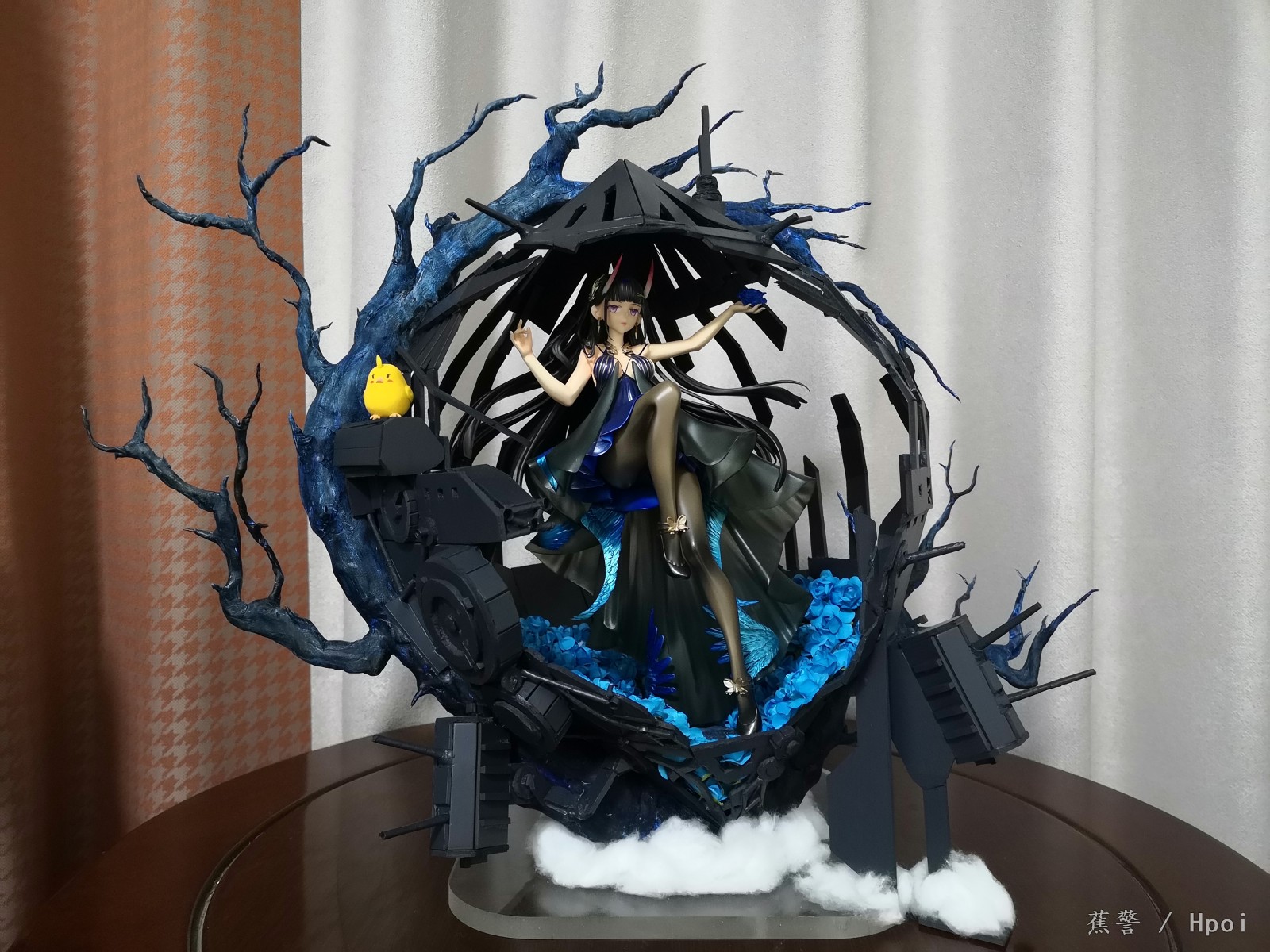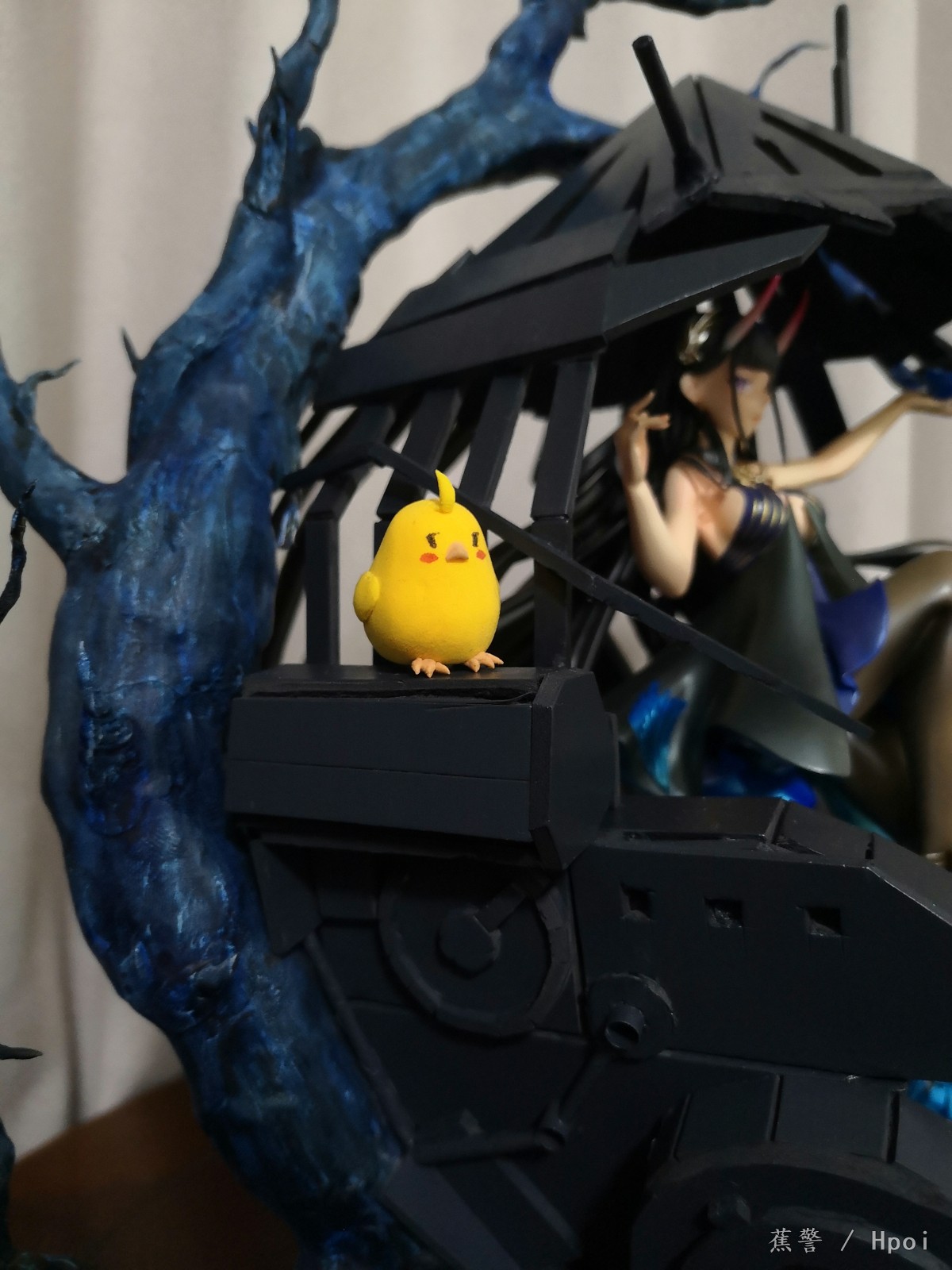 夜响的绝园完成品。材料:免烤陶泥、超轻黏土、细铁丝、雪弗板、吸管、药棉、502、丙烯颜料、wf2021gk能代。历经一个月终于敷衍地完成了,由于我参考的只有游戏立绘,所以我已经尽我最大能力去还原细节,游戏并无背面描绘所以背面我做得敷衍些,支撑全打在背面了。未经测量仅凭直觉制作比例有改变。能代头发有手绘彩色光晕打光才能看见。蓝玫瑰有色差但影响不大,小黄鸡修改过。由于考研将至,本次将会是本萌新最后一次魔改虽仅有1年半的入坑时间,但充实而快乐。我只想当一个快乐的化工人!(每一位画者都有自己独特的画风,就像字体一样独一无二,请尊重每位画者的作品!)