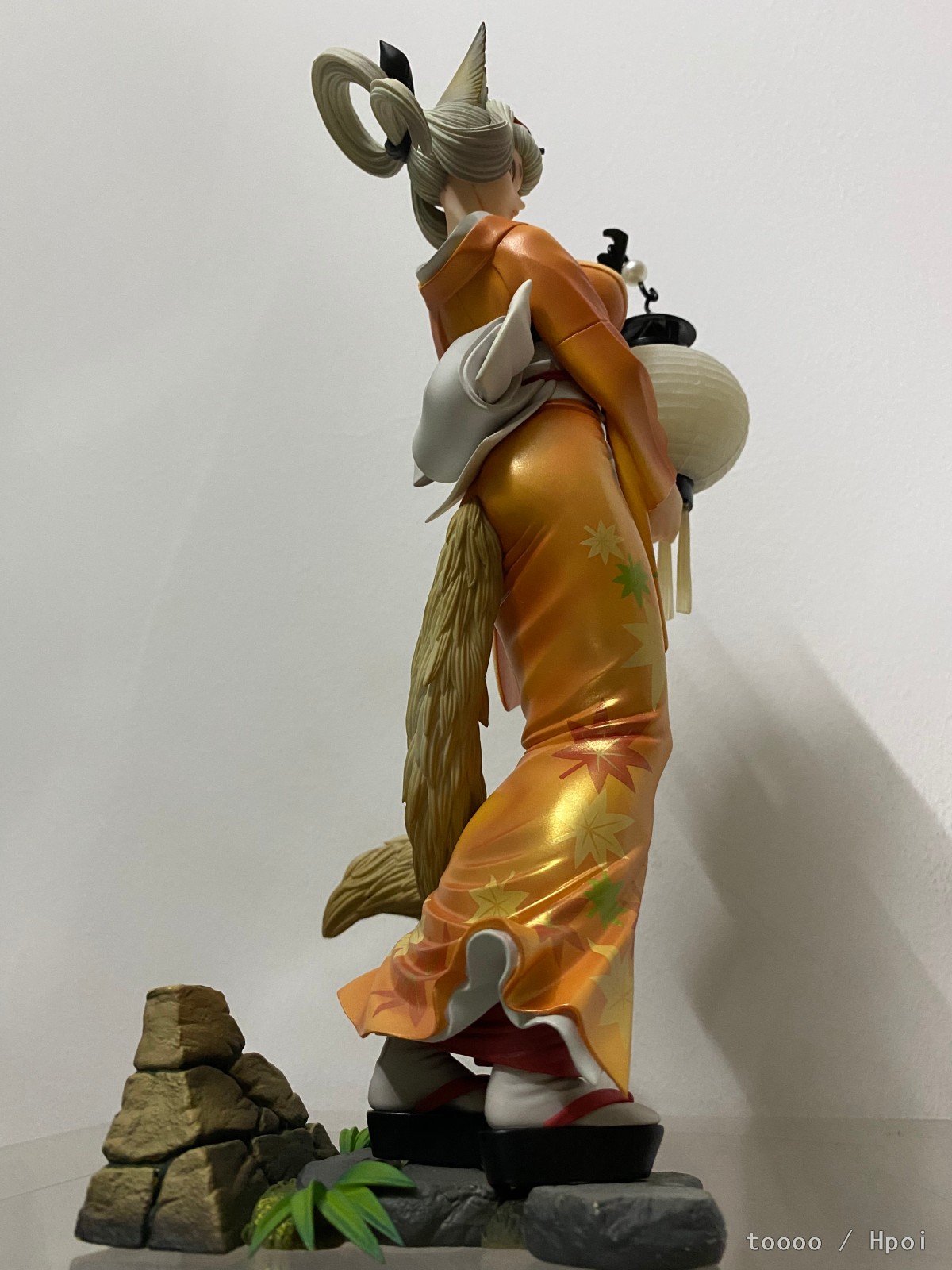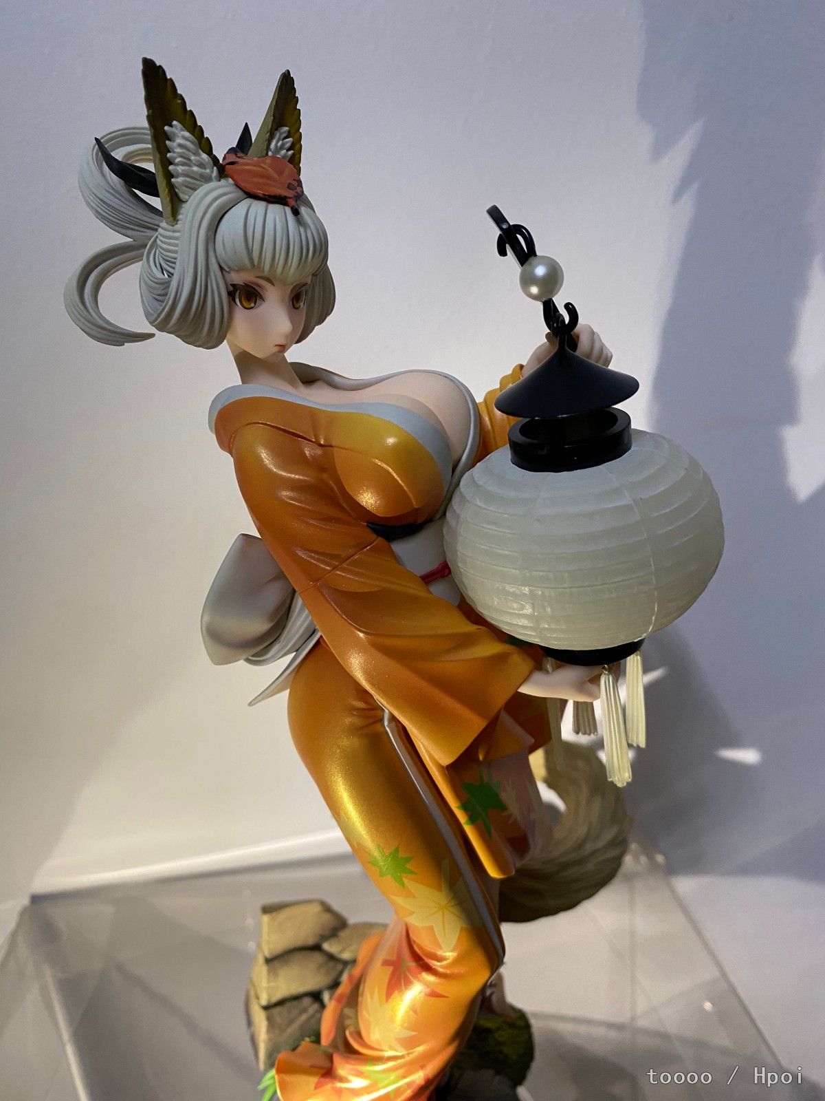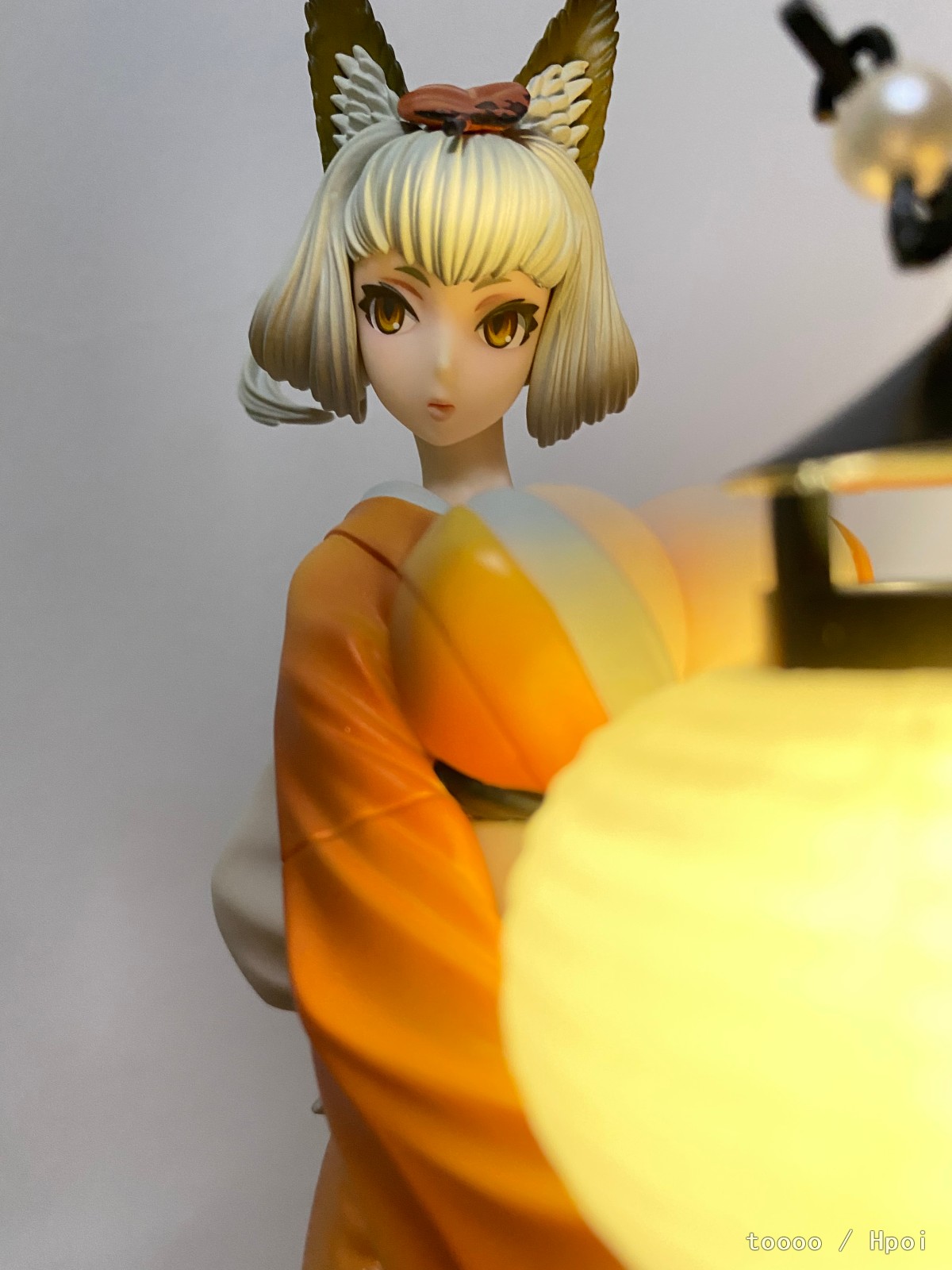 蹲了好久终于还是下手了,她真的好美!老物拿到手有点脏,清洁了好久。灯笼的螺丝锈死了,最后还是没能把灯点着,强行模拟了下拍了。衣服好看,涂装优秀到完全想不到是一几年的作品。这款的珠光色真的一绝,放在桌面自然光一照就能有优秀的光影效果,尤其是整个手办在半明半暗中,妖狐的那种静谧空灵感觉一下子就出来了。脸看个人喜好,可是这灯很棒,舔了!整体来说这个比百姬还要讨我欢心。
