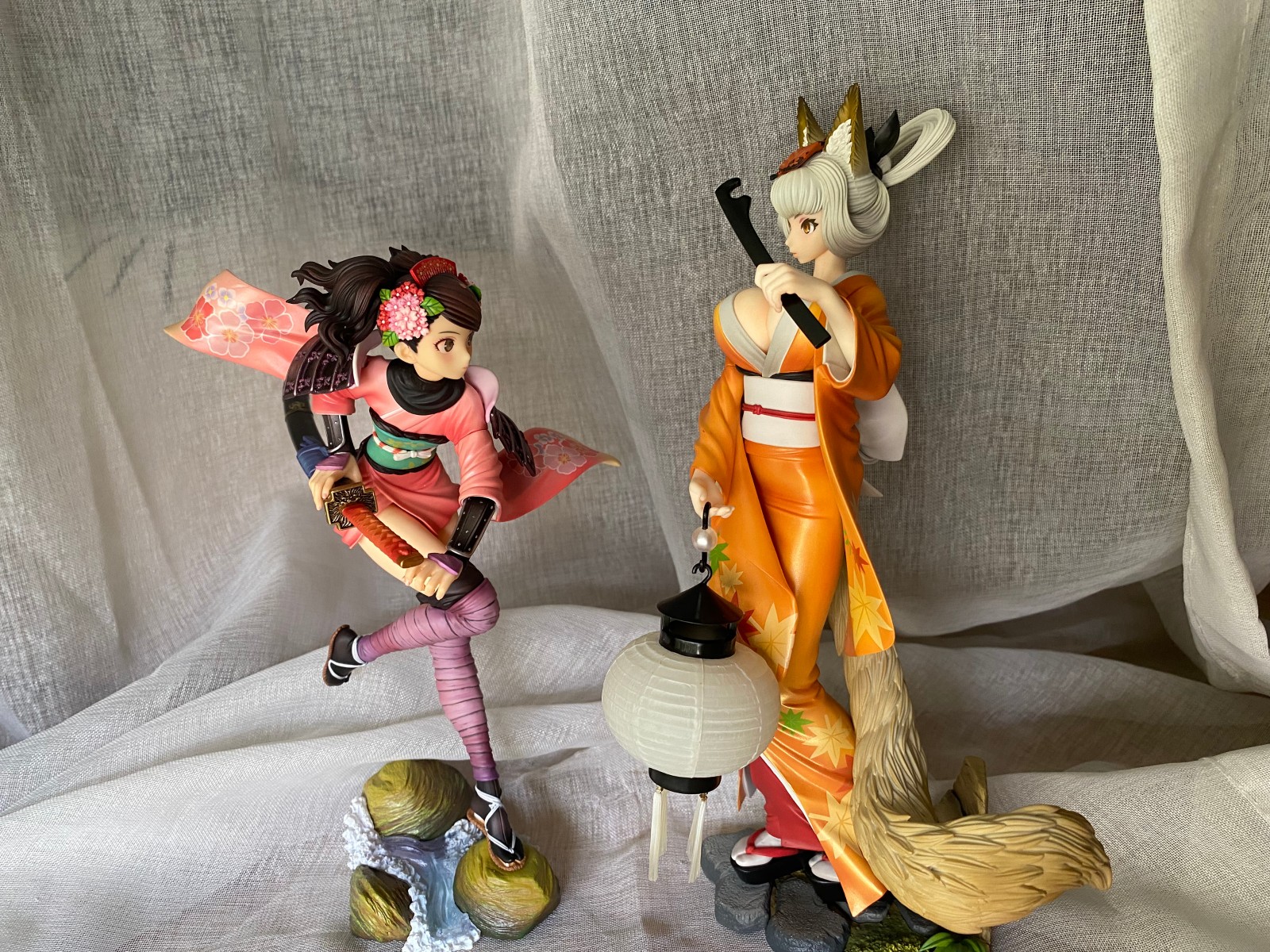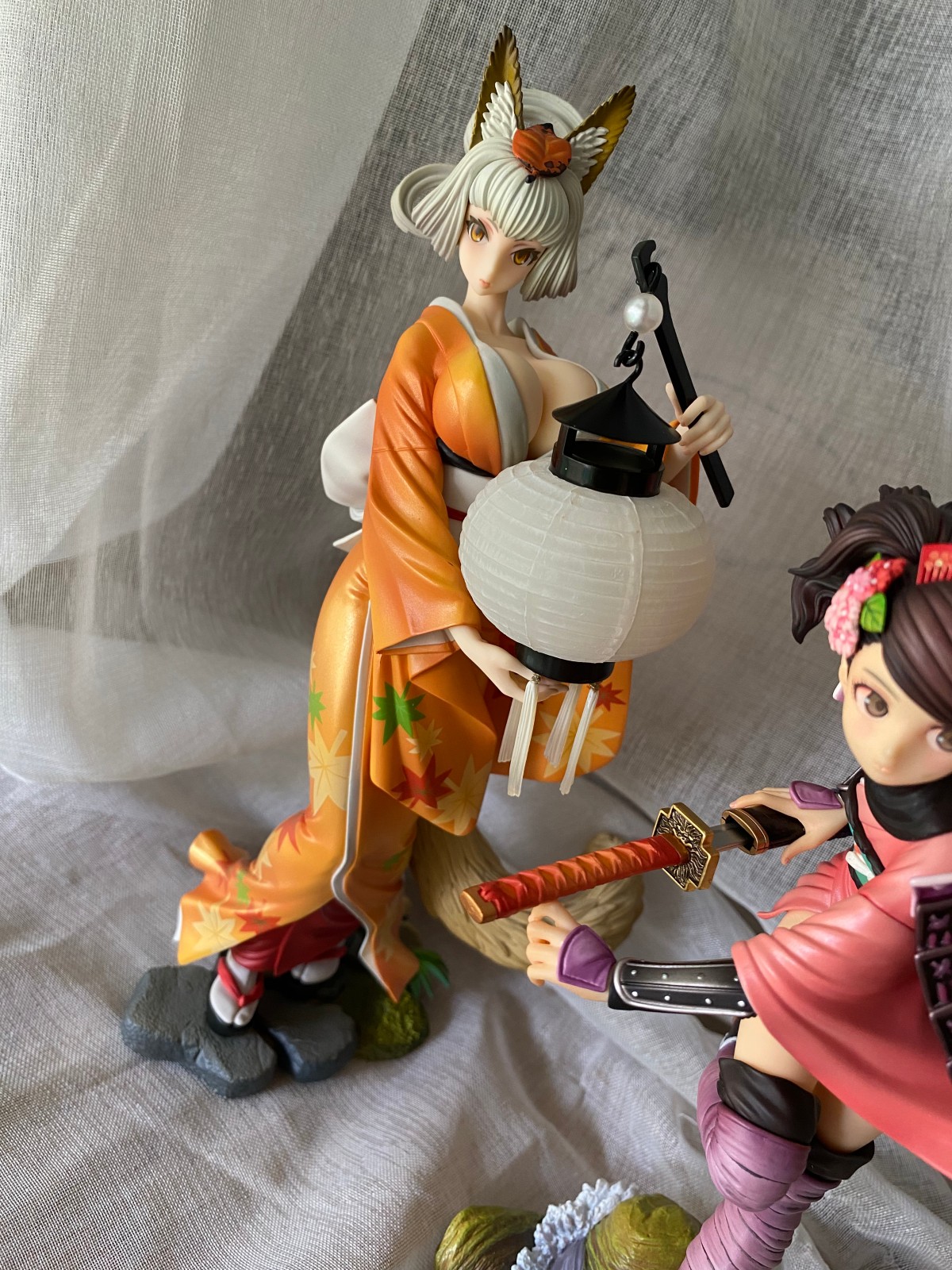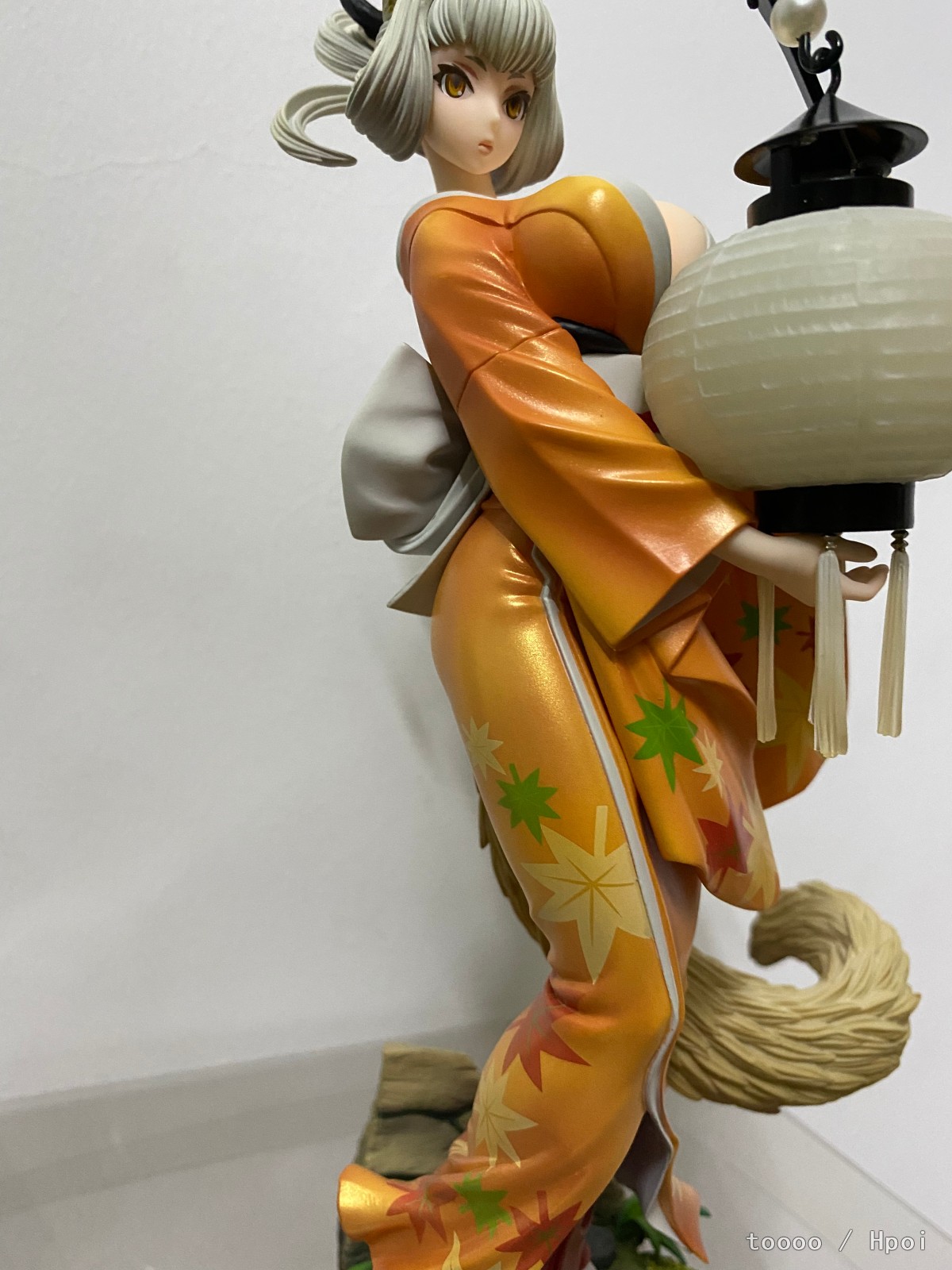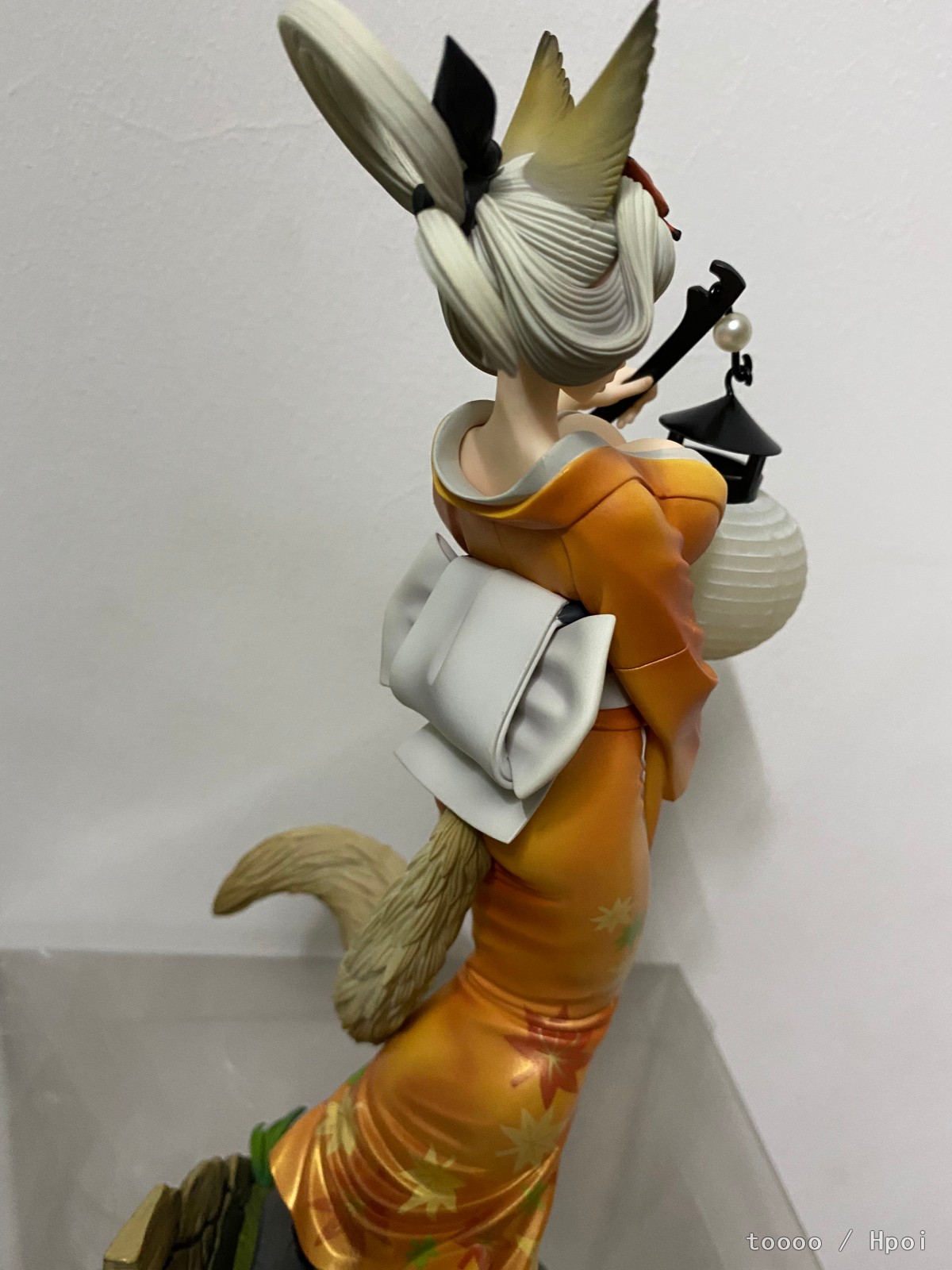 蹲了好久终于还是下手了,她真的好美!老物拿到手有点脏,清洁了好久。灯笼的螺丝锈死了,最后还是没能把灯点着,强行模拟了下拍了。衣服好看,涂装优秀到完全想不到是一几年的作品。这款的珠光色真的一绝,放在桌面自然光一照就能有优秀的光影效果,尤其是整个手办在半明半暗中,妖狐的那种静谧空灵感觉一下子就出来了。脸看个人喜好,可是这灯很棒,舔了!整体来说这个比百姬还要讨我欢心。