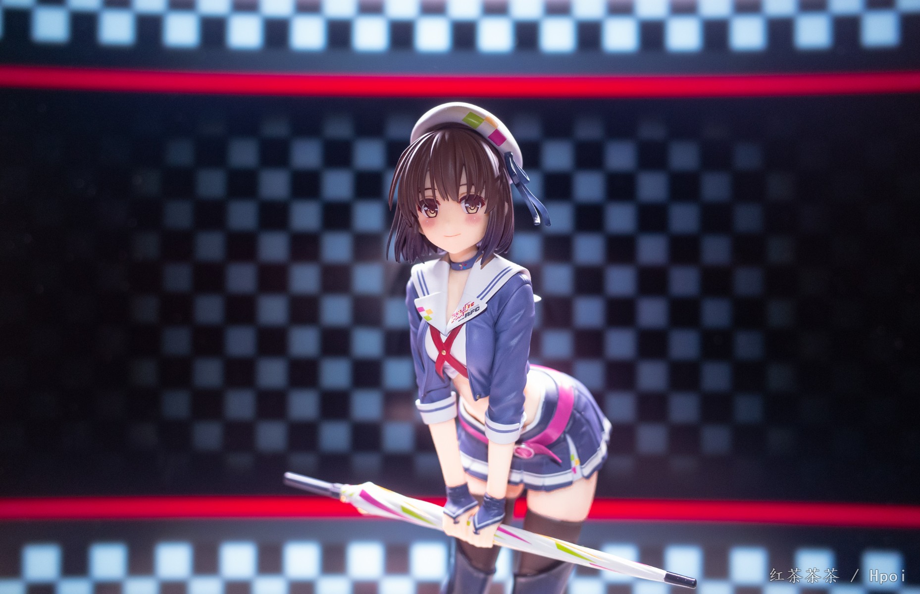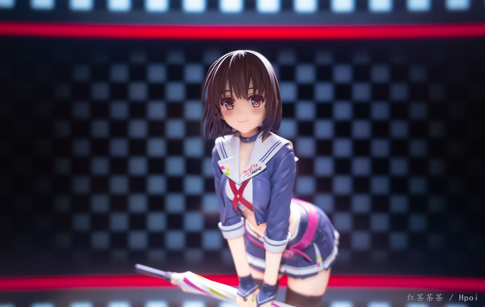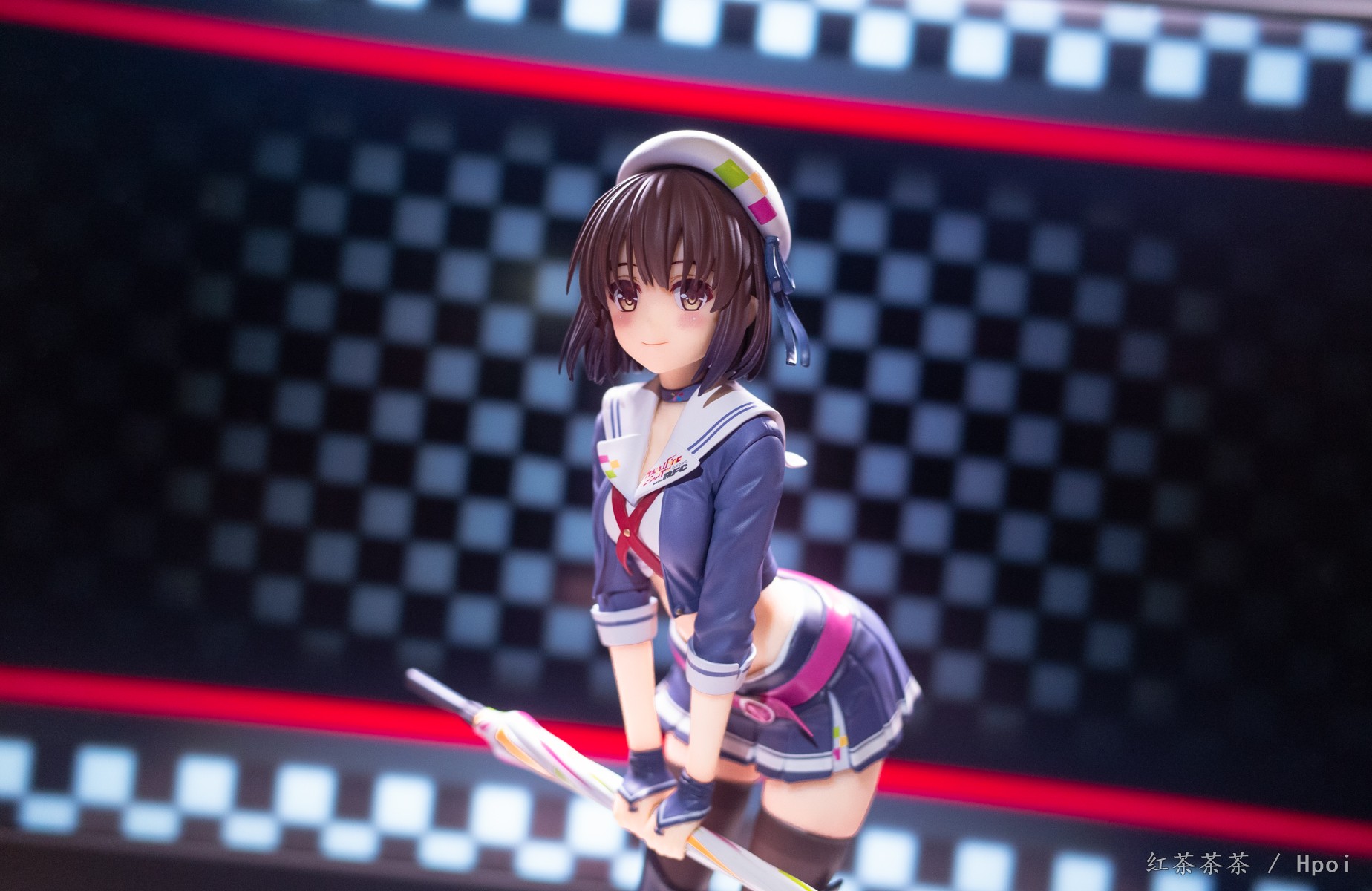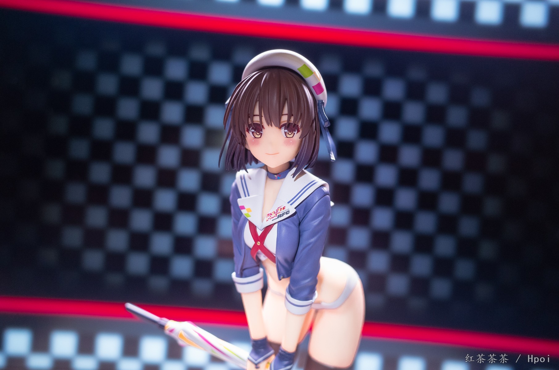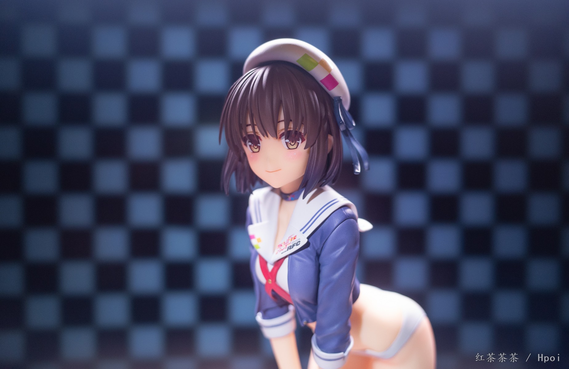 微微前倾弯腰的姿势可以看到惠惠紧实的腹部和线条优美的腰肢