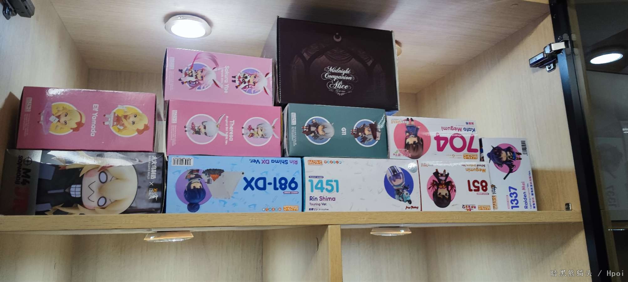前前后后一共花了六个多小时开箱入柜,之前在老家的时候全是放盒子里没拿出来的,保存相当完好,自己搞的遥控柜灯,这个效果相当满意,很久没这么开心了。