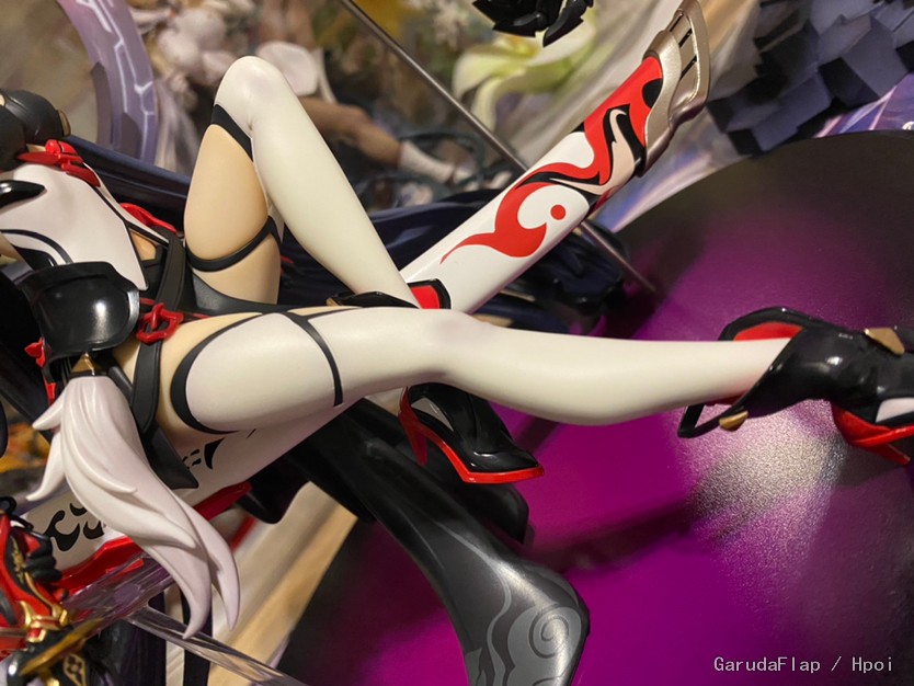 首先说说最大的问题,这款芽衣腹部和袜子的白色涂装非常粗糙,完全没有丝滑的感觉。特别是腹部,有较为明显的颗粒感和不均匀涂装痕迹。